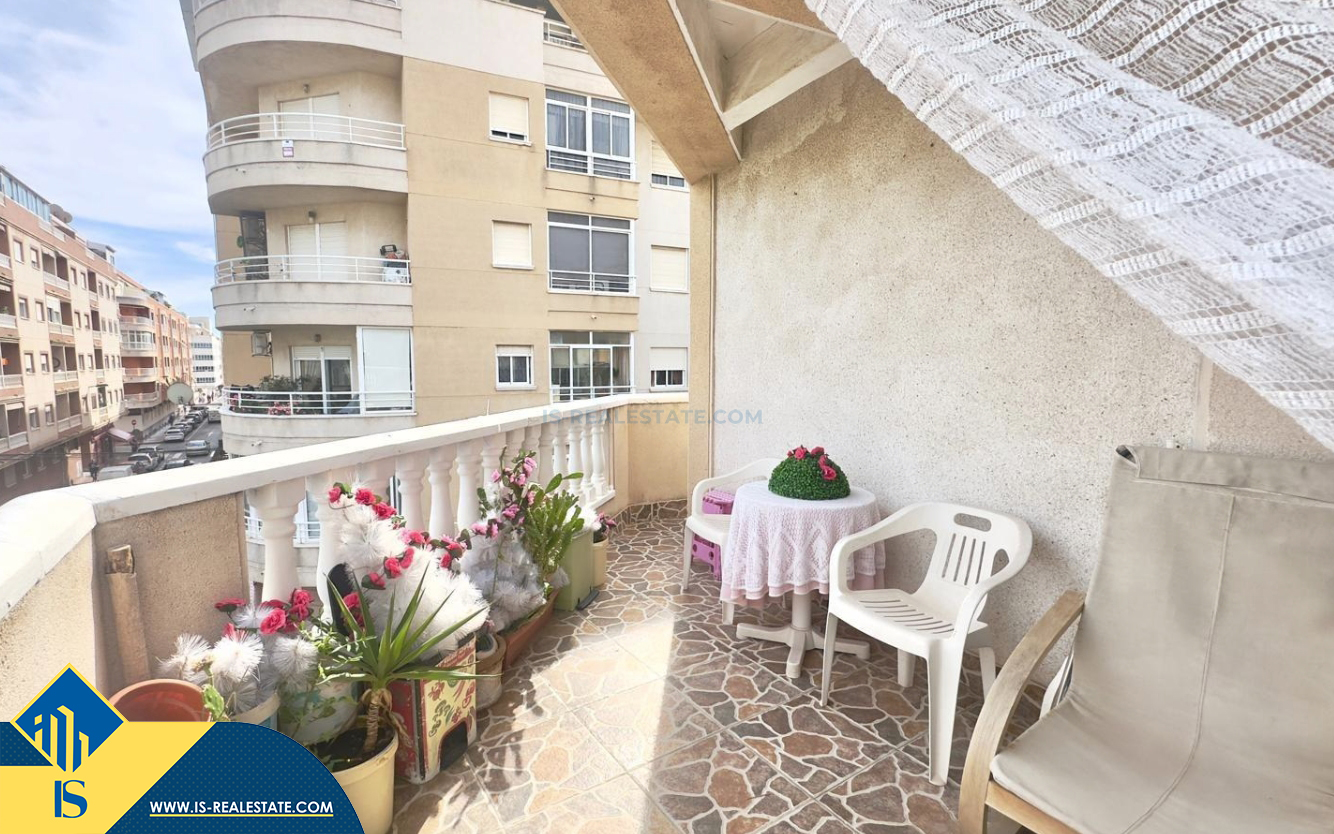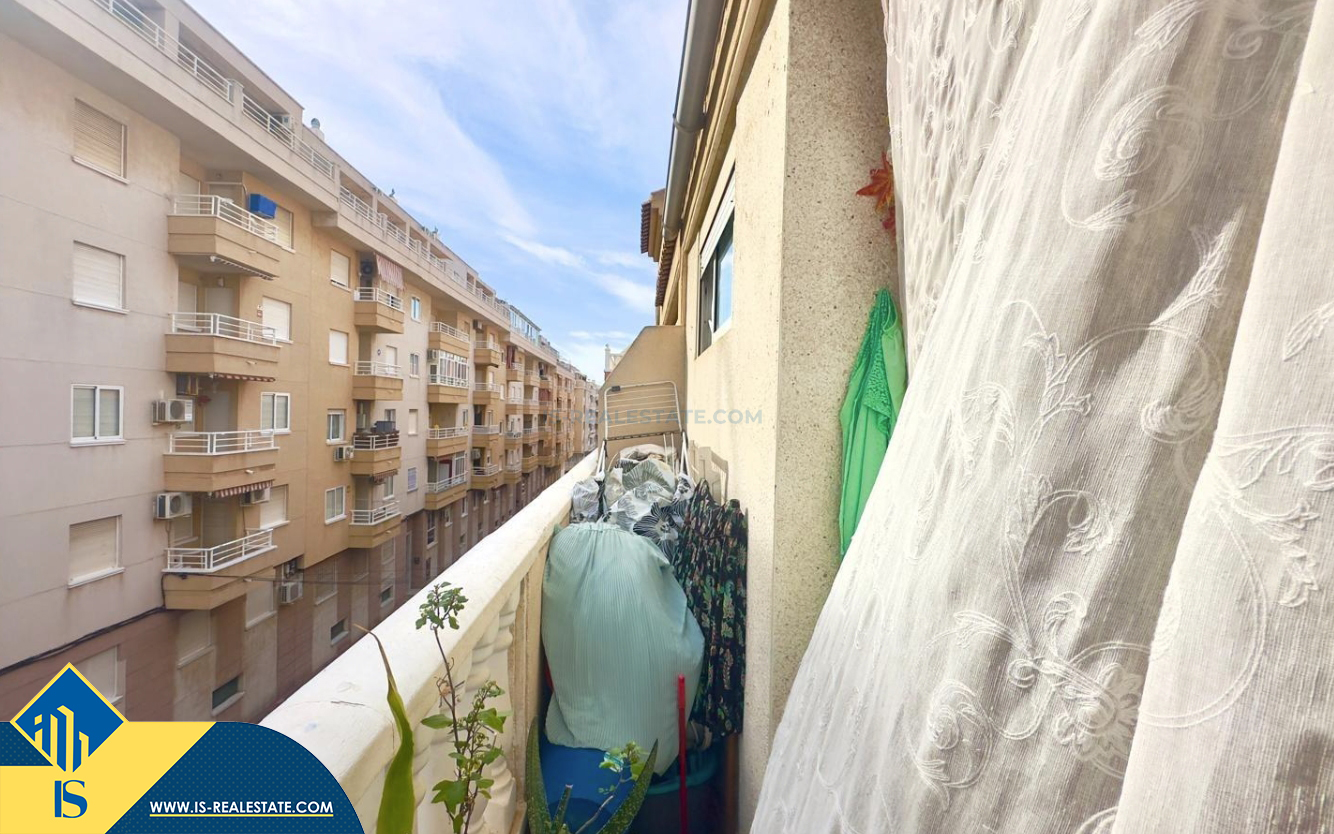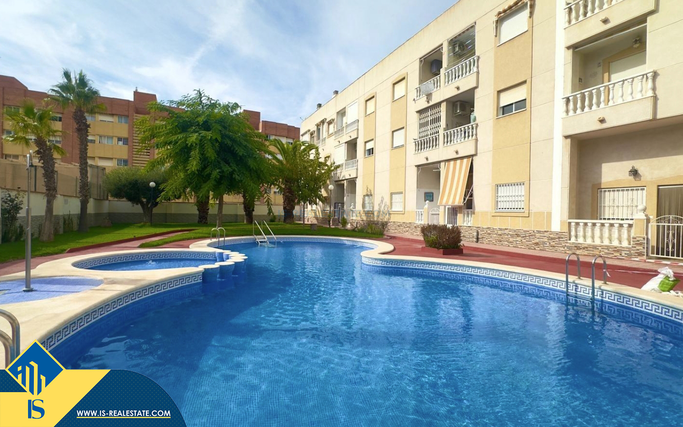 3-jų kambarių penthouse apartamentas su bendru baseinu, Ispanijoje, Alicante provincijoje, Torrevieja mieste, bendras plotas 69 m², 900 metrų iki jūros, 45 kilometrai iki Alicante oro uosto. Turtui priklauso bendras baseinas, terasa. Netoli turto yra parduotuvės, restoranai, vaistinės, autobusų stotelės, degalinės, žalios zonos, kavinės