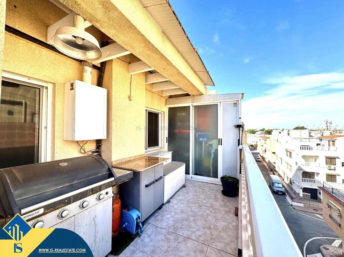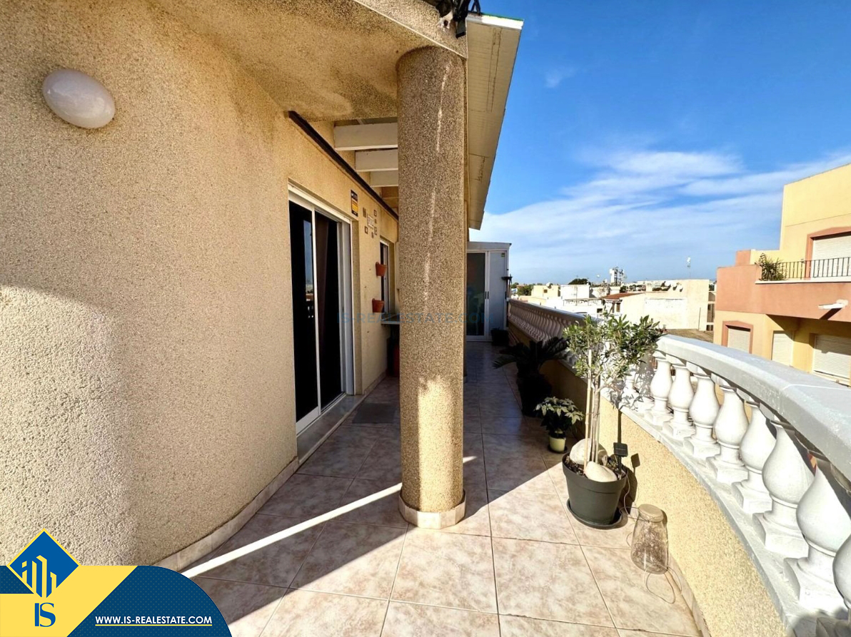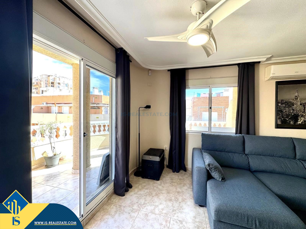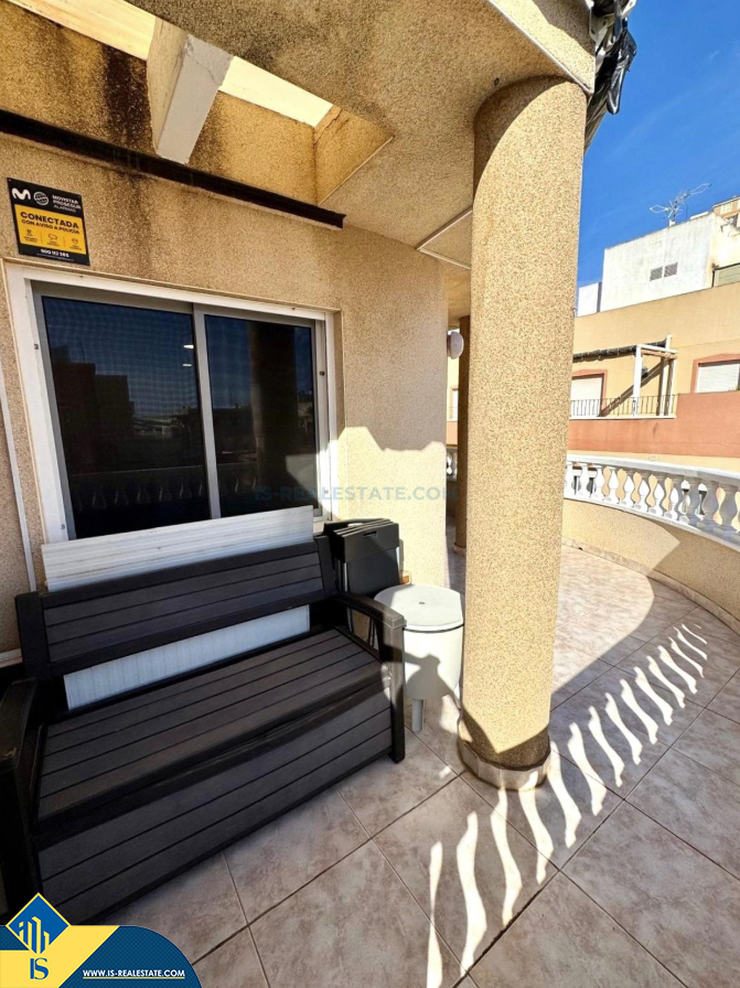 2-jų kambarių penthouse apartamentas su terasa, Ispanijoje, Alicante provincijoje, Torrevieja mieste, Playa de los Locos rajone, bendras plotas 67 m², 250 metrų iki jūros, 45 kilometrai iki Alicante oro uosto. Turtui priklauso terasa, liftas, sandėliukas. Netoli turto yra parduotuvės, restoranai, autobusų stotelės, degalinės, žalios zonos, kavinės, vaistinės
