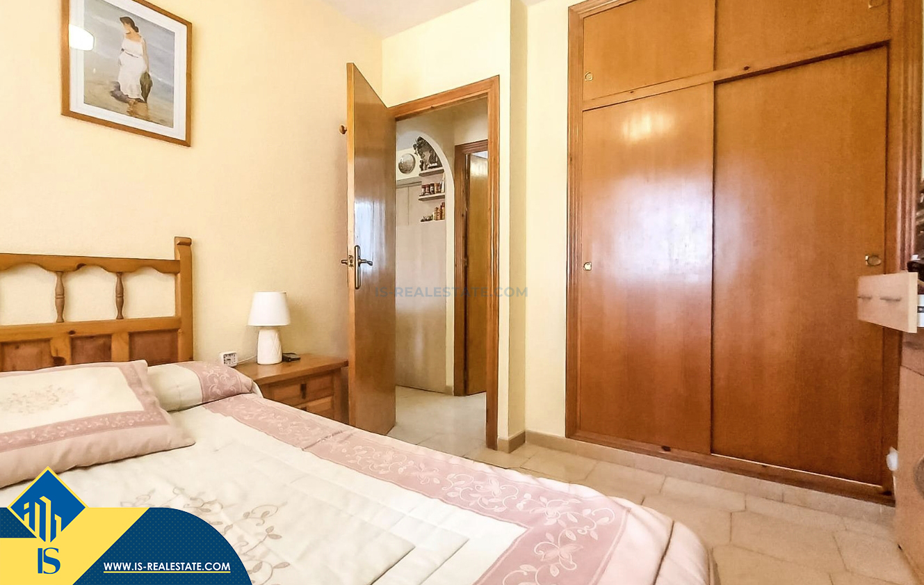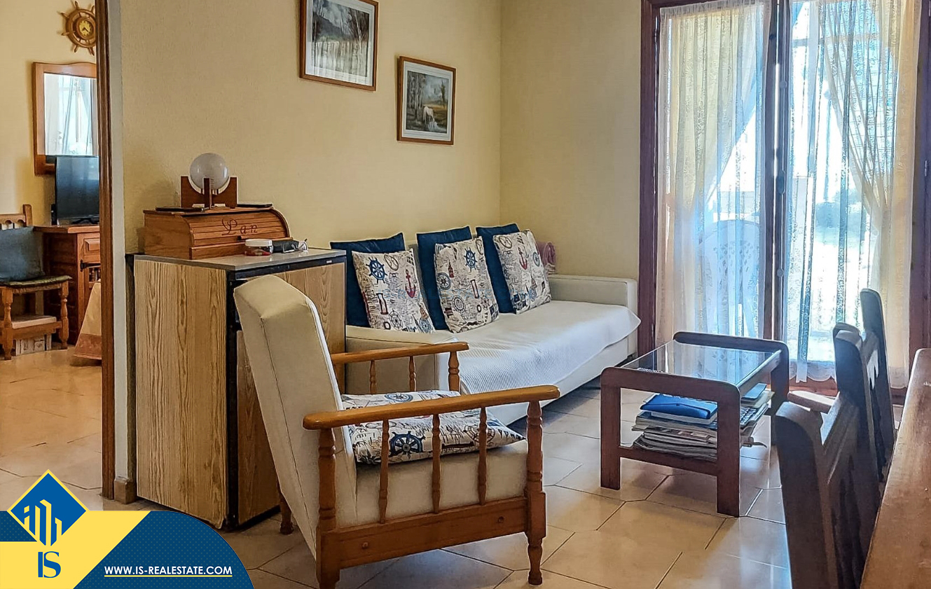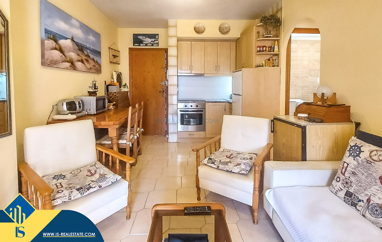 2-jų kambarių apartamentas su terasa, Ispanijoje, Alicante provincijoje, Torrevieja mieste, bendras plotas 42 m², 50 metrų iki jūros, 45 kilometrai iki Alicante oro uosto. Turtui priklauso terasa. Netoli turto yra parduotuvės, restoranai, vaistinės, autobusų stotelės, degalinės, žalios zonos, kavinės