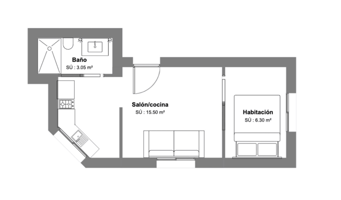 Kambariai: 1 miegamasis, 1 vonios kambarys