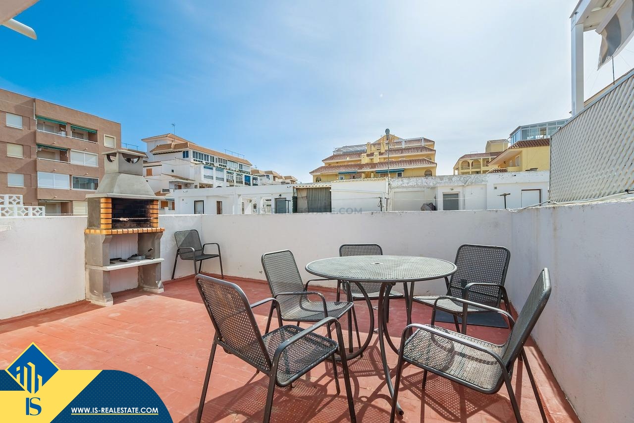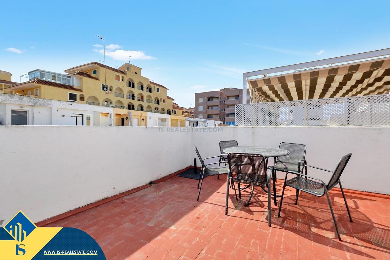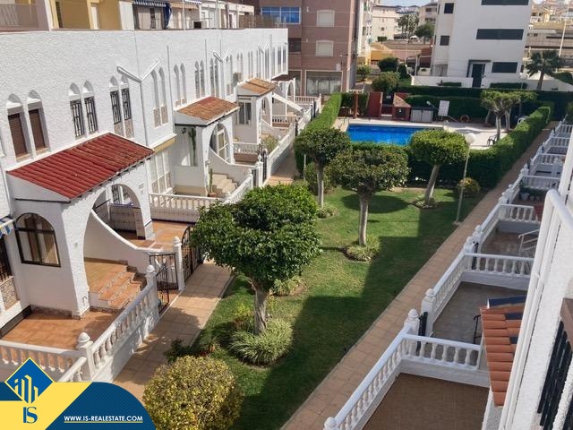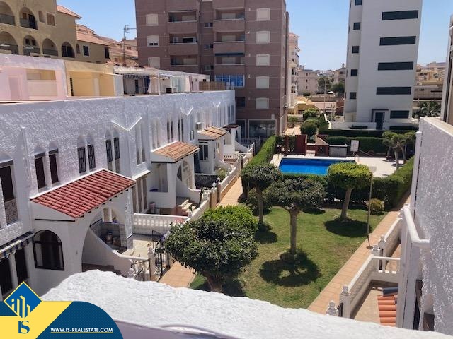 4-ių kambarių namas su bendru baseinu, Ispanijoje, Alicante provincijoje, Torrevieja mieste, La Mata rajone, bendras plotas 120 m², 400 metrų iki jūros, 38 kilometrai iki Alicante oro uosto. Turtui priklauso bendras baseinas, terasa, vieta automobiliui. Netoli turto yra parduotuvės, restoranai, autobusų stotelės, vaikų zonos, degalinės, žalios zonos, kavinės