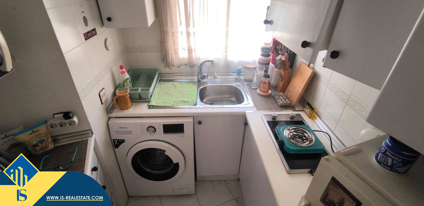 Studija su terasa, Ispanijoje, Alicante provincijoje, Torrevieja mieste, bendras plotas 36 m², 300 metrų iki jūros, 45 kilometrai iki Alicante oro uosto. Turtui priklauso terasa, liftas, sandėliukas. Netoli turto yra parduotuvės, restoranai, vaistinės, autobusų stotelės, degalinės, žalios zonos, kavinės