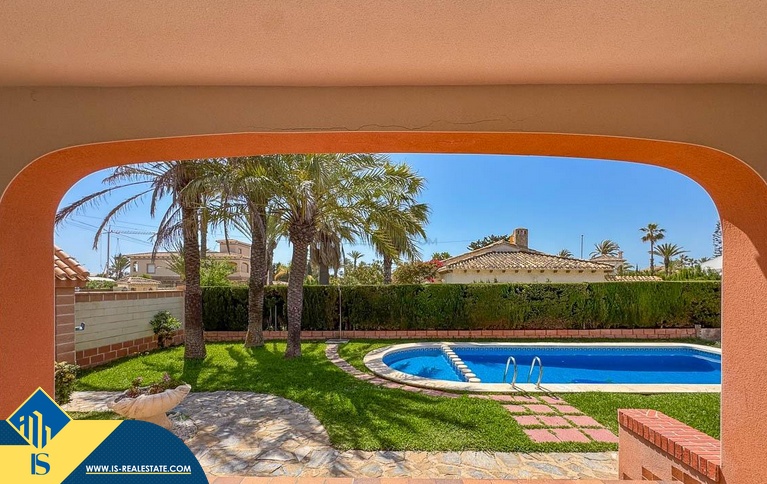 5-ių kambarių renovuotas namas, Ispanijoje, Alicante provincijoje, Orihuela Costa mieste, 10 kilometrai iki jūros, bendras plotas 195 m², 57 kilometrai iki Alicante miesto oro uosto. Turtui priklauso terasa, kiemas, privatus baseinas, vieta automobiliui. Netoli turto yra parduotuvės, restoranai, autobusų stotelės, vaikų zonos, degalinės, žalios zonos, kavinės, ligoninė
