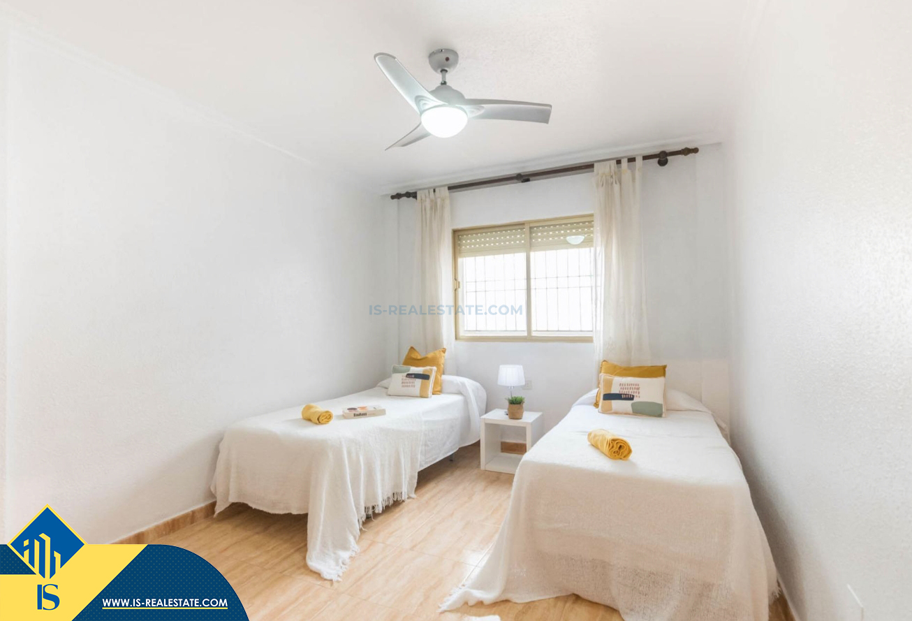 4-ių kambarių apartamentas su terasa, Ispanijoje, Alicante provincijoje, Orihuela Costa mieste, bendras plotas 115 m², 400 metrų iki jūros, 66 kilometrai iki Alicante oro uosto. Turtui priklauso terasa, liftas, garažas, kiemelis. Netoli turto yra parduotuvės, restoranai, autobusų stotelės, vaikų zonos, degalinės, žalios zonos, kavinės, ligoninė