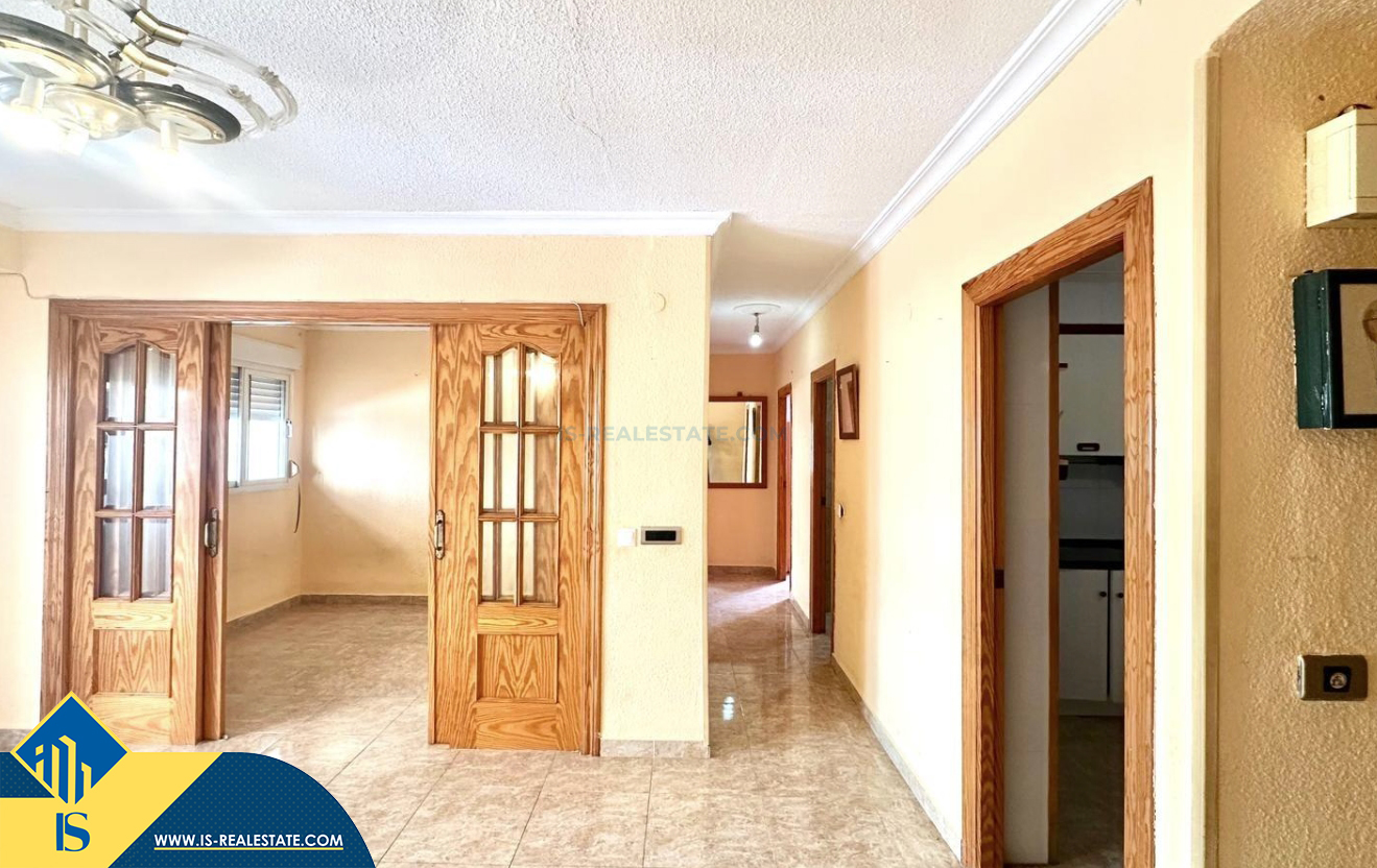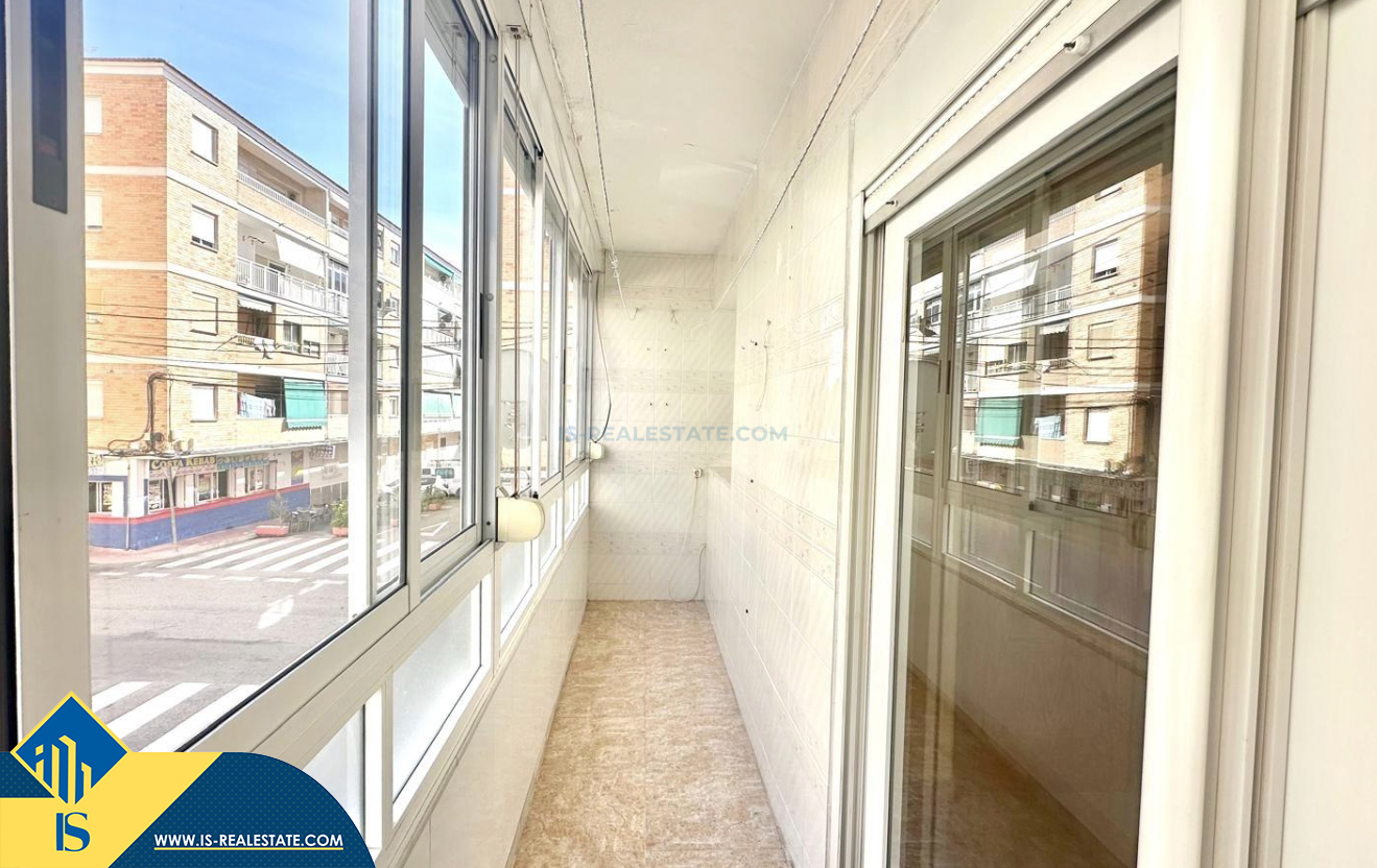 4-ių kambarių apartamentas su terasa, Ispanijoje, Alicante provincijoje, Torrevieja mieste, bendras plotas 89 m², 500 metrų iki jūros, 45 kilometrai iki Alicante oro uosto. Turtui priklauso terasa, liftas. Netoli turto yra parduotuvės, restoranai, vaistinės, autobusų stotelės, degalinės, žalios zonos, kavinės
