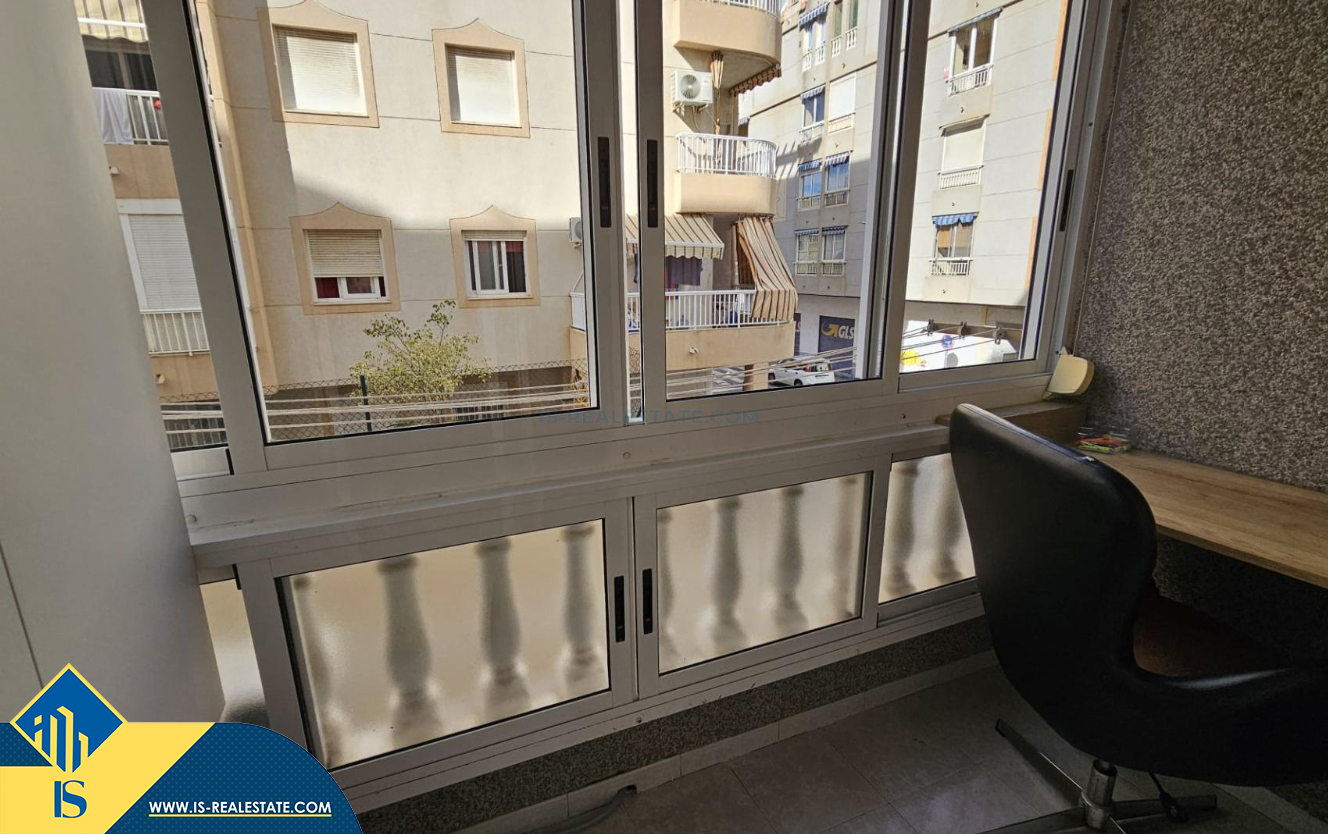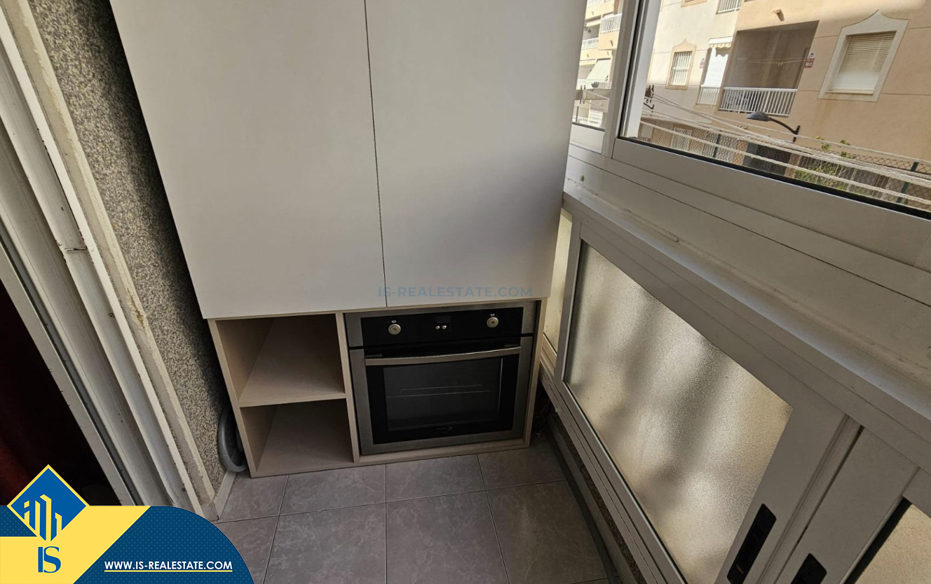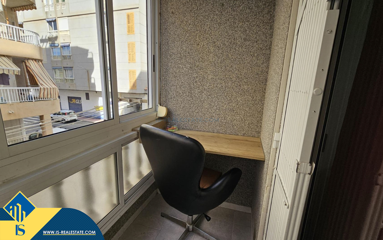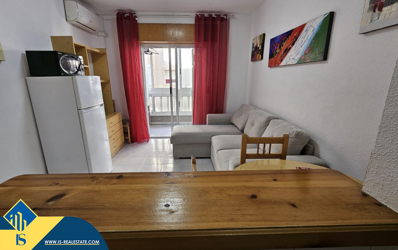 Studija su balkonu, Ispanijoje, Alicante provincijoje, Torrevieja mieste, Playa del Acequión rajone, bendras plotas 40 m², 230 metrų iki jūros, 45 kilometrai iki Alicante oro uosto. Turtui priklauso balkonas, liftas. Netoli turto yra parduotuvės, restoranai, vaistinės, autobusų stotelės, degalinės, žalios zonos, kavinės