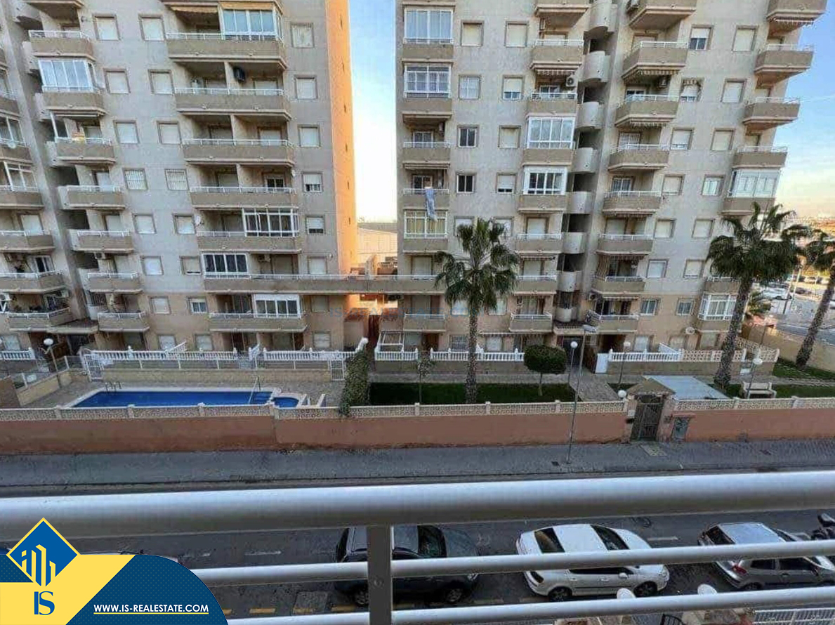3-jų kambarių apartamentas su bendru baseinu, Ispanijoje, Alicante provincijoje, Torrevieja mieste, bendras plotas 77 m², 1.5 kilometro iki jūros, 45 kilometrai iki Alicante oro uosto. Turtui priklauso bendras baseinas, terasa, soliariumas, liftas, vieta automobiliui. Netoli turto yra parduotuvės, restoranai, vaistinės, autobusų stotelės, degalinės, žalios zonos, kavinės