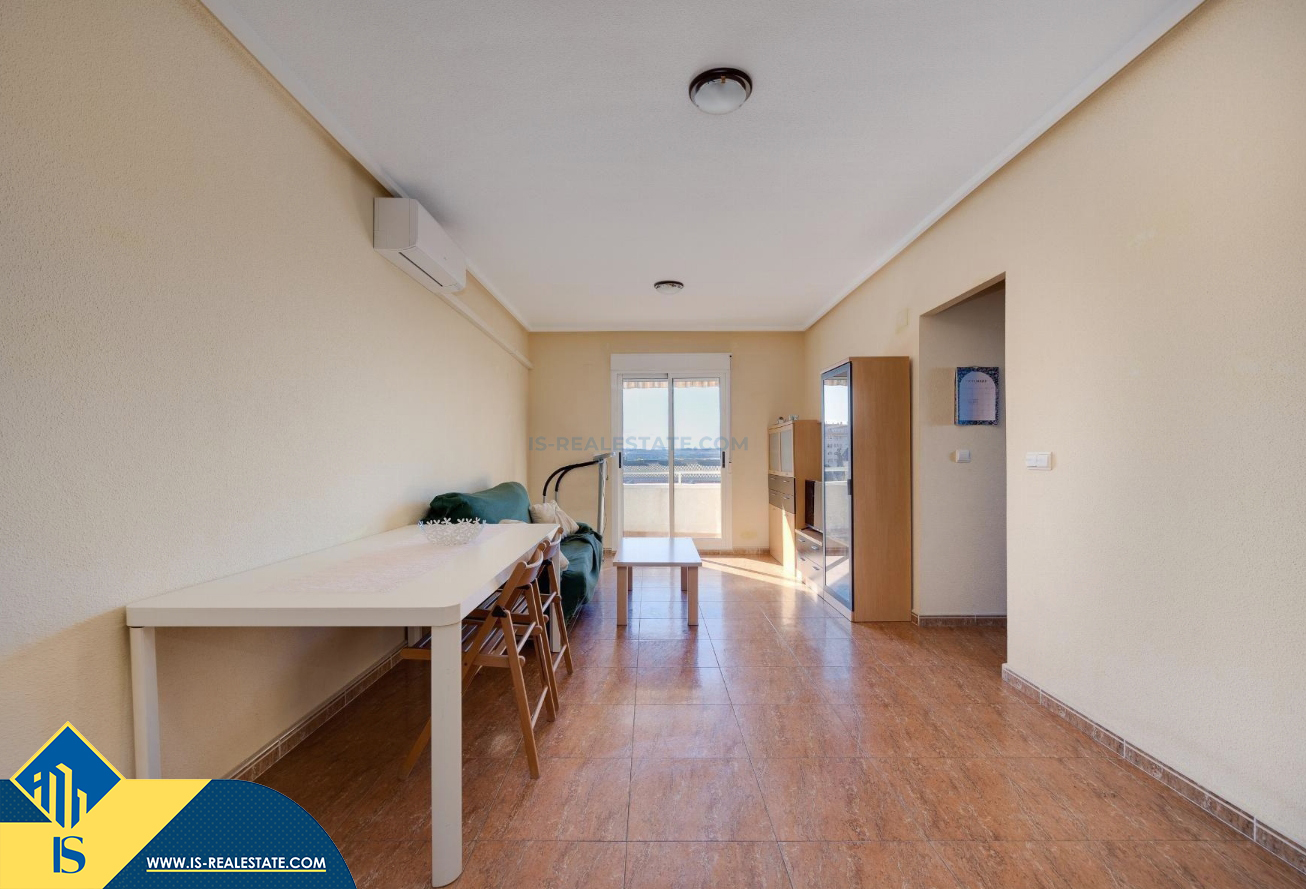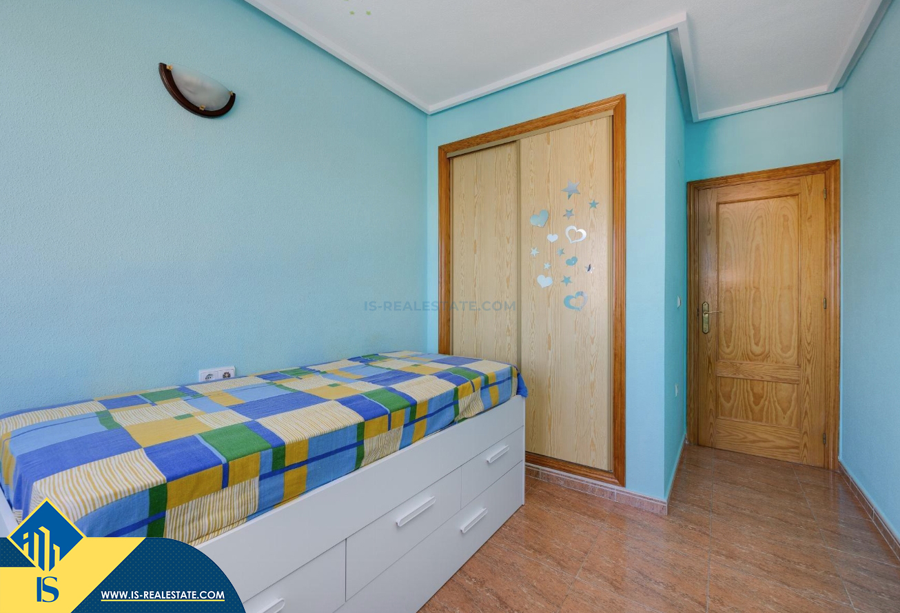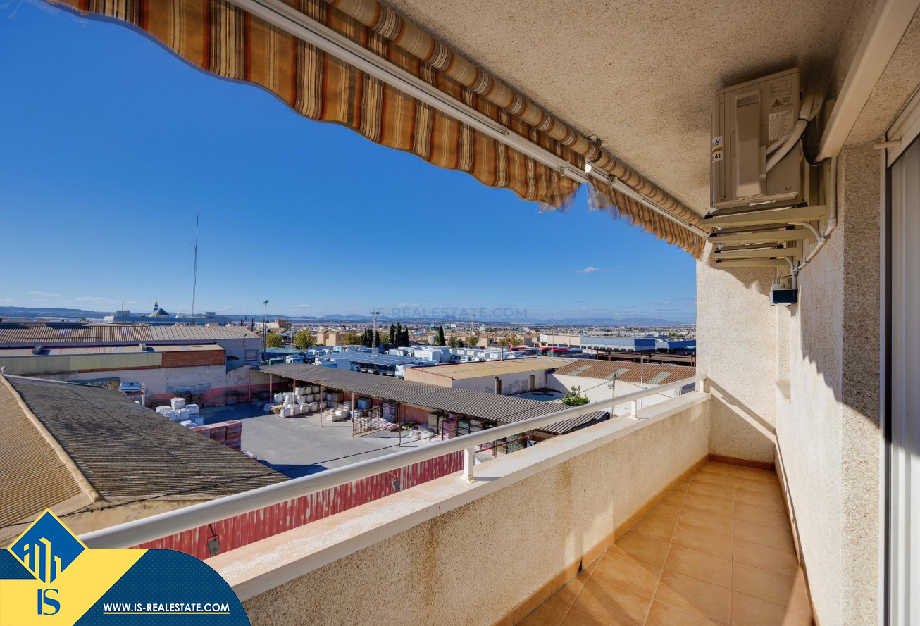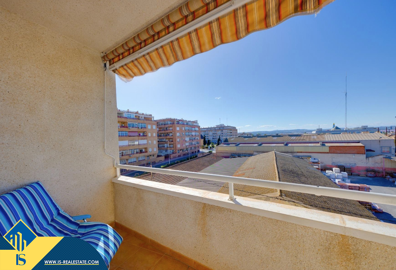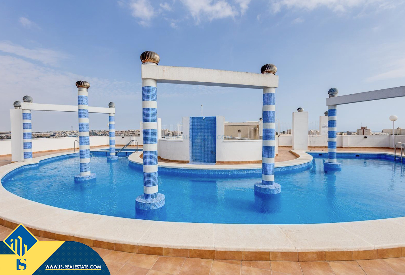 3-jų kambarių apartamentas su bendru baseinu, Ispanijoje, Alicante provincijoje, Torrevieja mieste, bendras plotas 84 m², 1 kilometras iki jūros, 45 kilometrai iki Alicante oro uosto. Turtui priklauso bendras baseinas, terasa, soliariumas, liftas, garažas. Netoli turto yra parduotuvės, restoranai, vaistinės, autobusų stotelės, degalinės, žalios zonos, kavinės