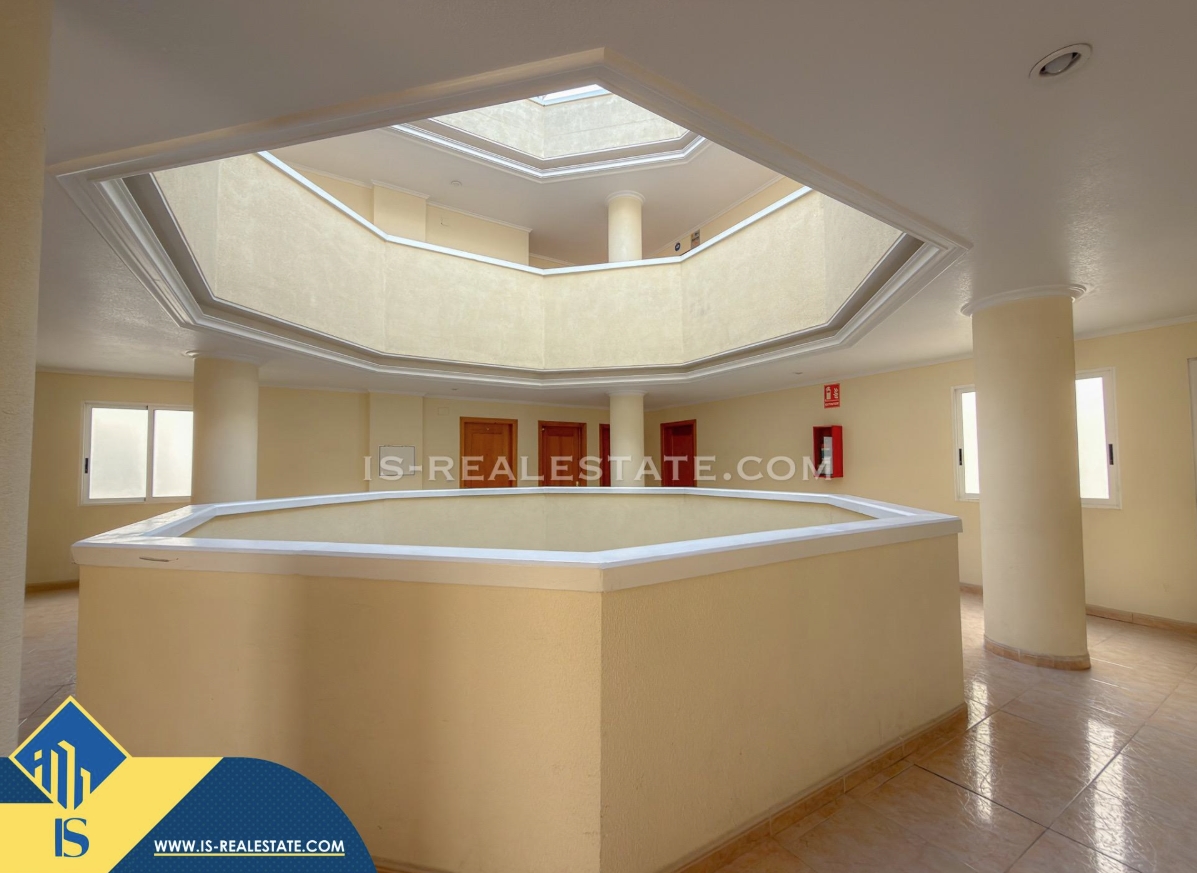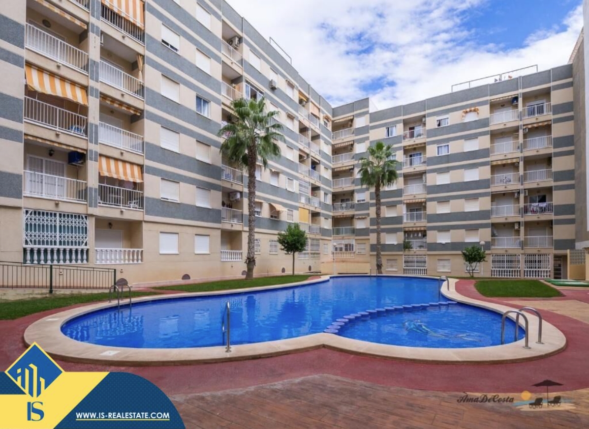 3-jų kambarių apartamentas su bendru baseinu, Ispanijoje, Alicante provincijoje, Torrevieja mieste, Playa del Cura rajone, bendras plotas 59 m², 600 metrų iki jūros, 45 kilometrai iki Alicante oro uosto. Turtui priklauso bendras baseinas, terasa, liftas. Netoli turto yra parduotuvės, restoranai, vaistinės, autobusų stotelės, degalinės, žalios zonos, kavinės, Habaneras alėja