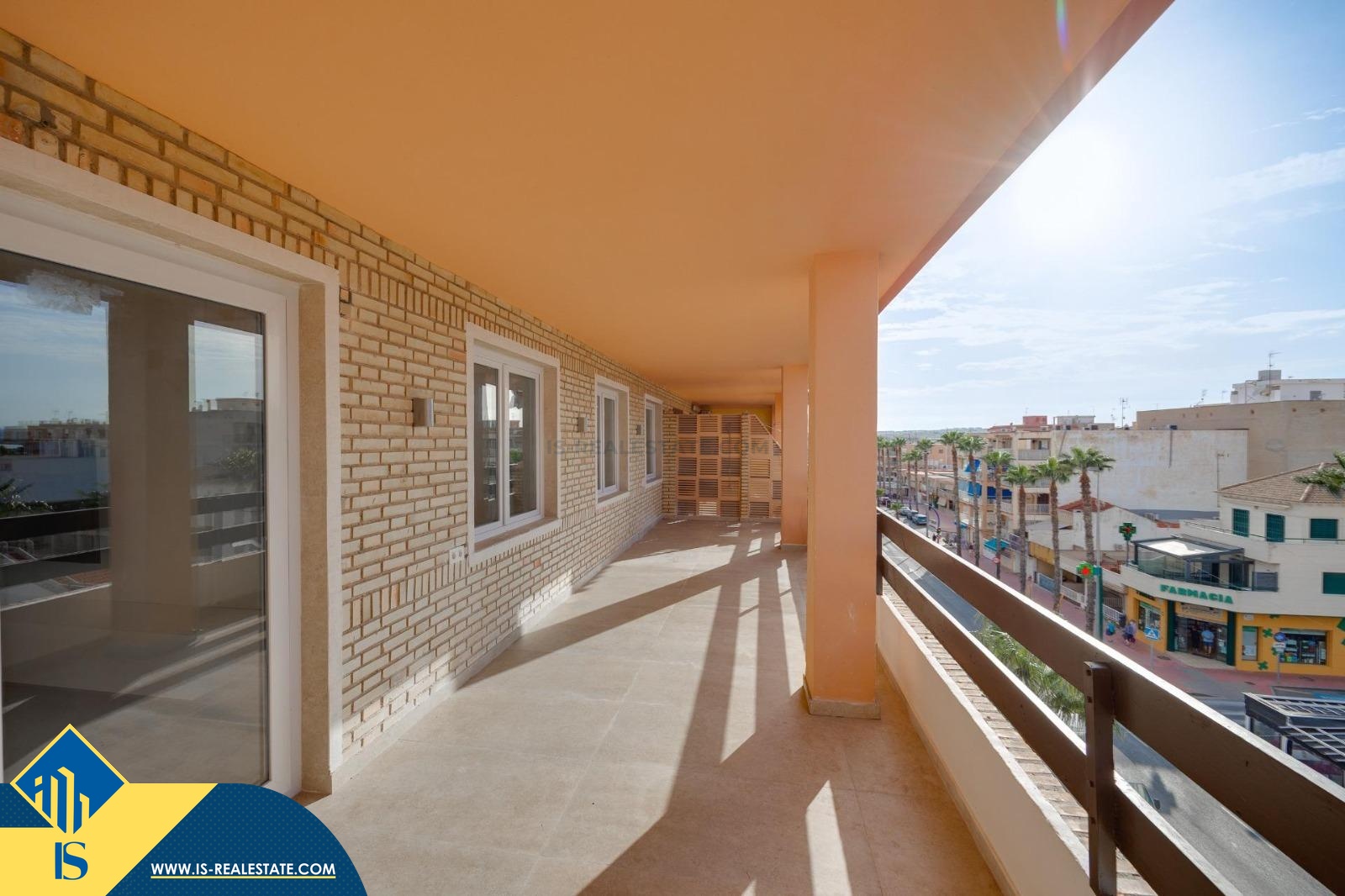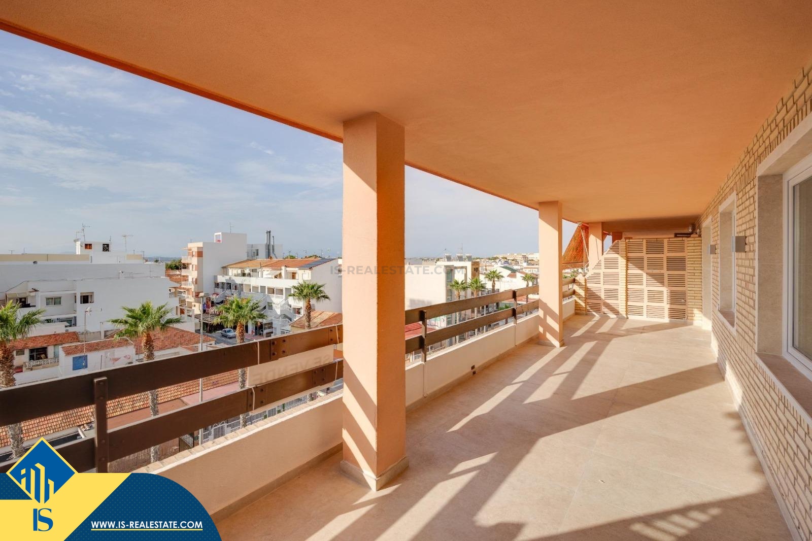 4-ių kambarių renovuotas apartamentas su terasa, Ispanijoje, Alicante provincijoje, Torrevieja mieste, Playa de los Náufragos rajone, bendras plotas 102 m², 100 metrų iki jūros, 45 kilometrai iki Alicante oro uosto. Turtui priklauso terasa, liftas. Netoli turto yra parduotuvės, restoranai, vaistinės, autobusų stotelės, degalinės, žalios zonos, kavinės