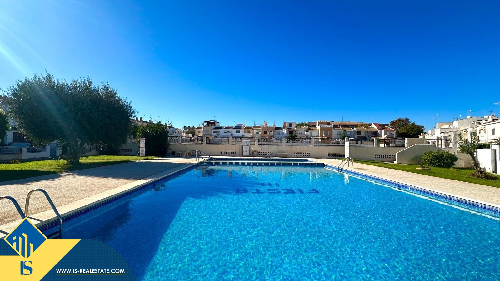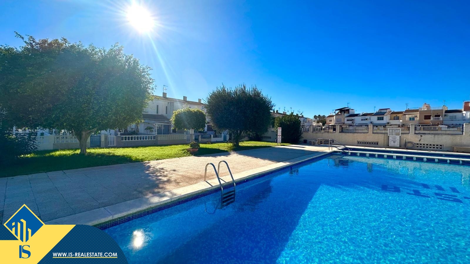 4-ių kambarių namas, Ispanijoje, Alicante provincijoje, Torrevieja mieste, Playa del Cura rajone, bendras plotas 65 m², 900 metrų iki jūros, 35 kilometrai iki Alicante miesto oro uosto. Turtui priklauso terasa, bendras baseinas, vieta automobiliui. Netoli turto yra parduotuvės, restoranai, autobusų stotelės, vaikų zonos, degalinės, žalios zonos, kavinės
