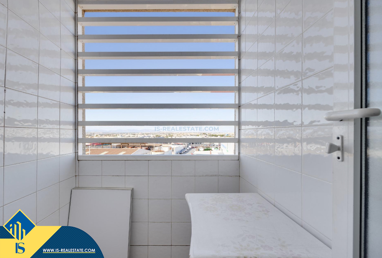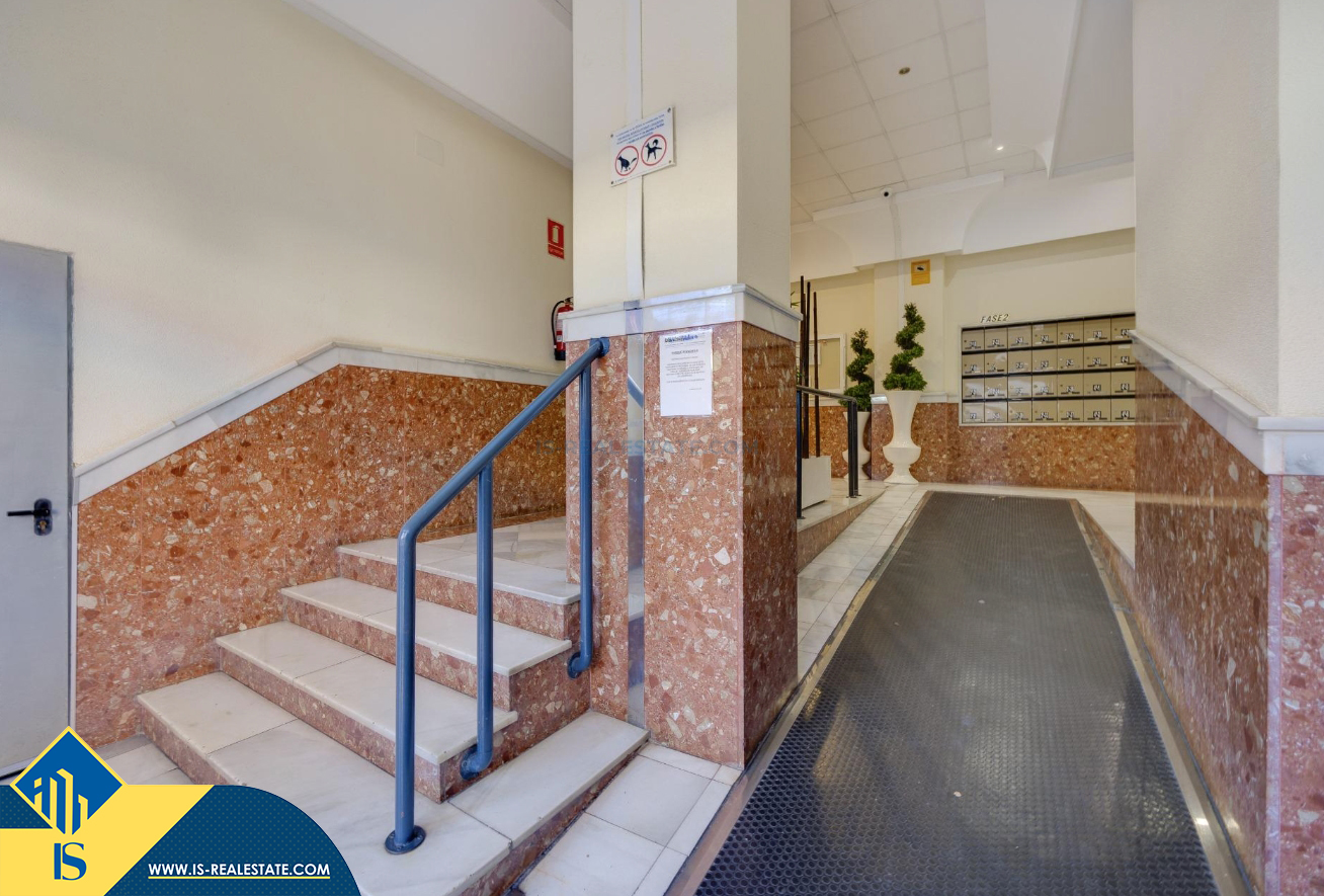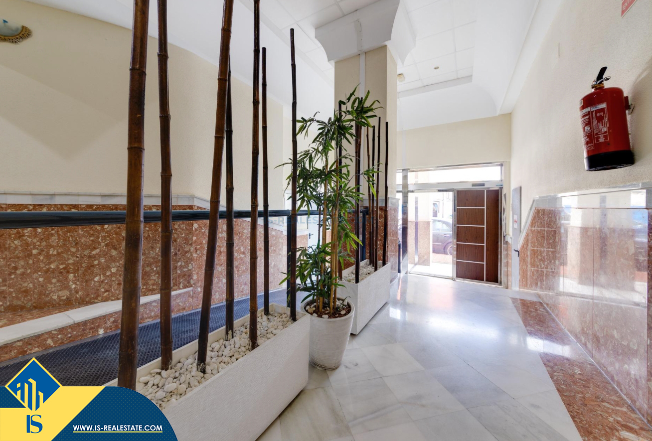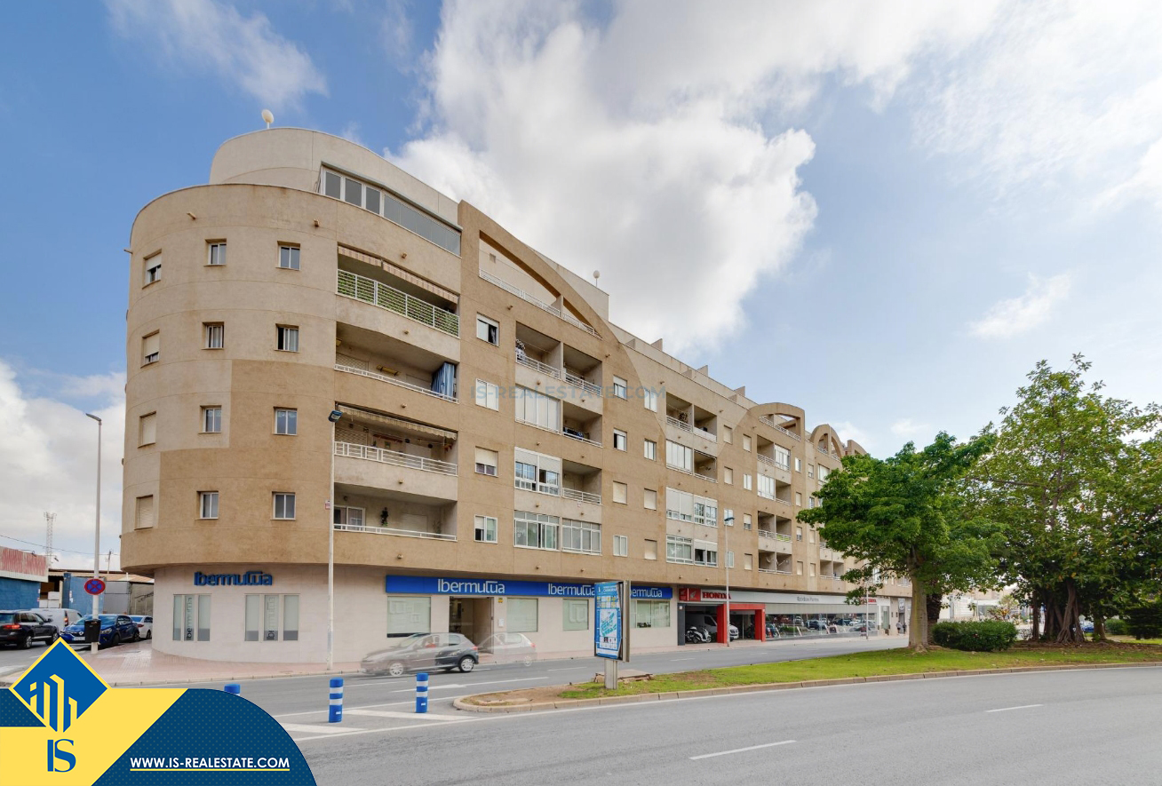 3-jų kambarių apartamentas su bendru baseinu, Ispanijoje, Alicante provincijoje, Torrevieja mieste, bendras plotas 84 m², 1.5 kilometro iki jūros, 45 kilometrai iki Alicante oro uosto. Turtui priklauso bendras baseinas, terasa, liftas, garažas. Netoli turto yra parduotuvės, restoranai, vaistinės, autobusų stotelės, degalinės, žalios zonos, kavinės