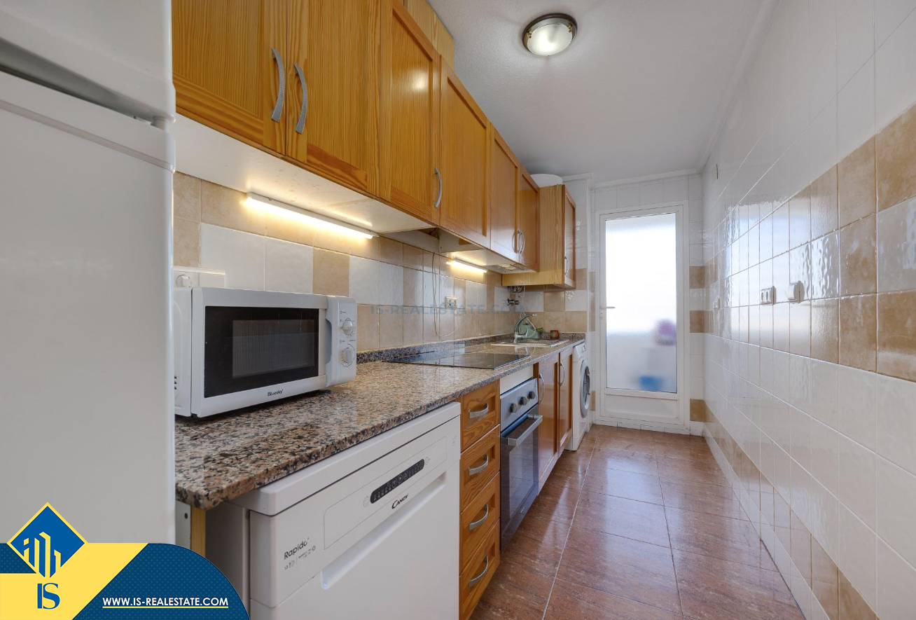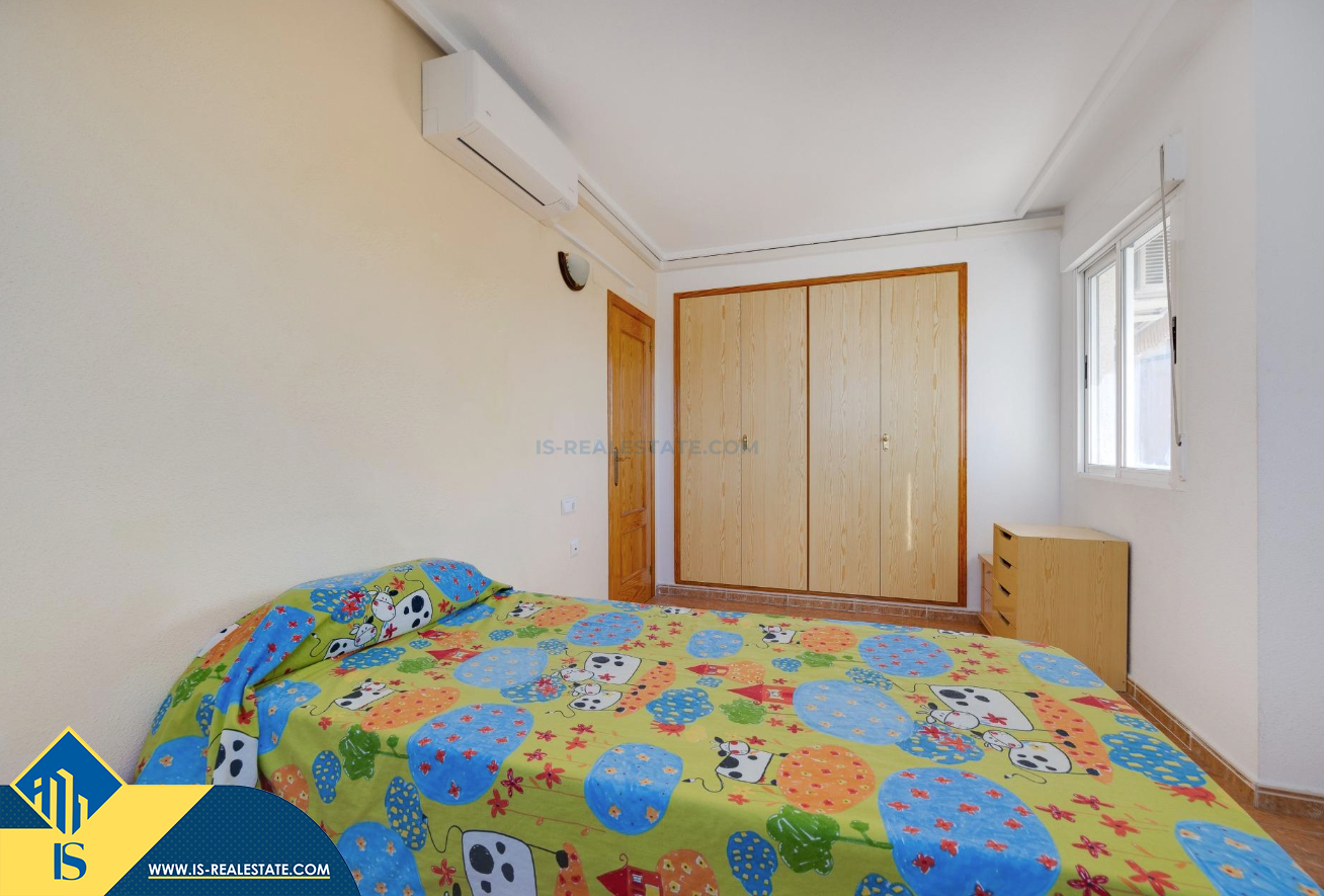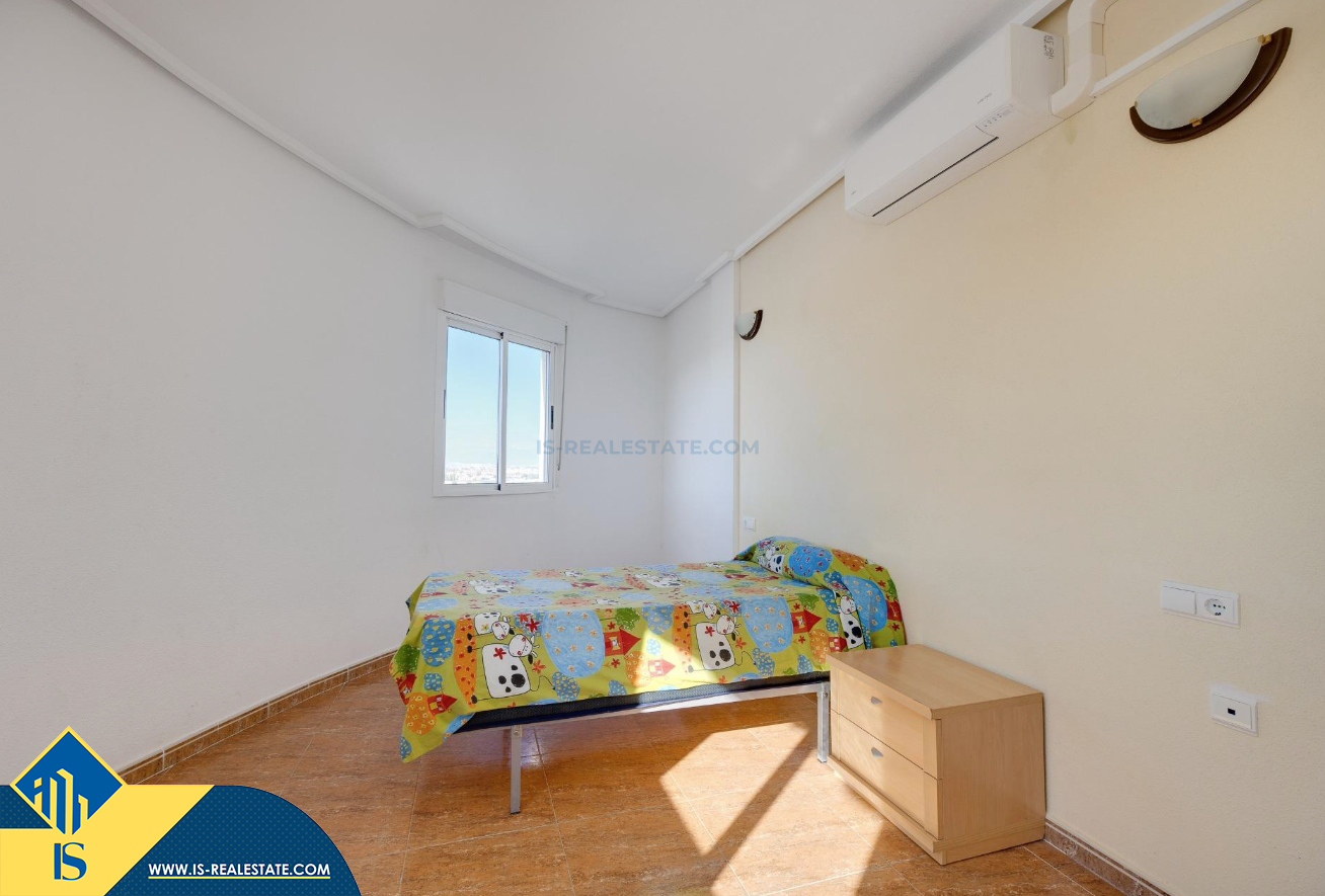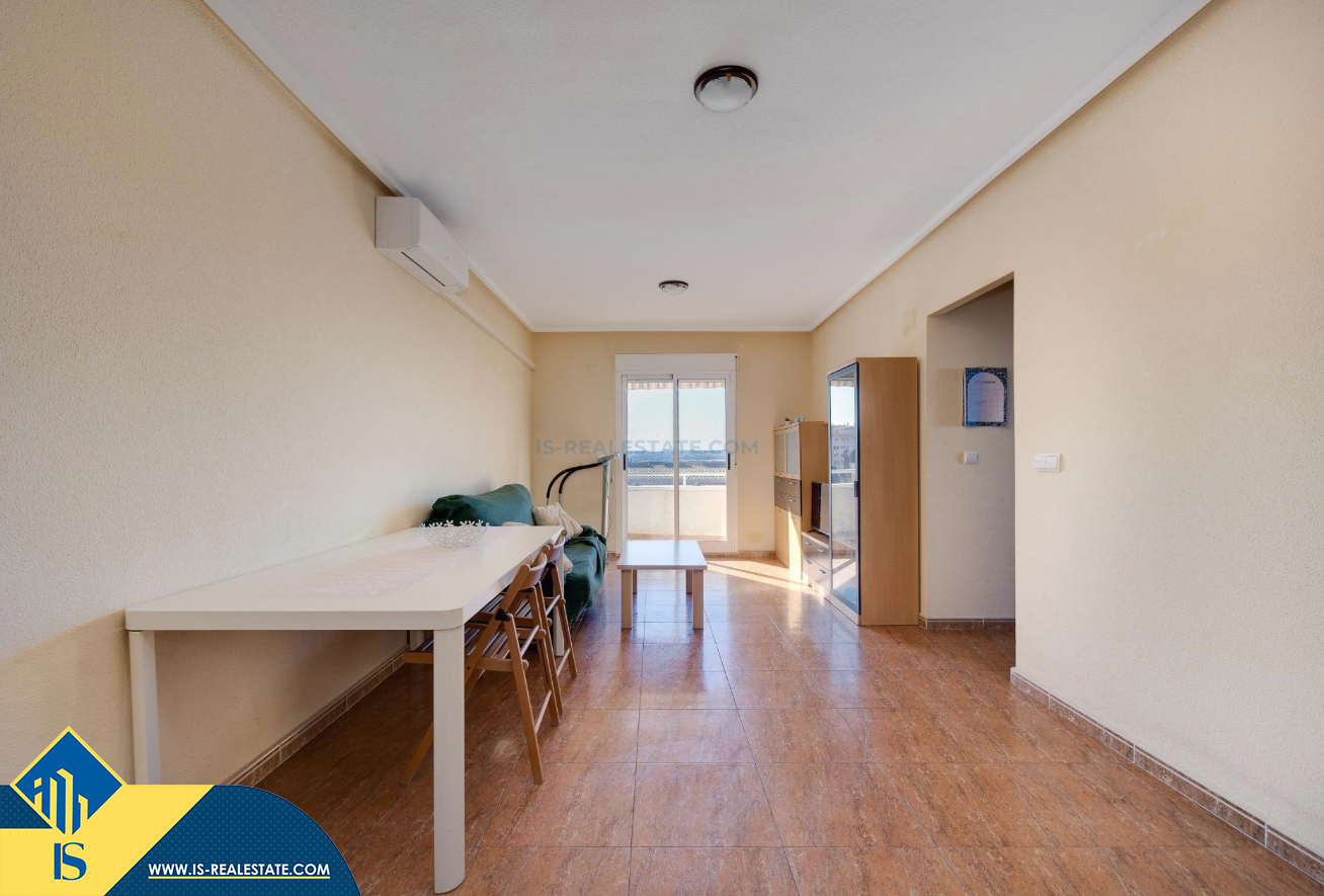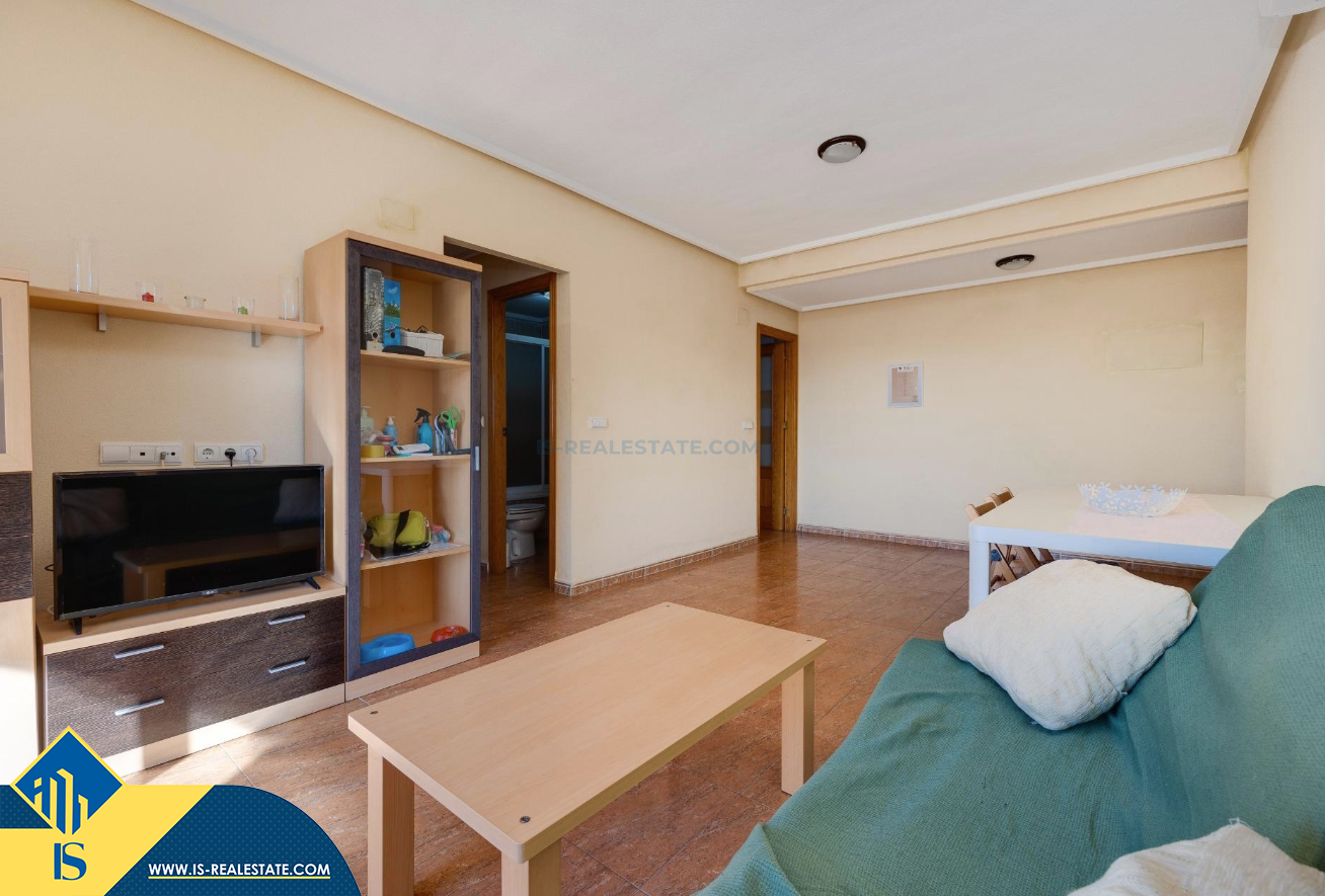 3-jų kambarių apartamentas su bendru baseinu, Ispanijoje, Alicante provincijoje, Torrevieja mieste, bendras plotas 84 m², 1.5 kilometro iki jūros, 45 kilometrai iki Alicante oro uosto. Turtui priklauso bendras baseinas, terasa, liftas, garažas. Netoli turto yra parduotuvės, restoranai, vaistinės, autobusų stotelės, degalinės, žalios zonos, kavinės