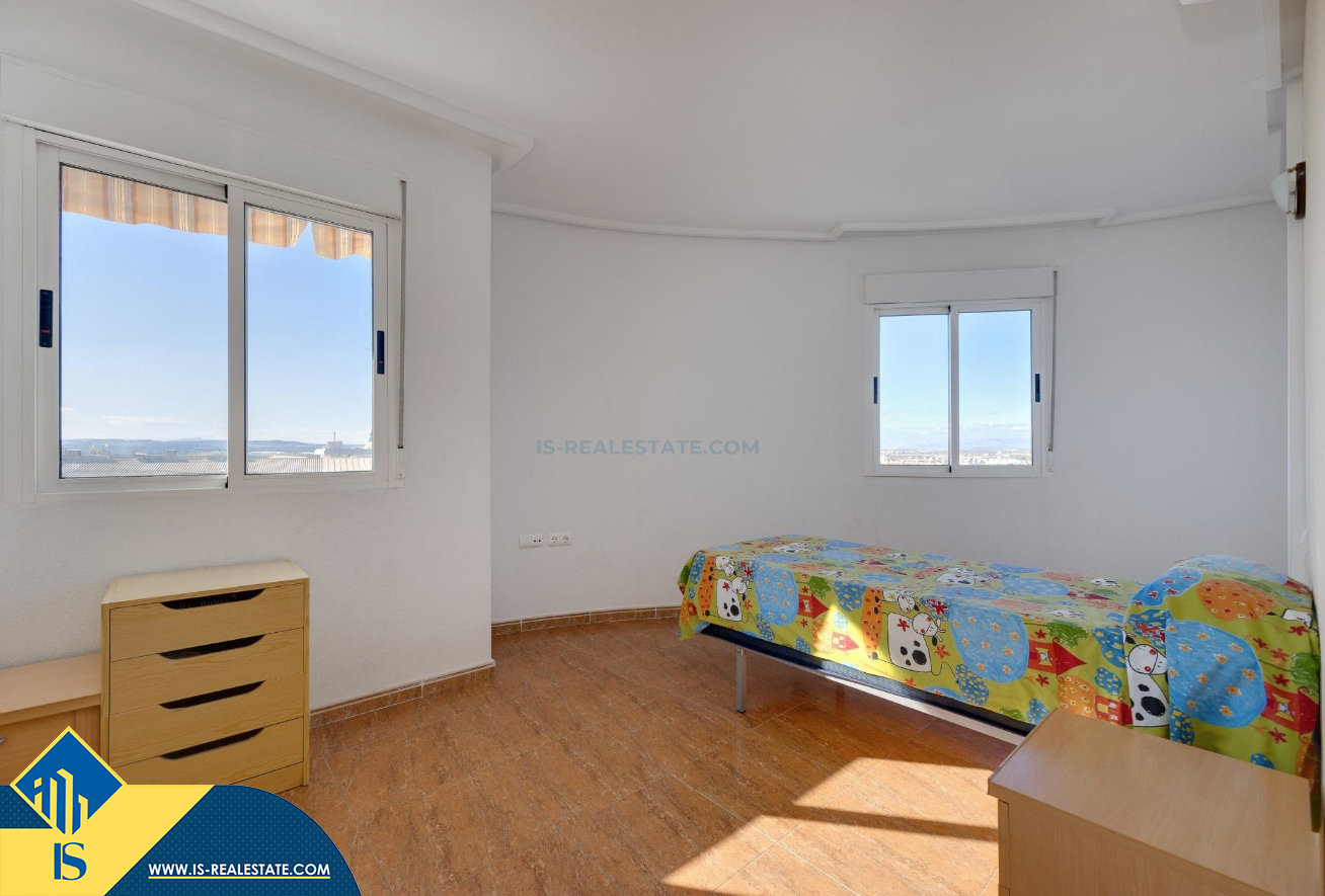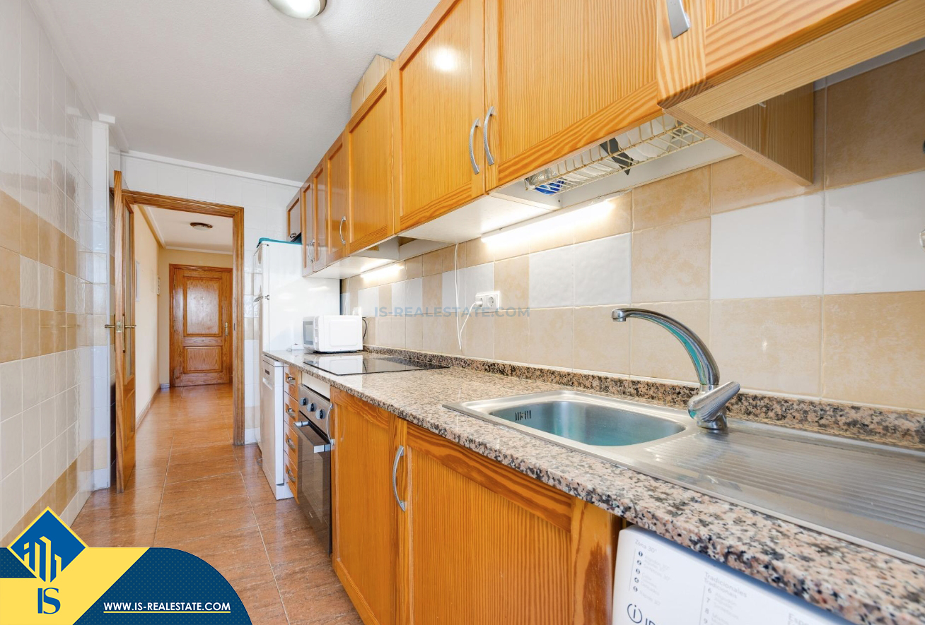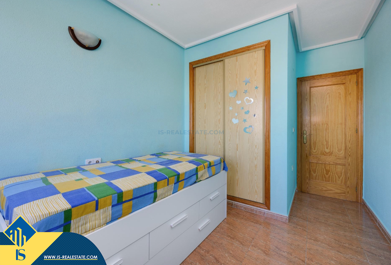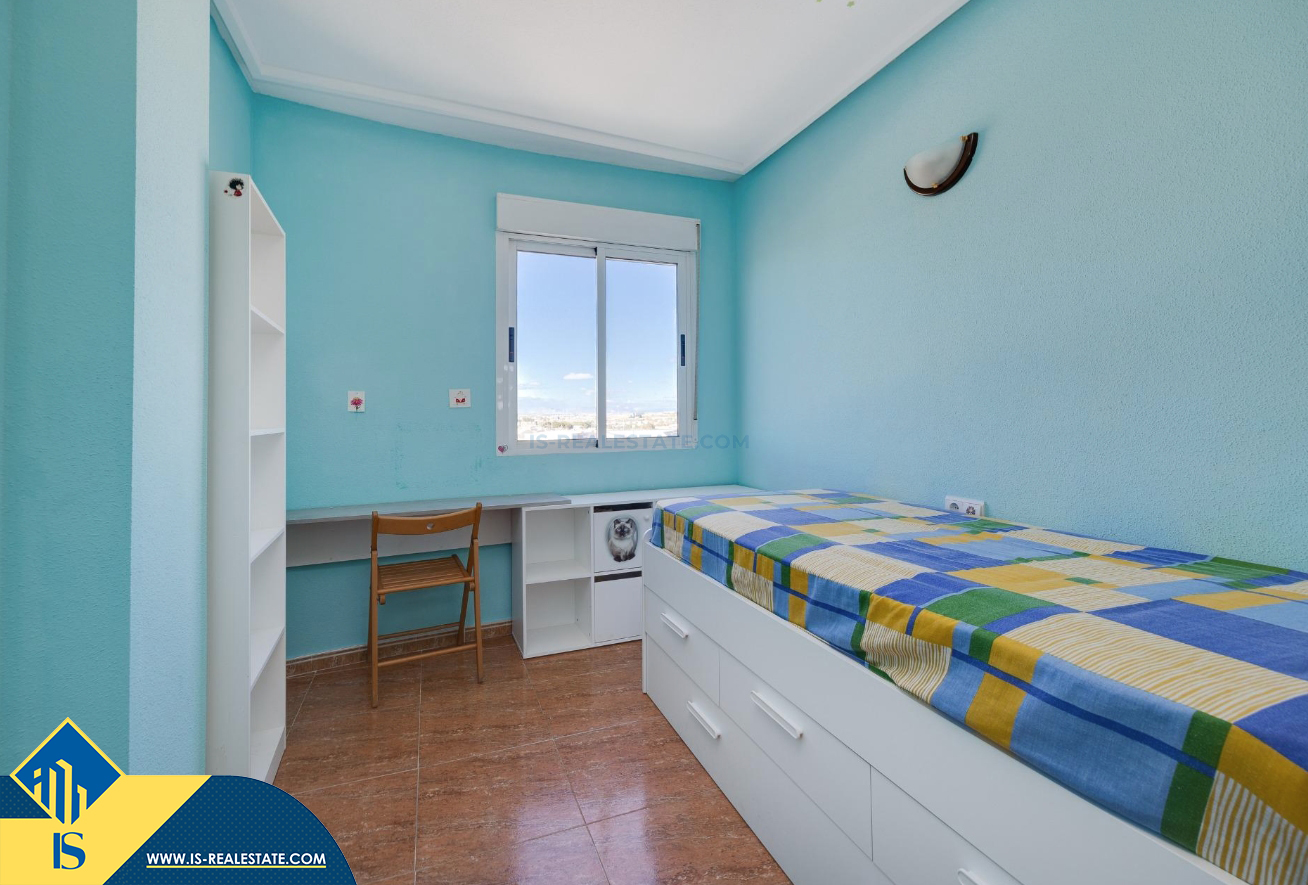 3-jų kambarių apartamentas su bendru baseinu, Ispanijoje, Alicante provincijoje, Torrevieja mieste, bendras plotas 84 m², 1.5 kilometro iki jūros, 45 kilometrai iki Alicante oro uosto. Turtui priklauso bendras baseinas, terasa, liftas, garažas. Netoli turto yra parduotuvės, restoranai, vaistinės, autobusų stotelės, degalinės, žalios zonos, kavinės