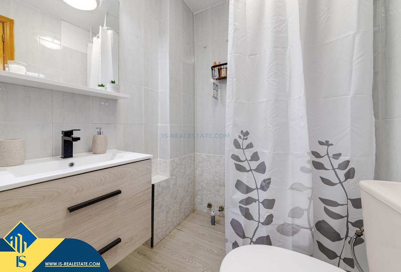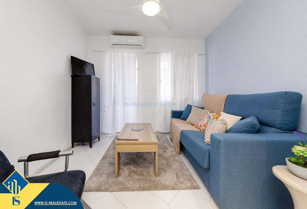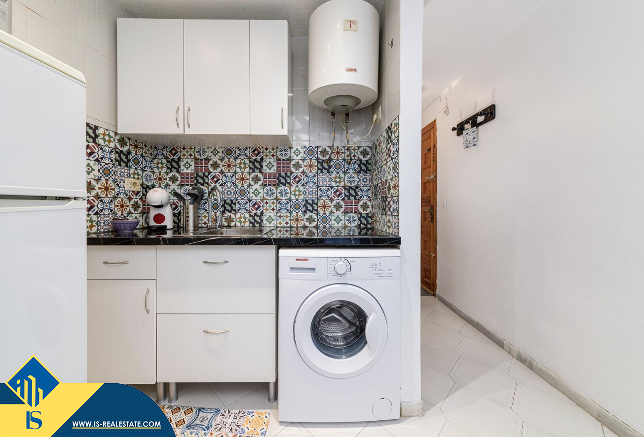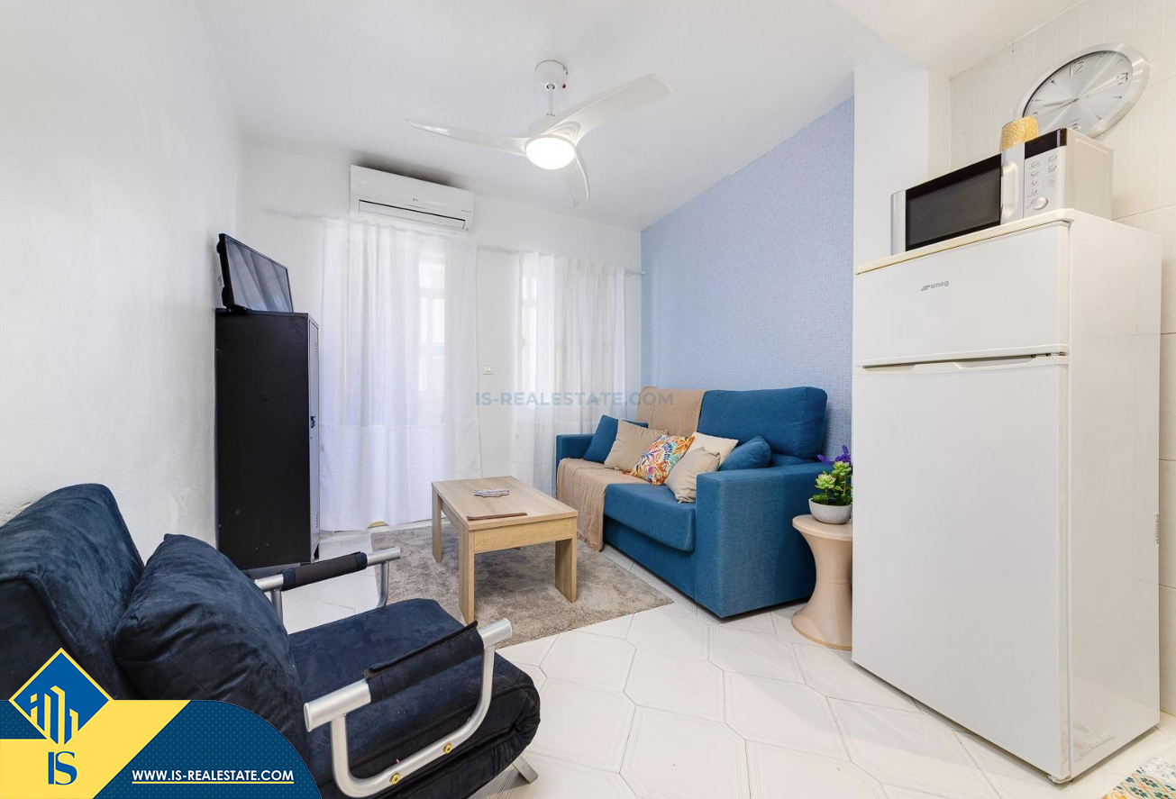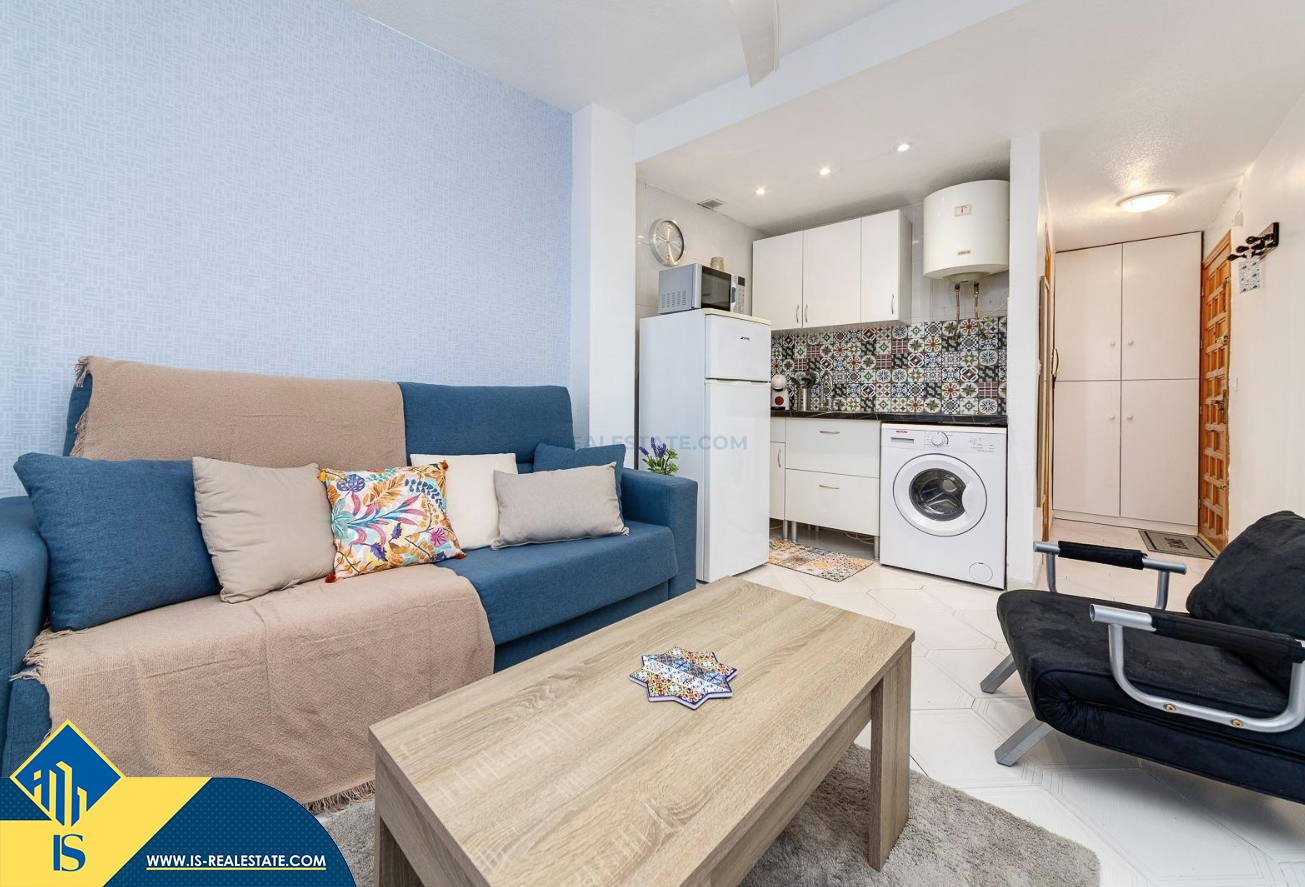 Renovuota studija su terasa, Ispanijoje, Alicante provincijoje, Torrevieja mieste, bendras plotas 27 m², 800 metrų iki jūros, 45 kilometrai iki Alicante oro uosto. Turtui priklauso terasa, liftas. Netoli turto yra parduotuvės, restoranai, vaistinės, autobusų stotelės, degalinės, žalios zonos, kavinės