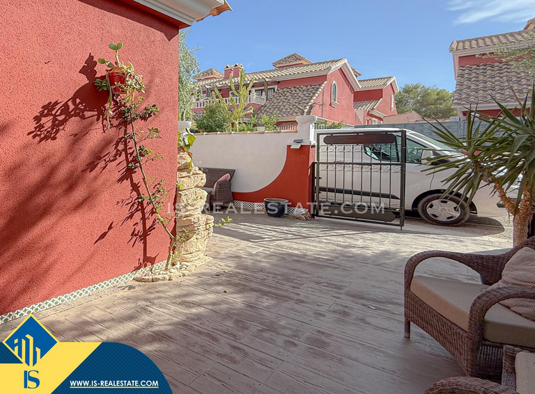 4-ių kambarių vila, Ispanijoje, Alicante provincijoje, Orihuela Costa mieste, 2 kilometrai iki jūros, bendras plotas 93 m², 55 kilometrai iki Alicante miesto oro uosto. Turtui priklauso bendras baseinas, terasa, kiemas, vieta automobiliui. Netoli turto yra parduotuvės, restoranai, autobusų stotelės, vaikų zonos, degalinės, žalios zonos, kavinės, ligoninė