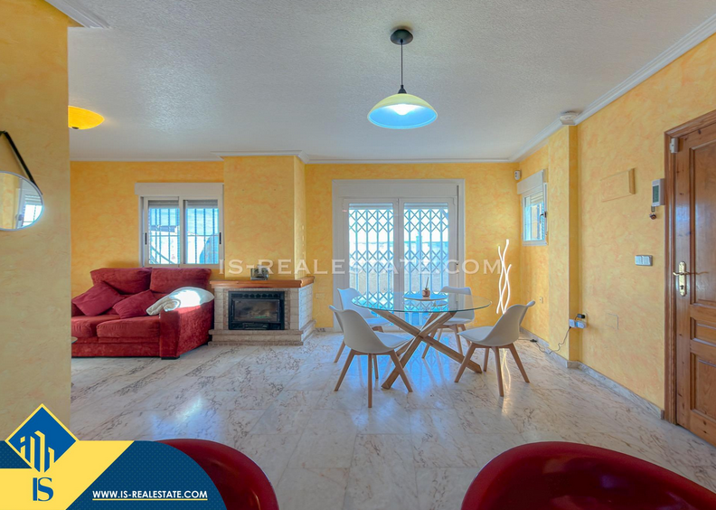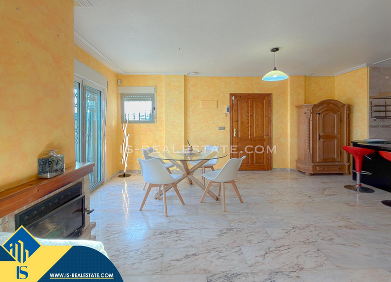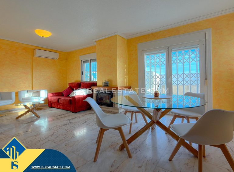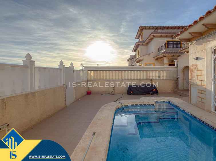 4-ių kambarių renovuotas namas su bendru baseinu, Ispanijoje, Alicante provincijoje, Torrevieja mieste, Los Balcones rajone, bendras plotas 85 m², 1 kilometras iki jūros, 45 kilometrai iki Alicante oro uosto. Turtui priklauso bendras baseinas, terasa, vieta automobiliui. Netoli turto yra parduotuvės, restoranai, autobusų stotelės, vaikų zonos, degalinės, žalios zonos, kavinės