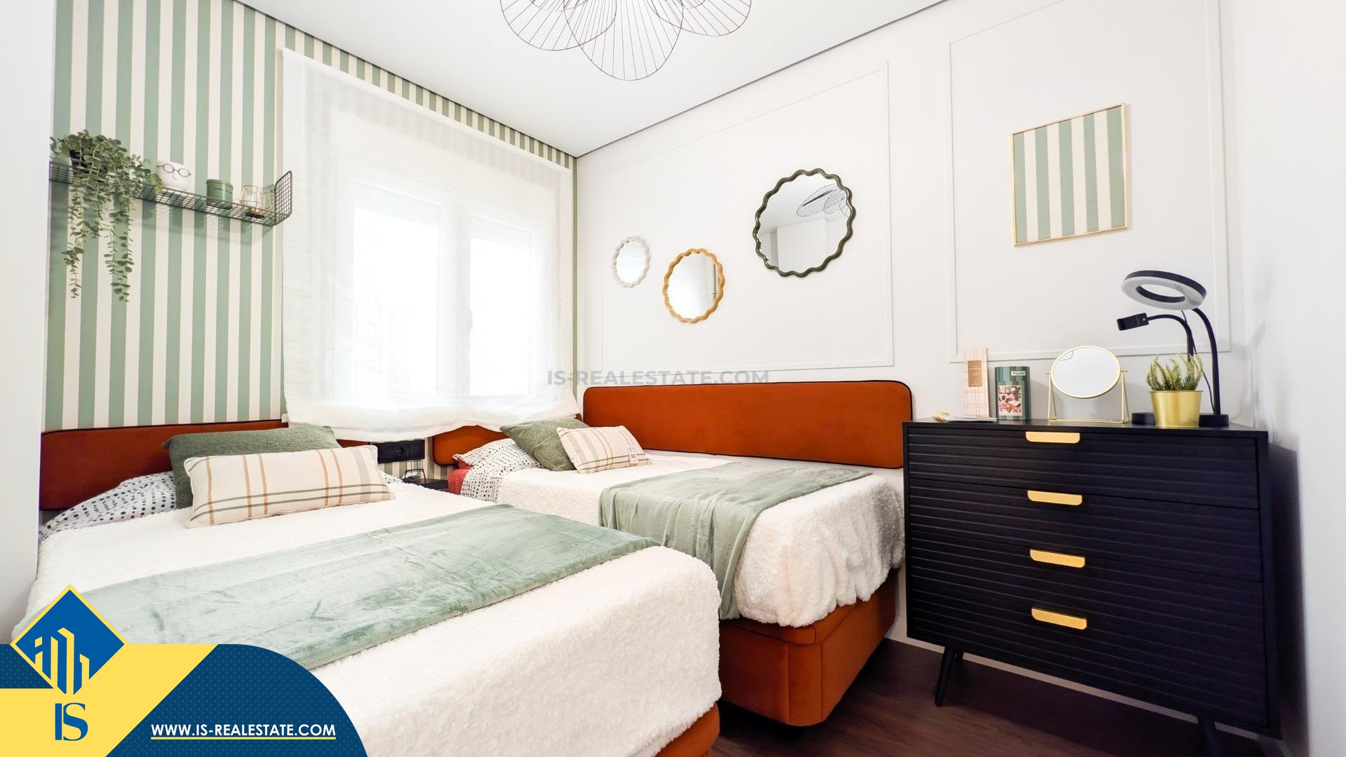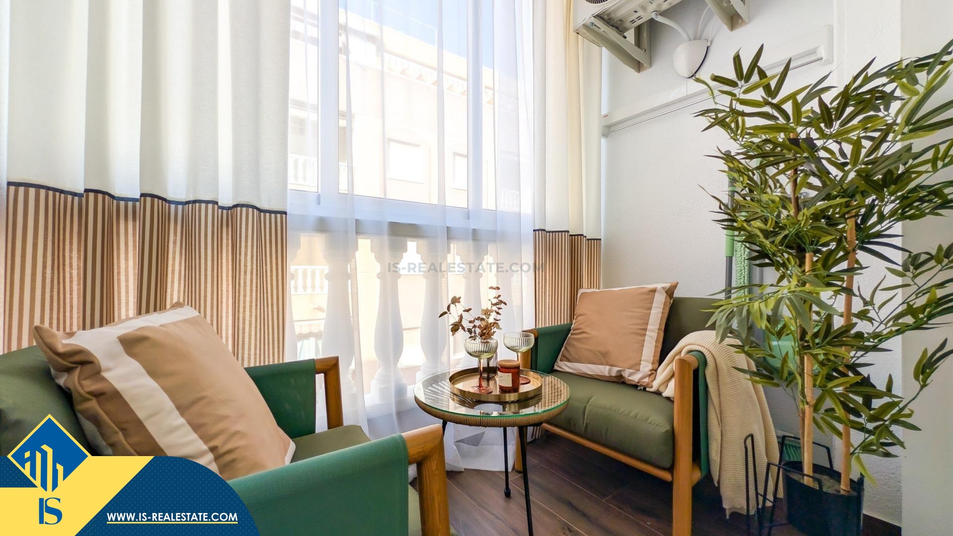 3-jų kambarių renovuotas apartamentas su bendru baseinu, Ispanijoje, Alicante provincijoje, Torrevieja mieste, Playa del Cura rajone, bendras plotas 56 m², 700 metrų iki jūros, 45 kilometrai iki Alicante oro uosto. Turtui priklauso bendras baseinas. Netoli turto yra parduotuvės, restoranai, vaistinės, autobusų stotelės, degalinės, žalios zonos, kavinės, Habaneras alėja