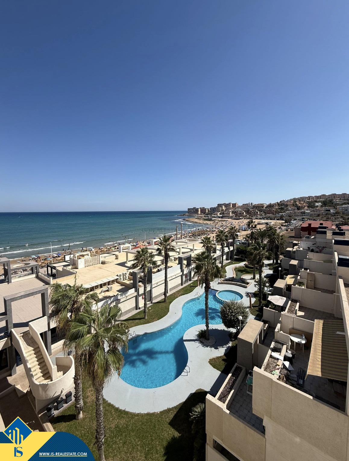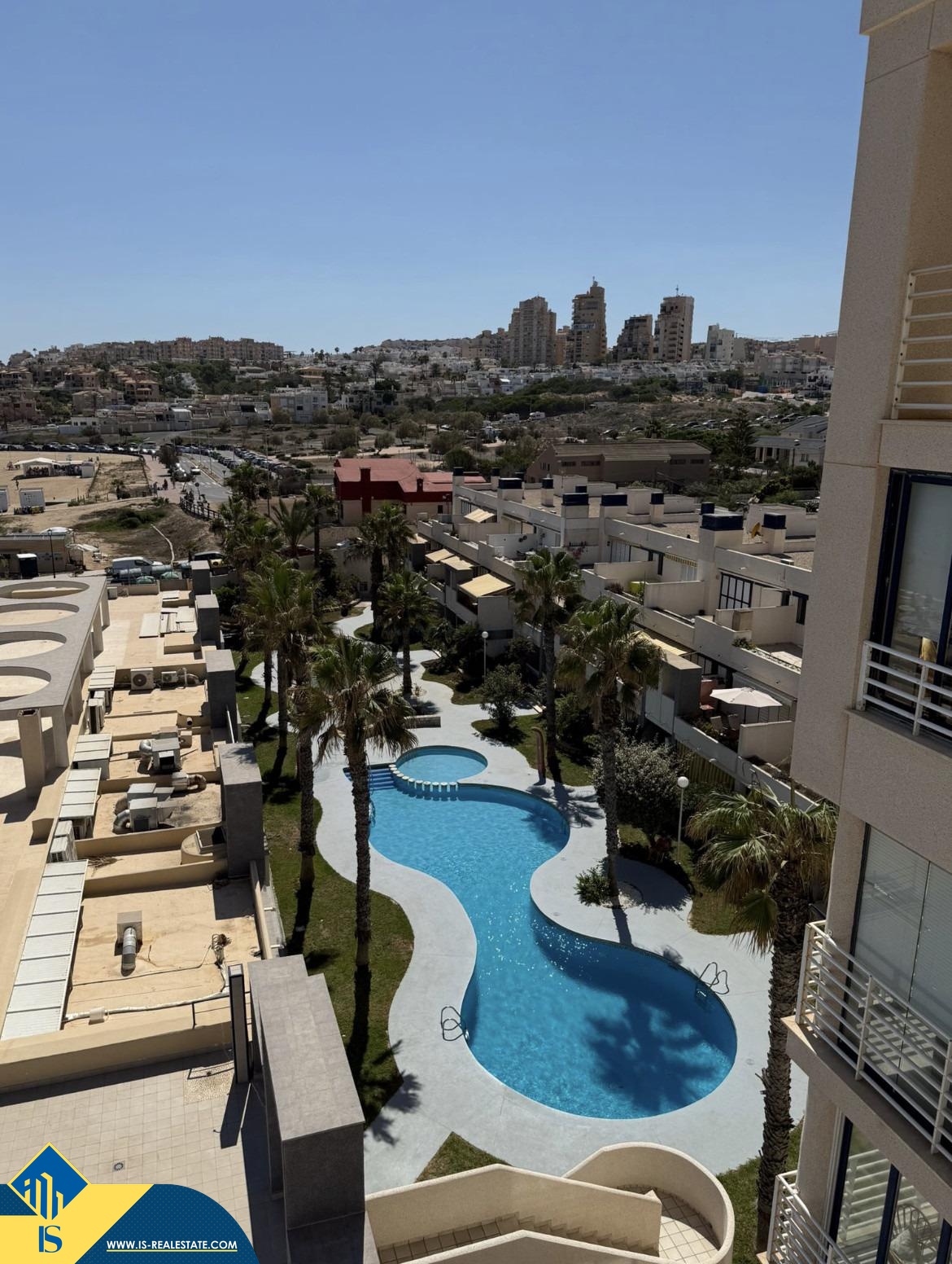 3-jų kambarių renovuotas apartamentas su bendru baseinu, Ispanijoje, Alicante provincijoje, Torrevieja mieste, La Mata rajone, bendras plotas 50 m², 200 metrų iki jūros, 38 kilometrai iki Alicante oro uosto. Turtui priklauso bendras baseinas, terasa, liftas, soliariumas. Netoli turto yra parduotuvės, restoranai, autobusų stotelės, degalinės, žalios zonos, kavinės, vaistinės