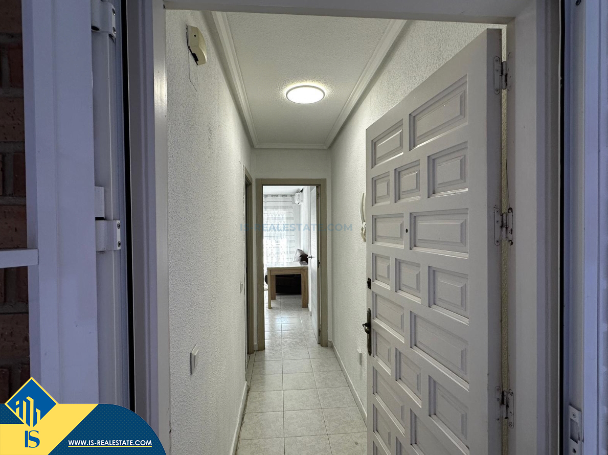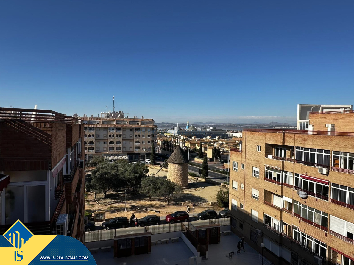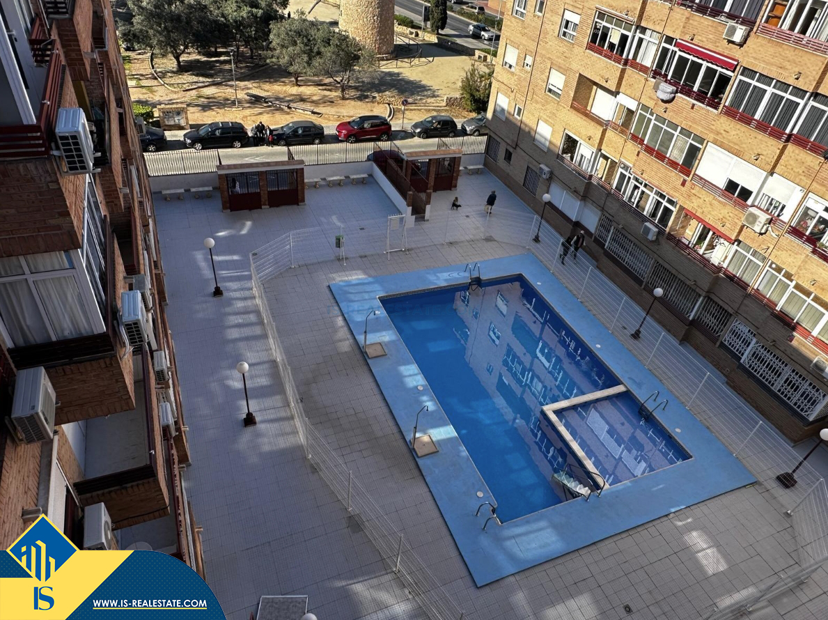 2-jų kambarių apartamentas su bendru baseinu, Ispanijoje, Alicante provincijoje, Torrevieja mieste, bendras plotas 53 m², 800 metrų iki jūros, 45 kilometrai iki Alicante oro uosto. Turtui priklauso bendras baseinas, terasa, liftas. Netoli turto yra parduotuvės, restoranai, vaistinės, autobusų stotelės, degalinės, žalios zonos, kavinės