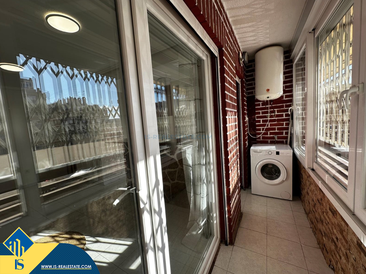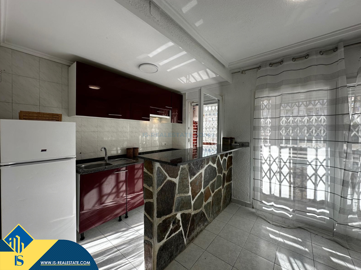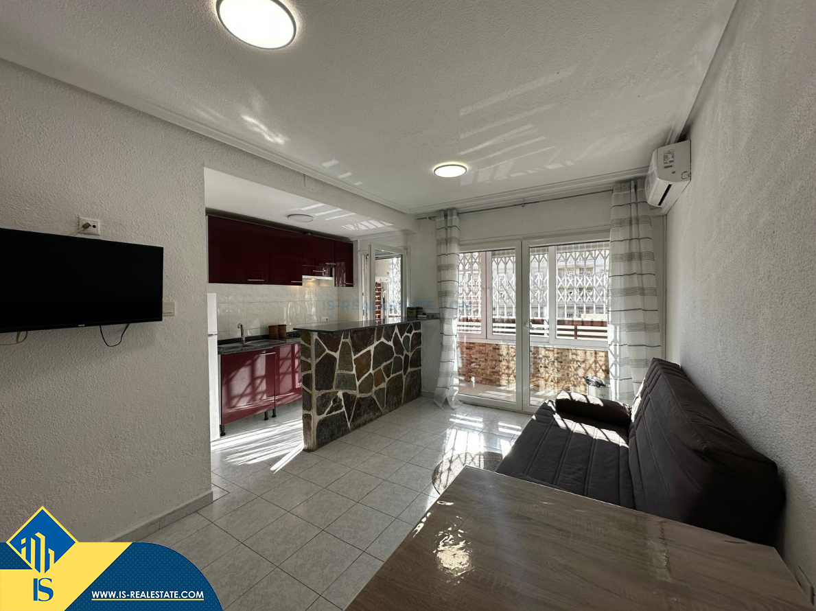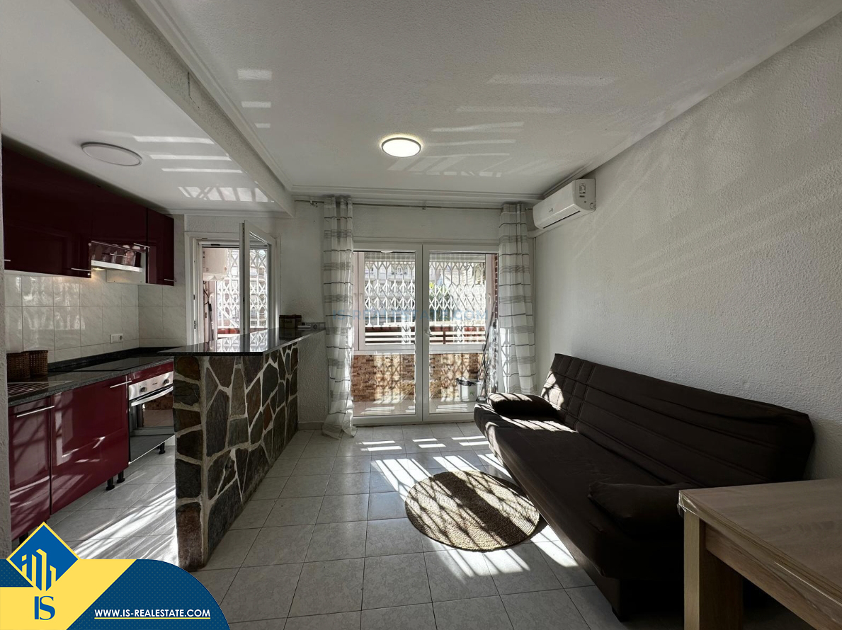 2-jų kambarių apartamentas su bendru baseinu, Ispanijoje, Alicante provincijoje, Torrevieja mieste, bendras plotas 53 m², 800 metrų iki jūros, 45 kilometrai iki Alicante oro uosto. Turtui priklauso bendras baseinas, terasa, liftas. Netoli turto yra parduotuvės, restoranai, vaistinės, autobusų stotelės, degalinės, žalios zonos, kavinės