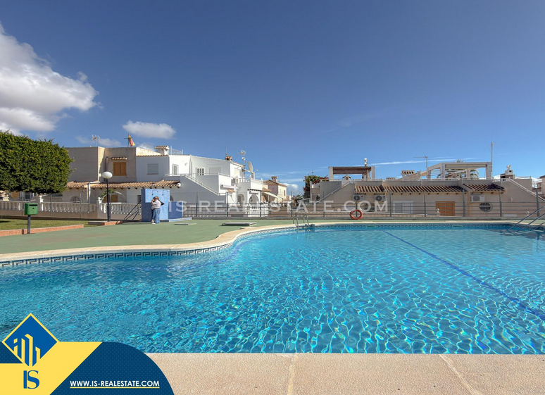 5-ių kambarių renovuotas namas su bendru baseinu, Ispanijoje, Alicante provincijoje, Torrevieja mieste, Los Balcones rajone, bendras plotas 68 m², 1.5 kilometrai iki jūros, 45 kilometrai iki Alicante oro uosto. Turtui priklauso bendras baseinas, terasa, soliariumas. Netoli turto yra parduotuvės, restoranai, autobusų stotelės, vaikų zonos, degalinės, žalios zonos, kavinės