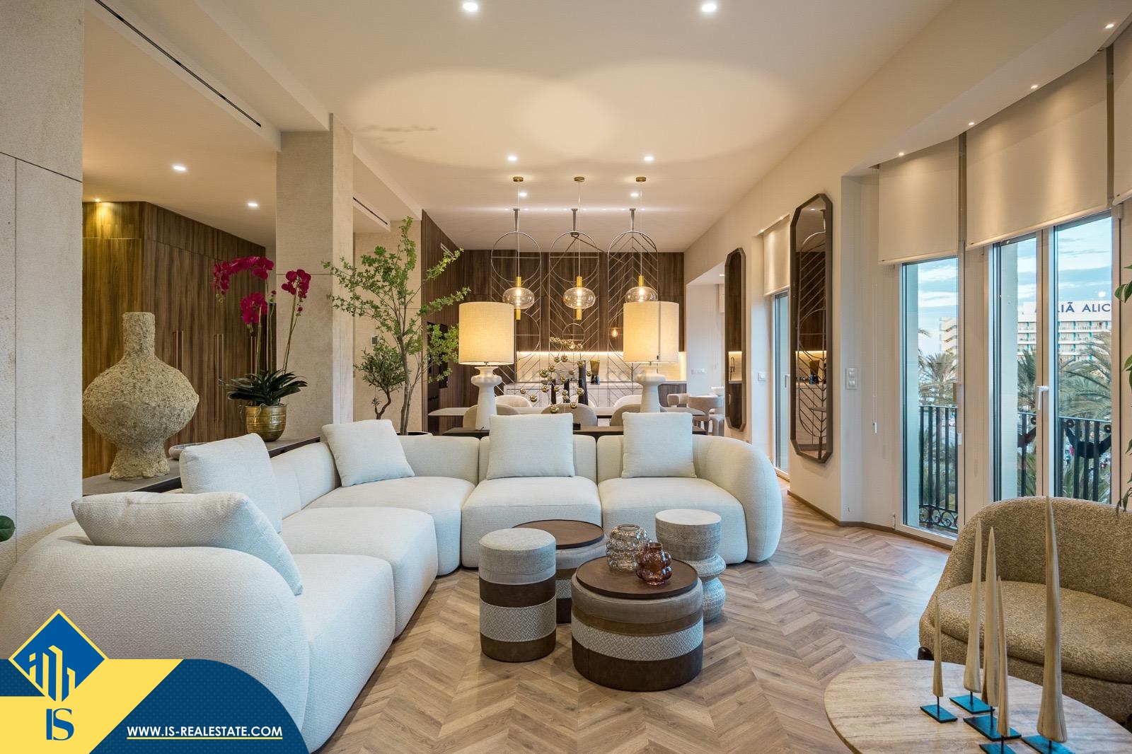 4-ių kambarių apartamentas su terasa, Ispanijoje, Alicante provincijoje, Alicante mieste, bendras plotas 170 m², 300 metrų iki jūros, 19 kilometrų iki Alicante oro uosto. Turtui priklauso terasa, liftas. Netoli turto yra parduotuvės, restoranai, vaistinės, autobusų stotelės, degalinės, žalios zonos, kavinės