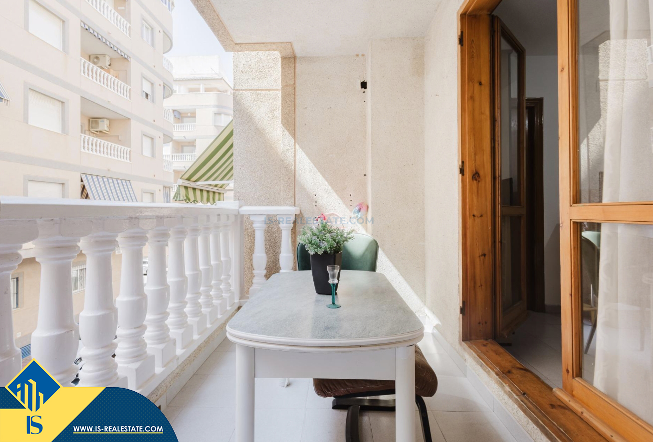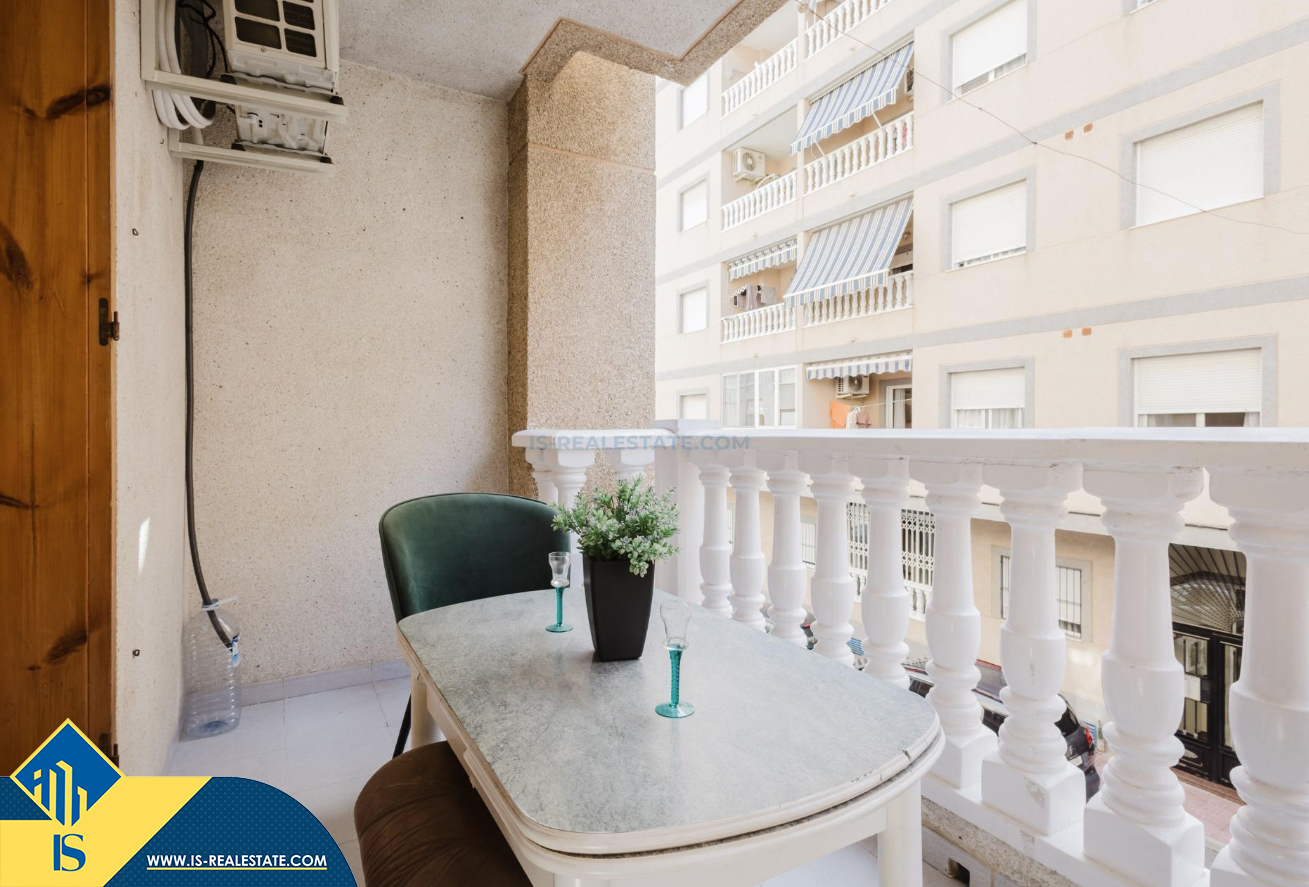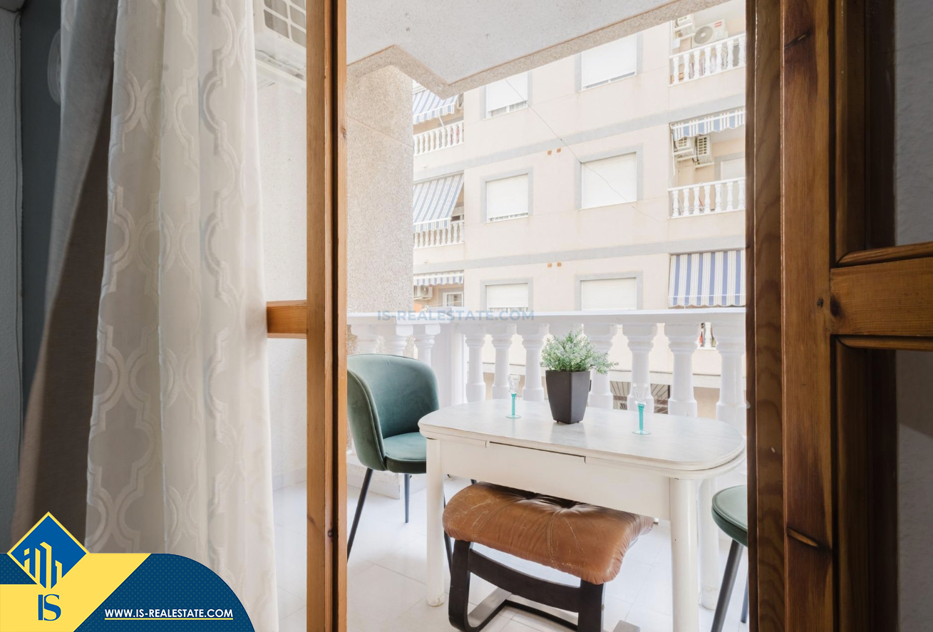 3-jų kambarių apartamentas su terasa, Ispanijoje, Alicante provincijoje, Torrevieja mieste, Playa del Acequión rajone, bendras plotas 50 m², 220 metrų iki jūros, 45 kilometrai iki Alicante oro uosto. Turtui priklauso terasa. Netoli turto yra parduotuvės, restoranai, vaistinės, autobusų stotelės, degalinės, žalios zonos, kavinės