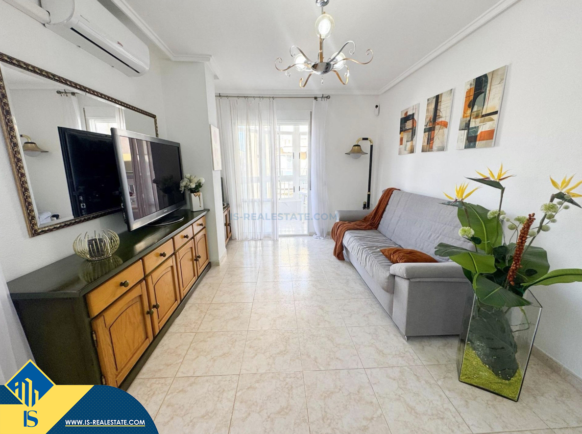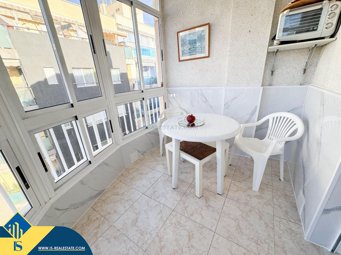 3-jų kambarių apartamentas su terasa, Ispanijoje, Alicante provincijoje, Torrevieja mieste, Playa del Acequión rajone, bendras plotas 72 m², 150 metrų iki jūros, 45 kilometrai iki Alicante oro uosto. Turtui priklauso terasa. Netoli turto yra parduotuvės, restoranai, vaistinės, autobusų stotelės, degalinės, žalios zonos, kavinės