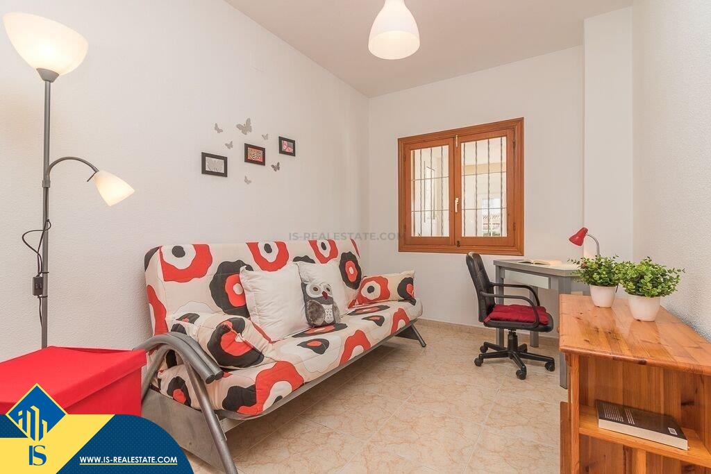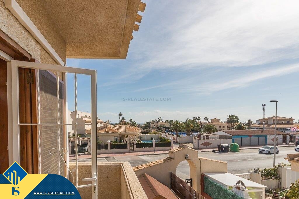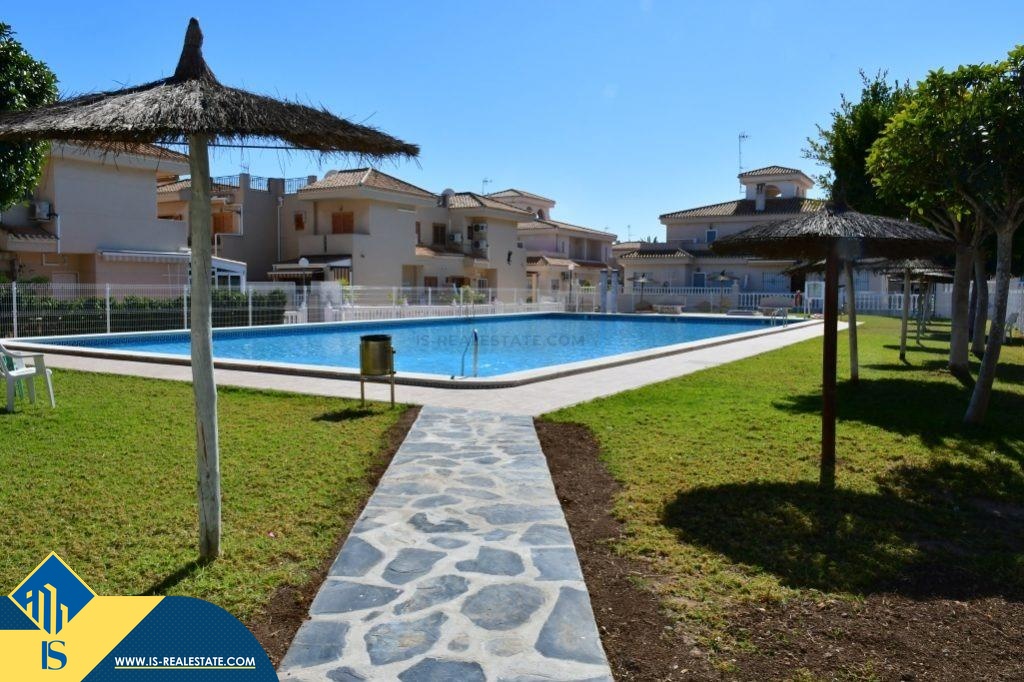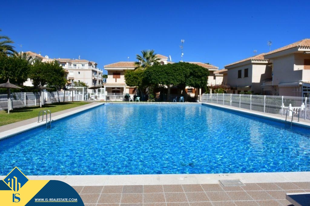 4-ių kambarių namas su bendru baseinu, Ispanijoje, Alicante provincijoje, Orihuela Costa mieste, bendras plotas 90 m², 1.5 kilometrai iki jūros, 57 kilometrai iki Alicante oro uosto. Turtui priklauso bendras baseinas, terasa, vieta automobiliui. Netoli turto yra parduotuvės, restoranai, autobusų stotelės, vaikų zonos, degalinės, žalios zonos, kavinės, ligoninė