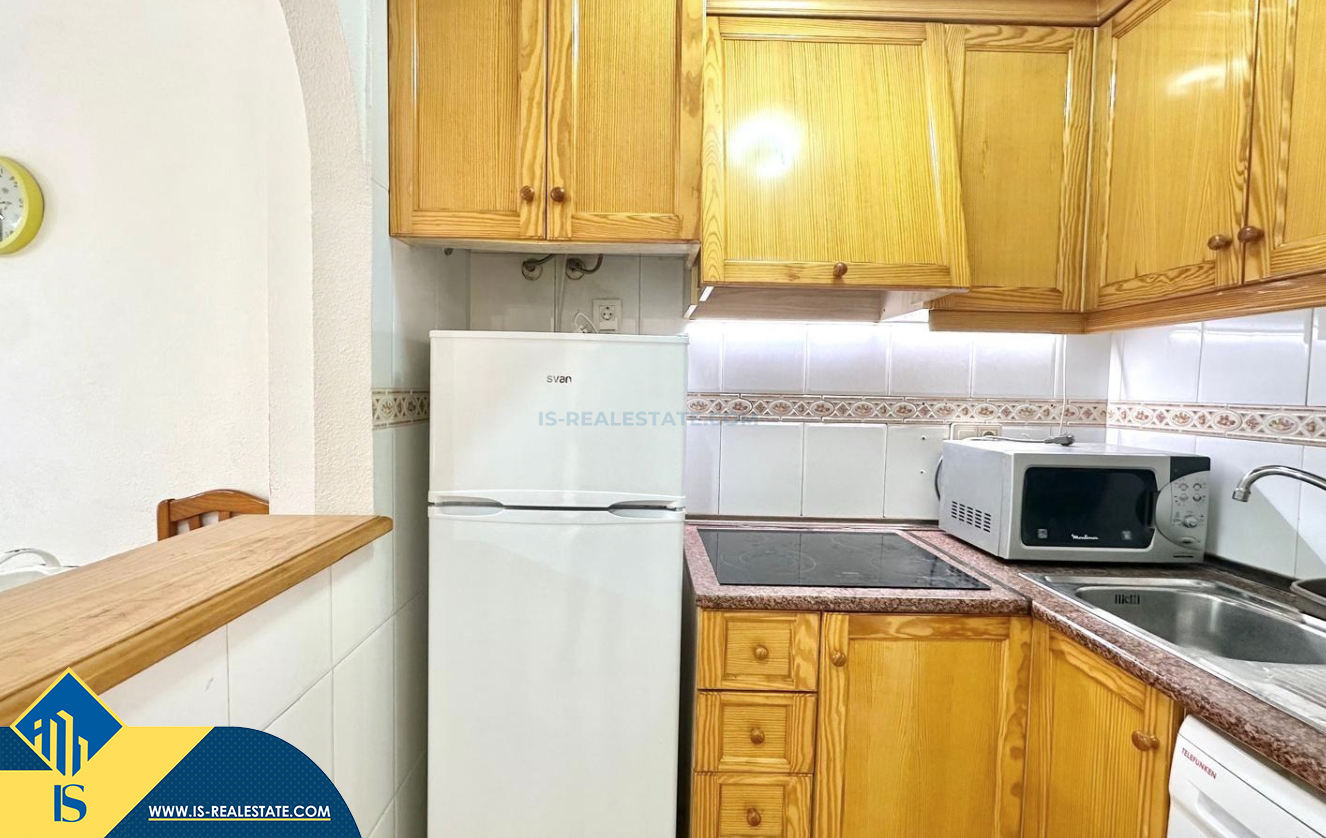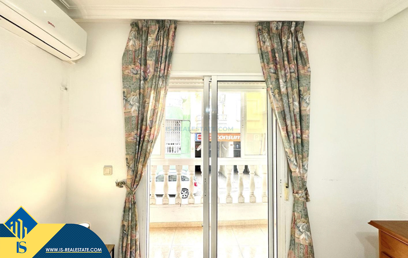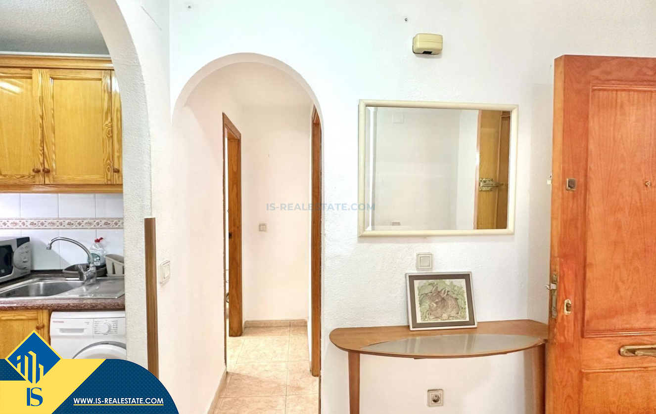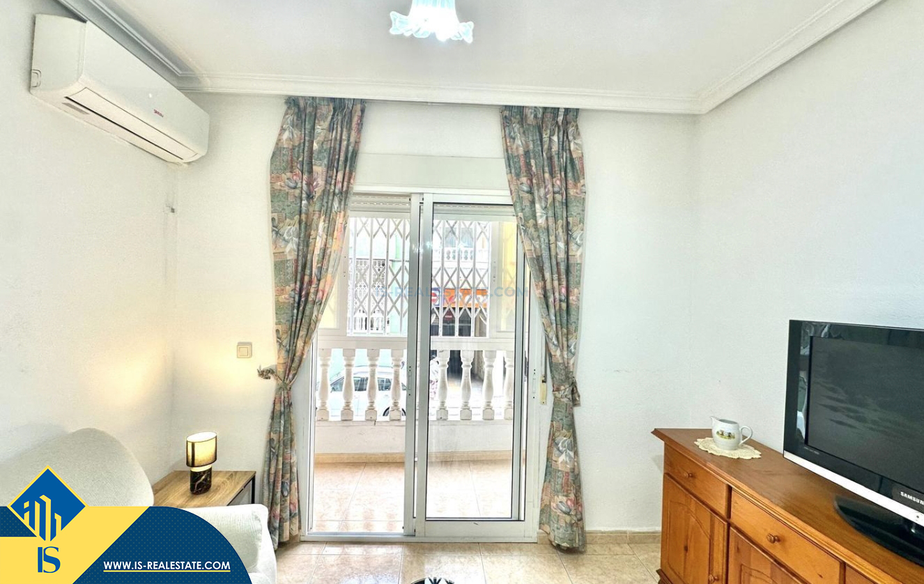 2-jų kambarių apartamentas su terasa, Ispanijoje, Alicante provincijoje, Torrevieja mieste, bendras plotas 48 m², 450 metrų iki jūros, 45 kilometrai iki Alicante oro uosto. Turtui priklauso terasa, liftas. Netoli turto yra parduotuvės, restoranai, vaistinės, autobusų stotelės, degalinės, žalios zonos, kavinės