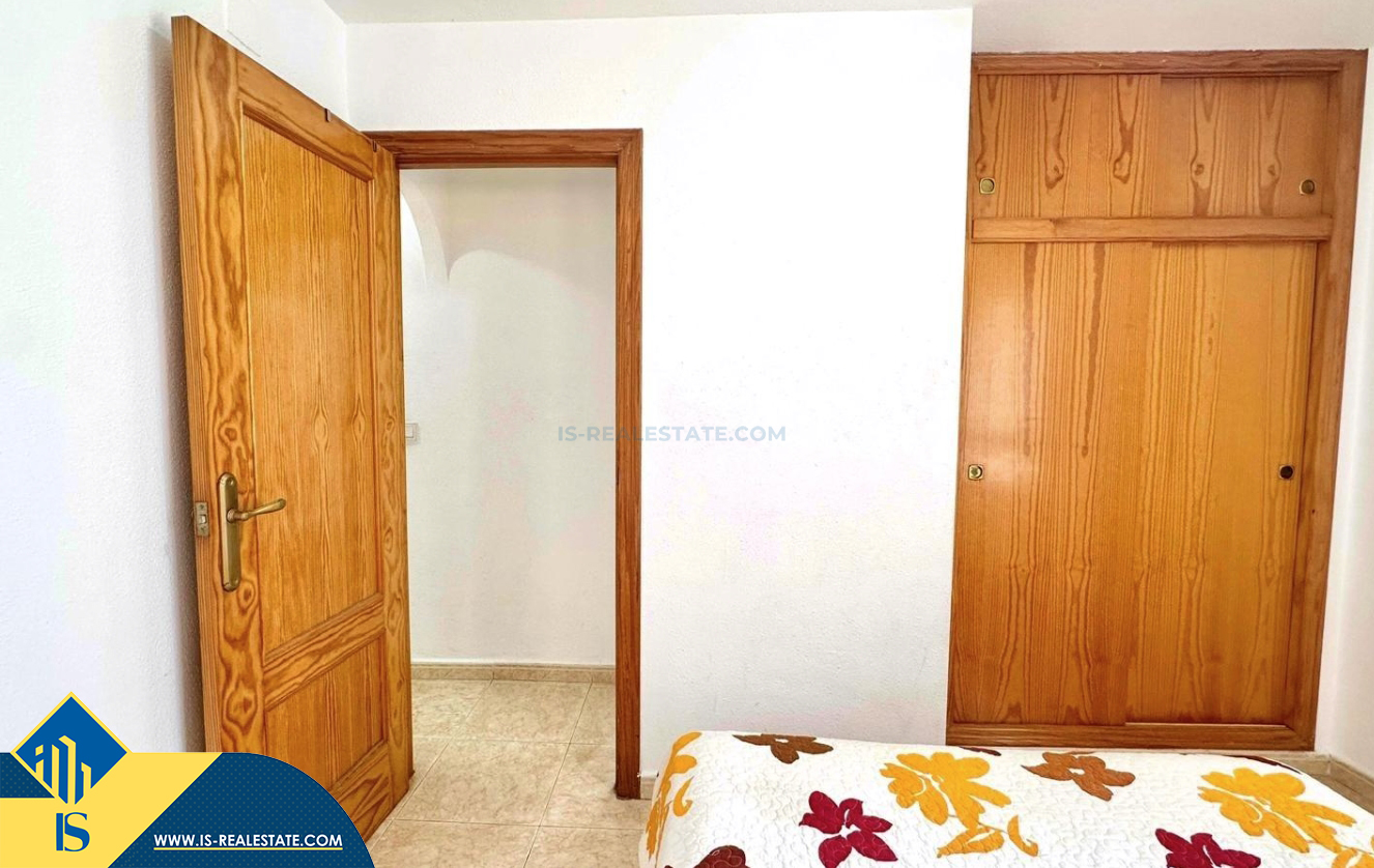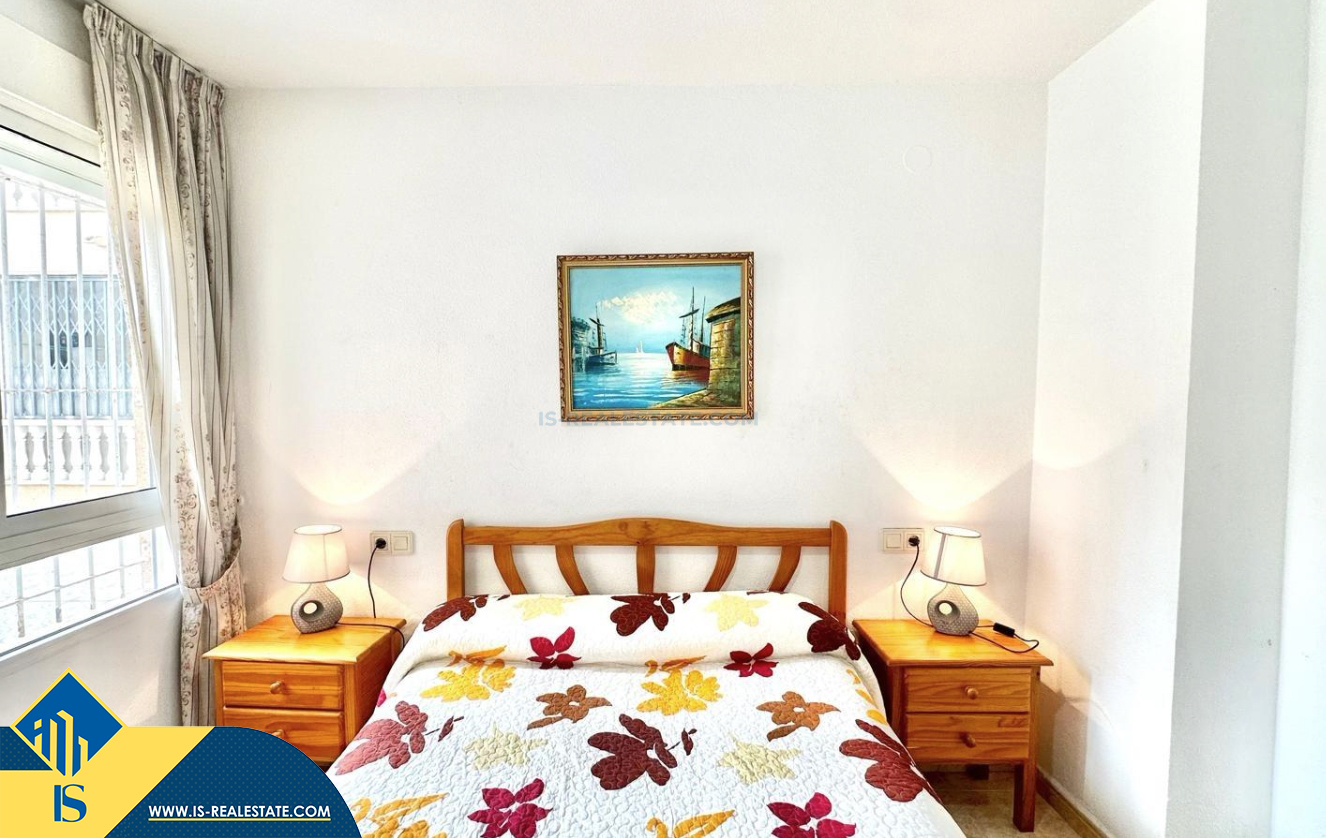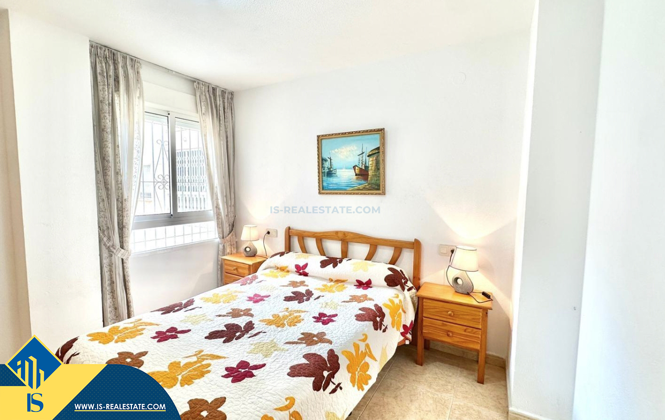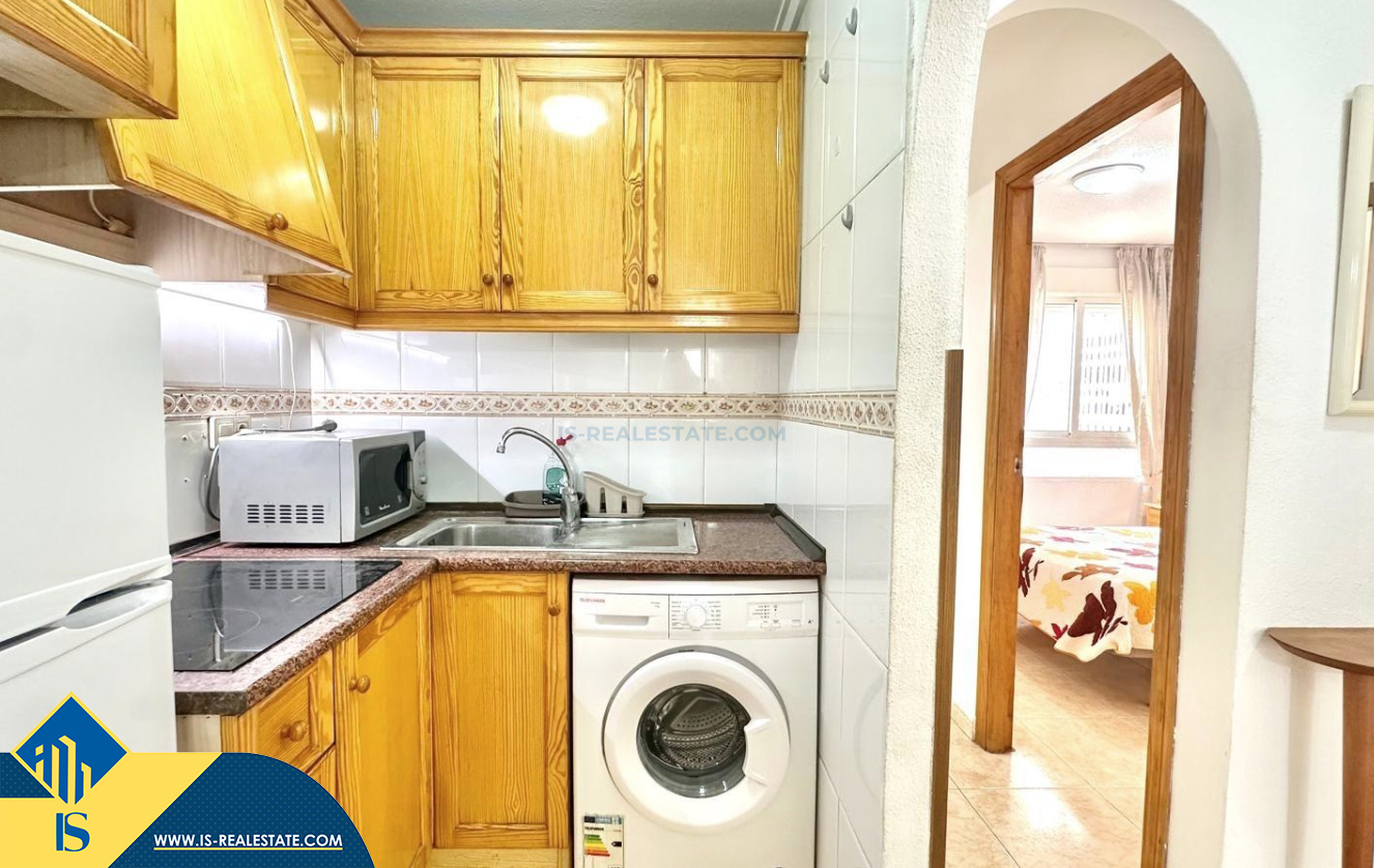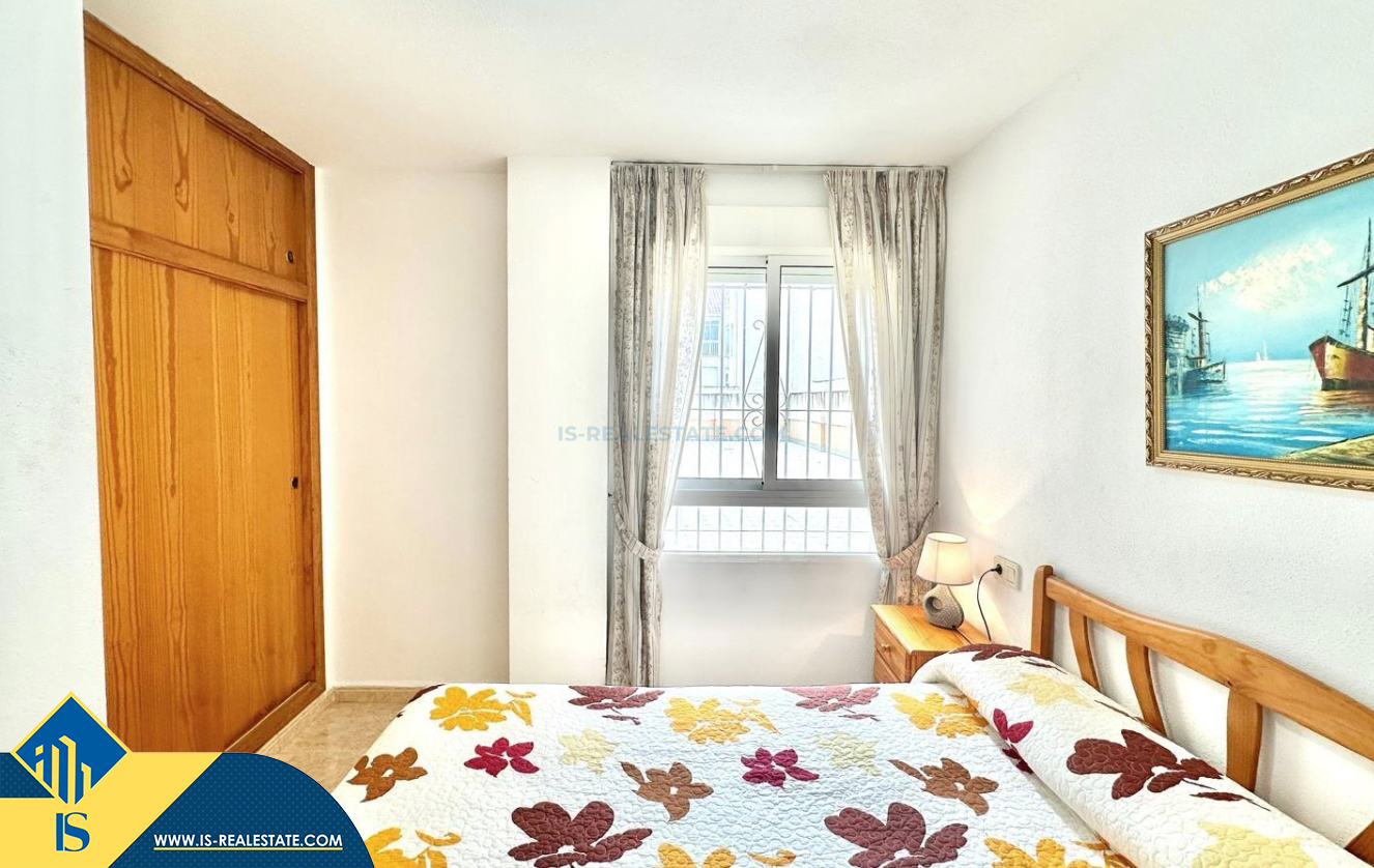 2-jų kambarių apartamentas su terasa, Ispanijoje, Alicante provincijoje, Torrevieja mieste, bendras plotas 48 m², 450 metrų iki jūros, 45 kilometrai iki Alicante oro uosto. Turtui priklauso terasa, liftas. Netoli turto yra parduotuvės, restoranai, vaistinės, autobusų stotelės, degalinės, žalios zonos, kavinės
