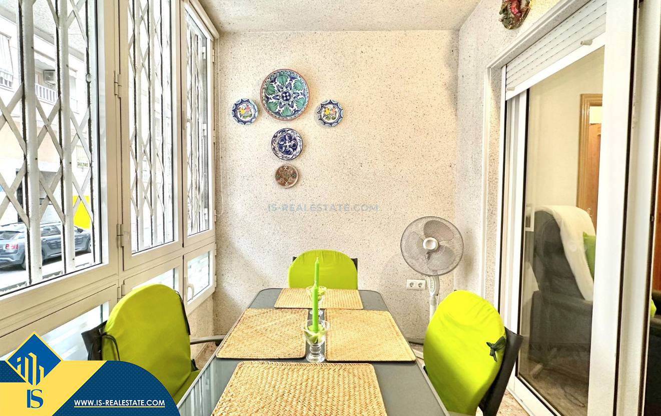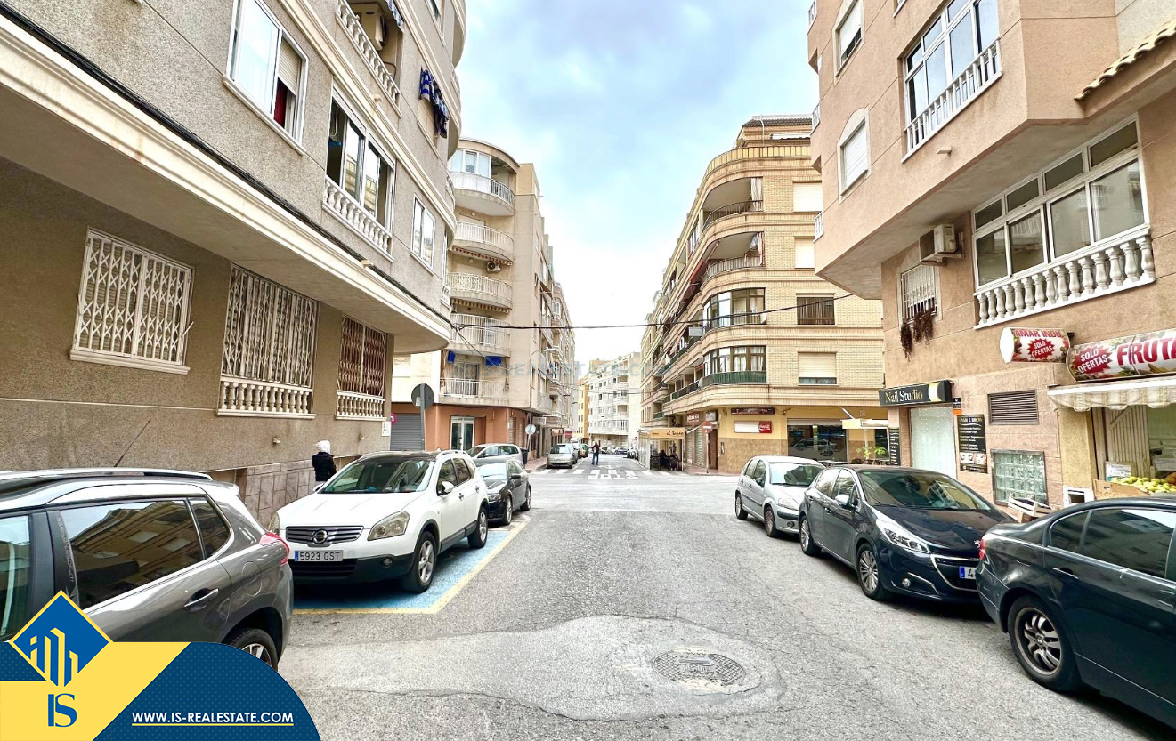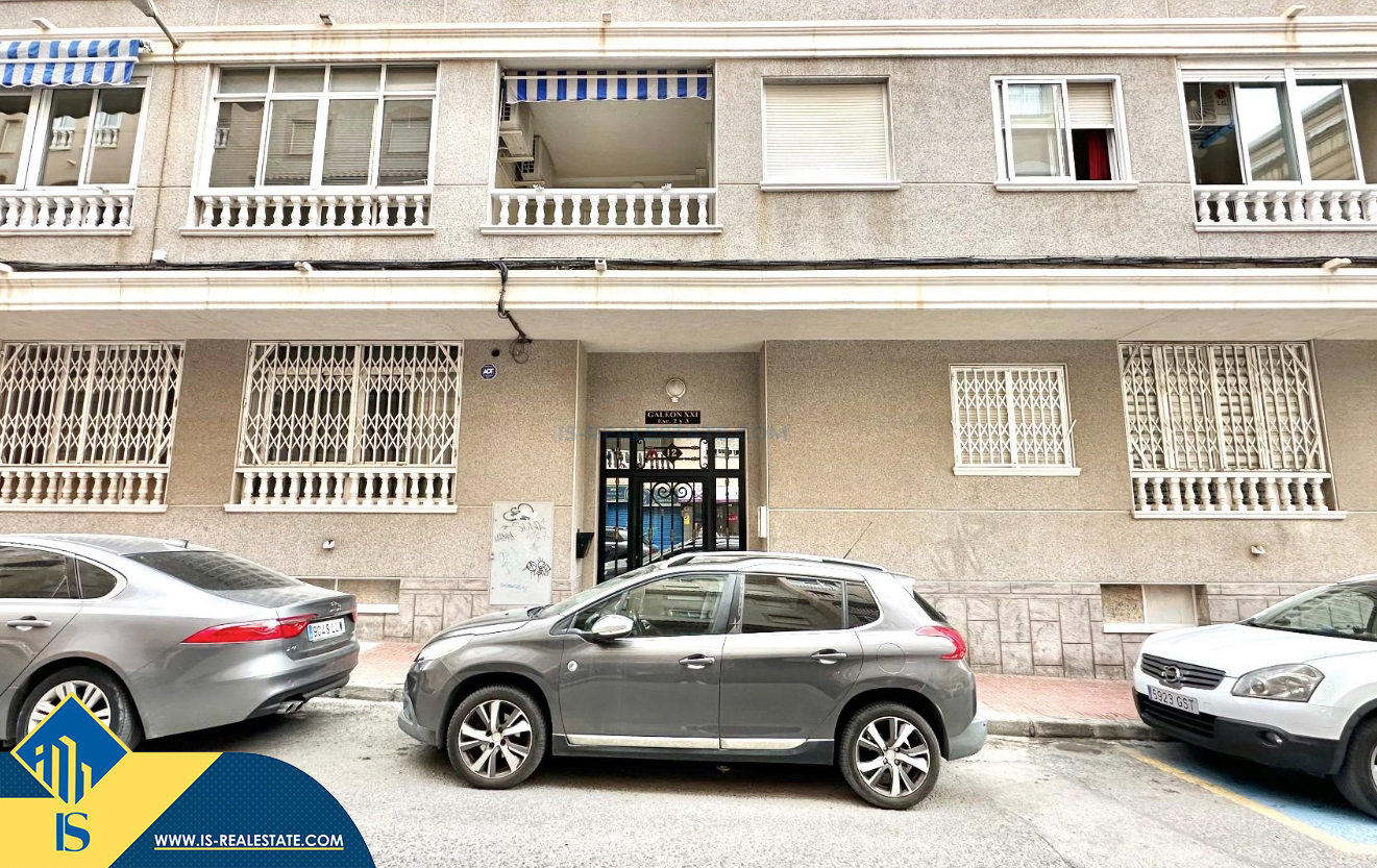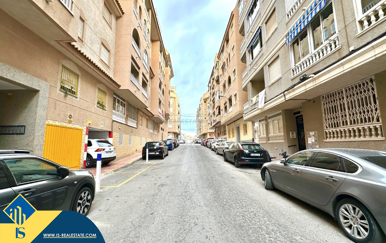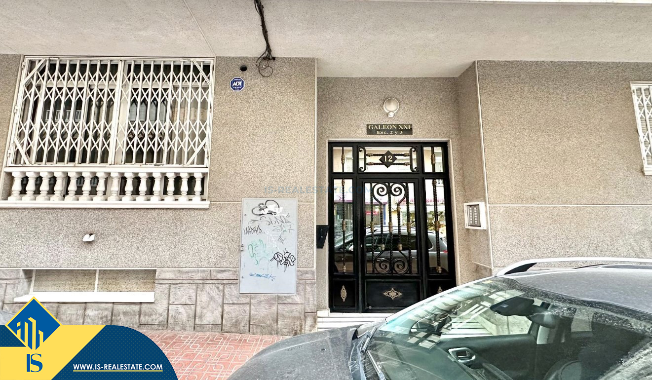 3-jų kambarių apartamentas su terasa, Ispanijoje, Alicante provincijoje, Torrevieja mieste, bendras plotas 74 m², 750 metrų iki jūros, 45 kilometrai iki Alicante oro uosto. Turtui priklauso terasa, liftas, kiemelis. Netoli turto yra parduotuvės, restoranai, vaistinės, autobusų stotelės, degalinės, žalios zonos, kavinės