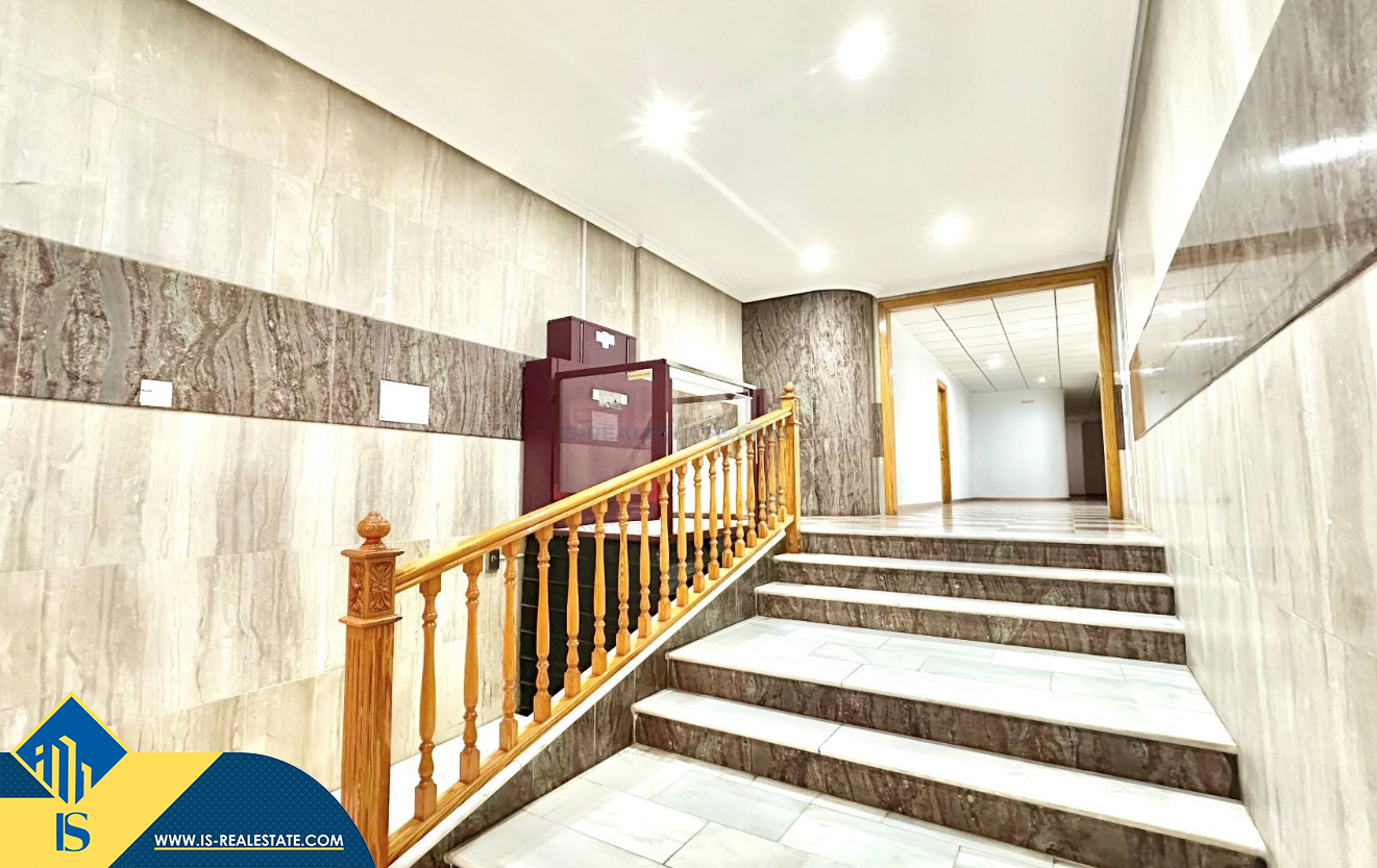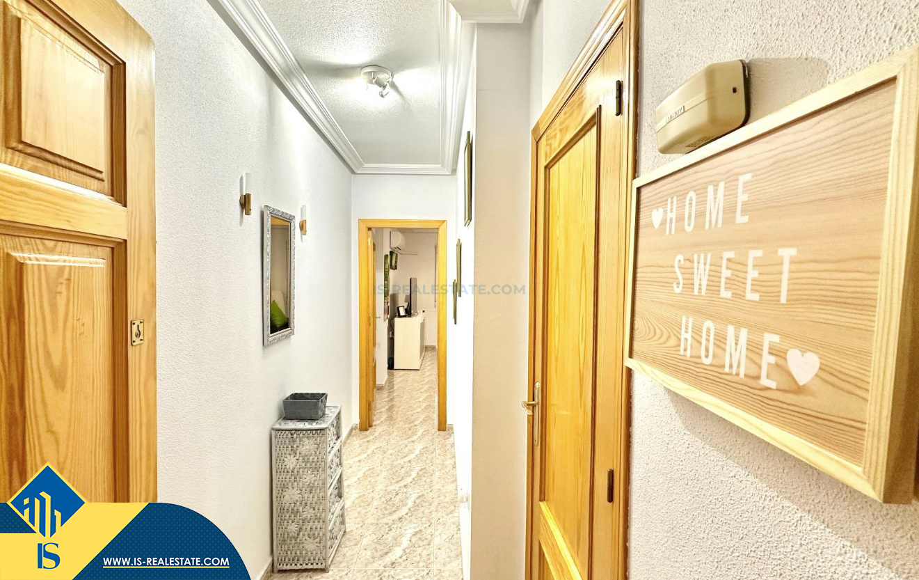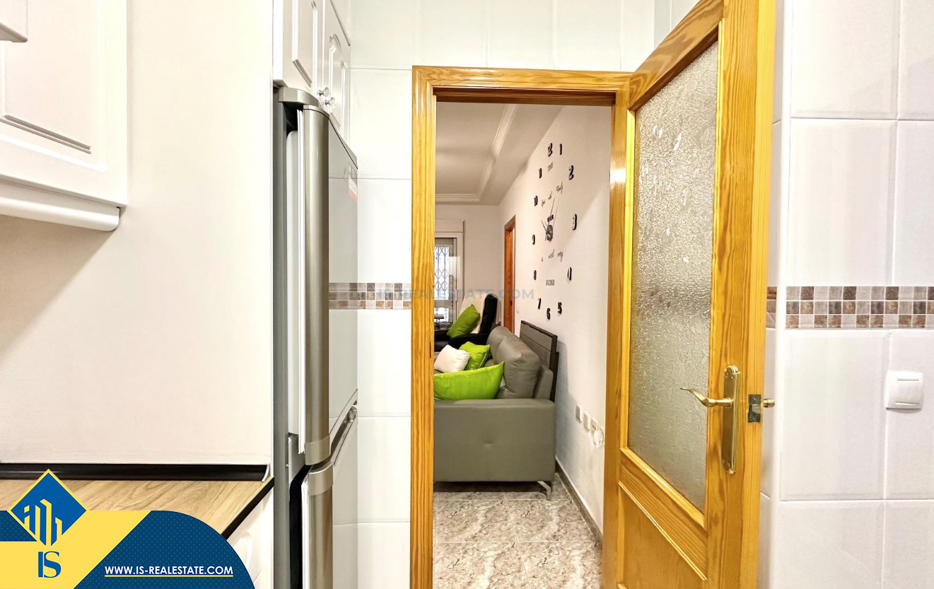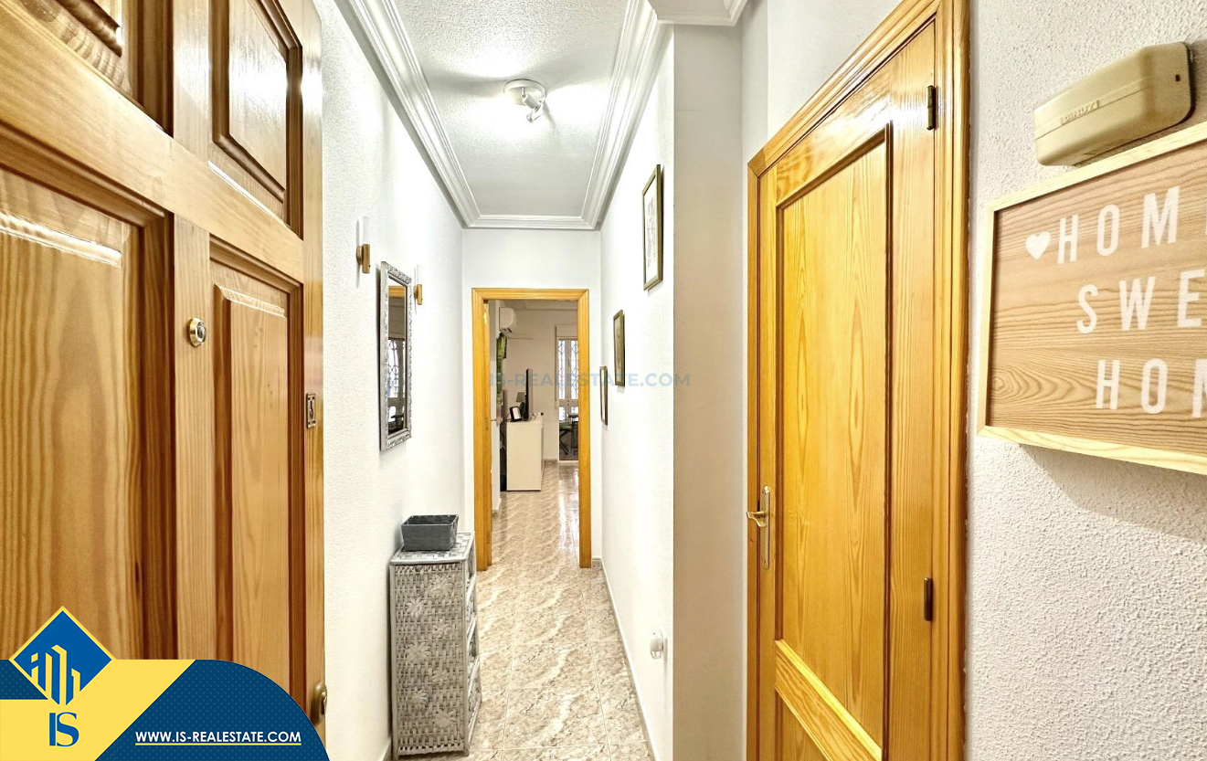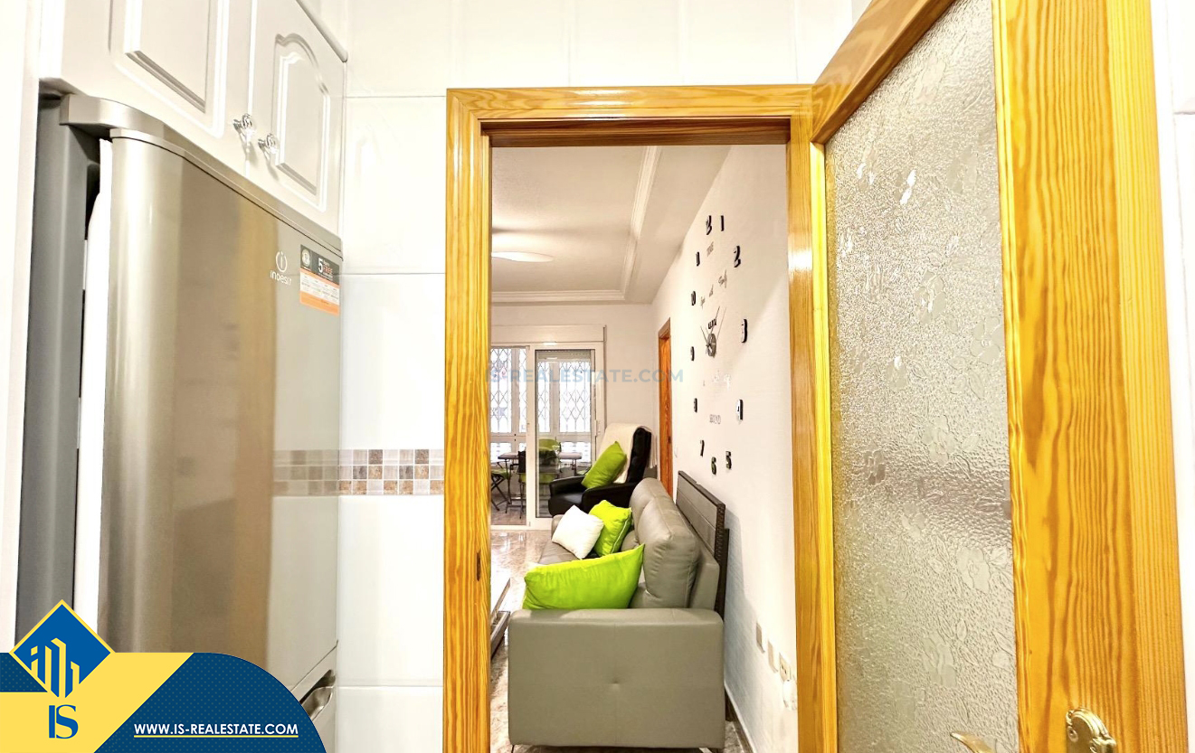 3-jų kambarių apartamentas su terasa, Ispanijoje, Alicante provincijoje, Torrevieja mieste, bendras plotas 74 m², 750 metrų iki jūros, 45 kilometrai iki Alicante oro uosto. Turtui priklauso terasa, liftas, kiemelis. Netoli turto yra parduotuvės, restoranai, vaistinės, autobusų stotelės, degalinės, žalios zonos, kavinės