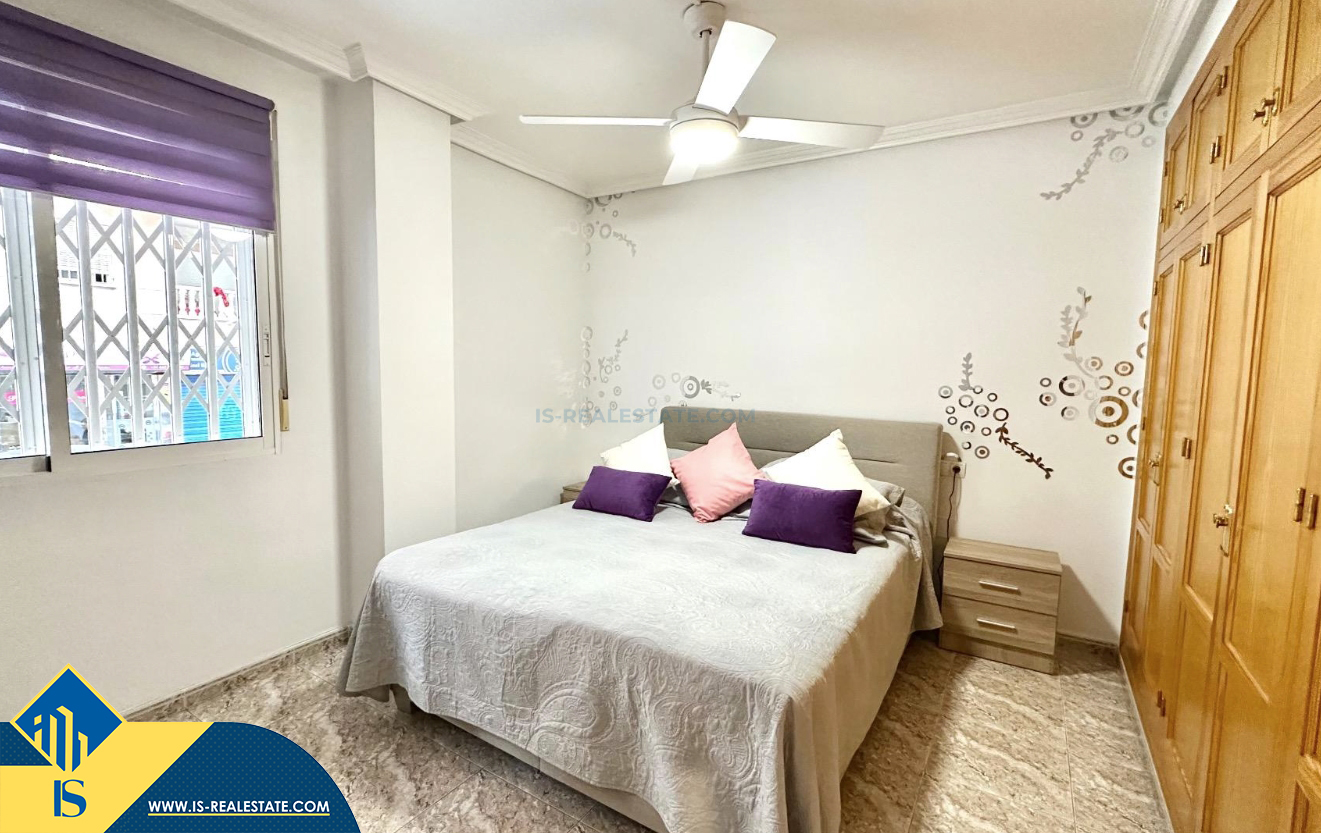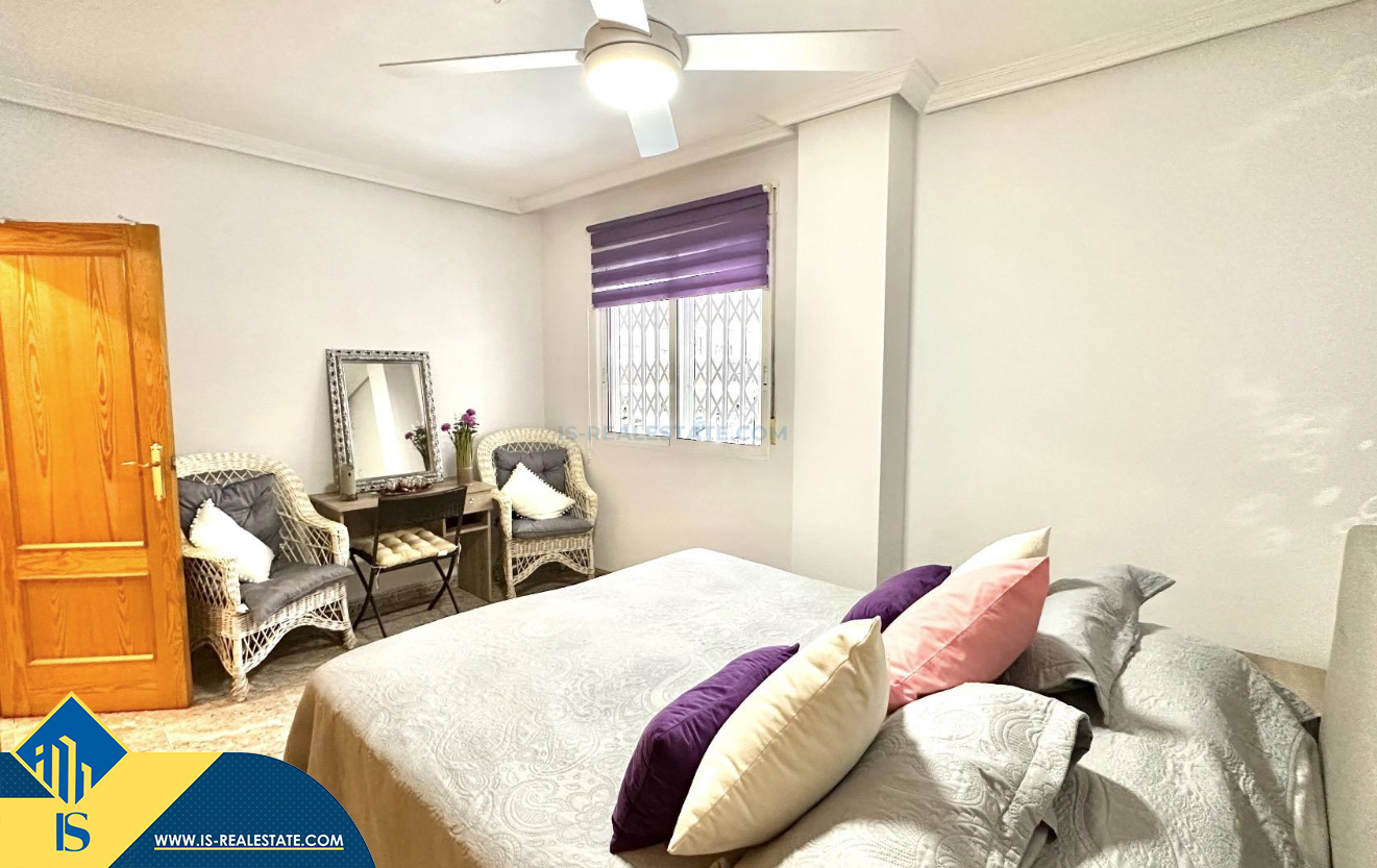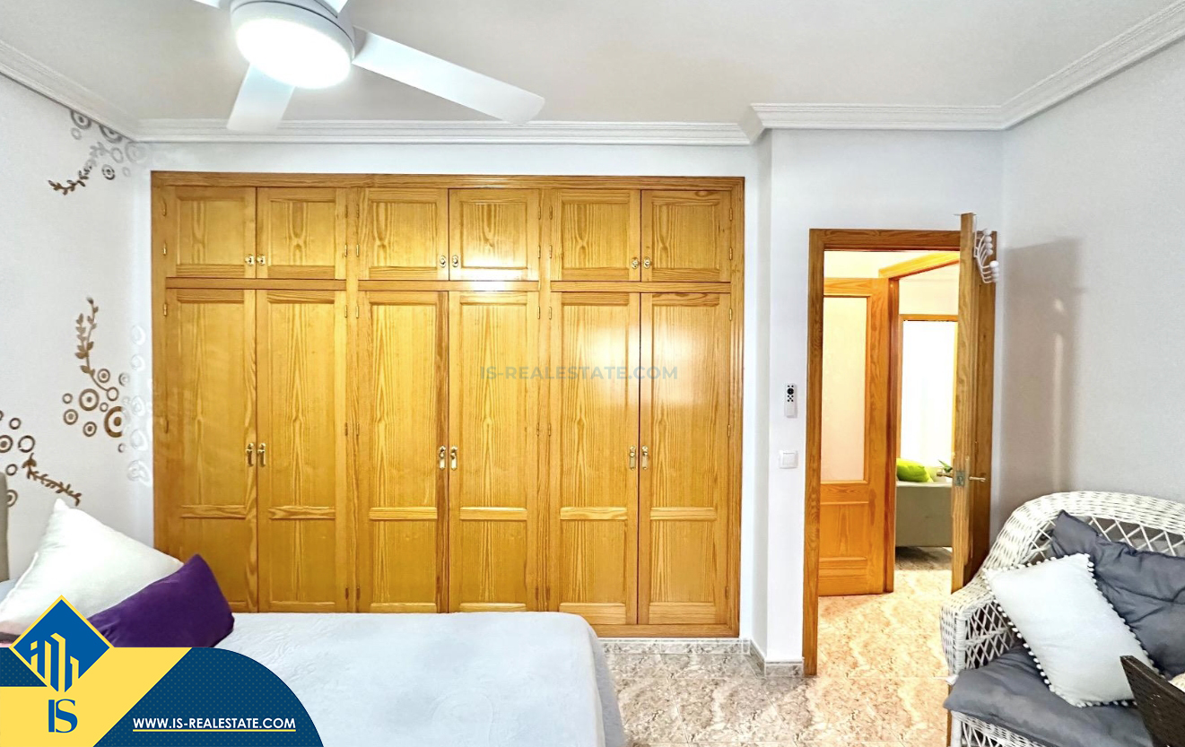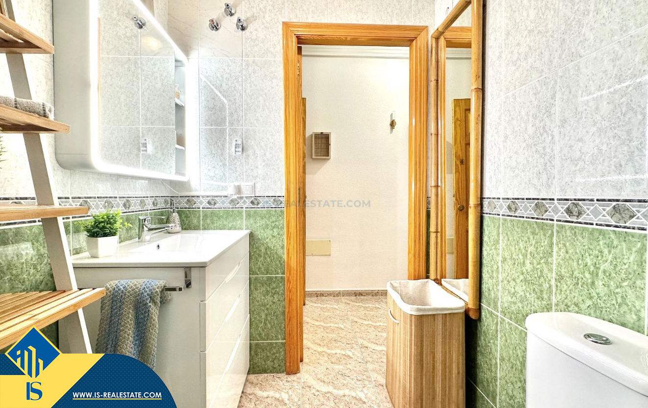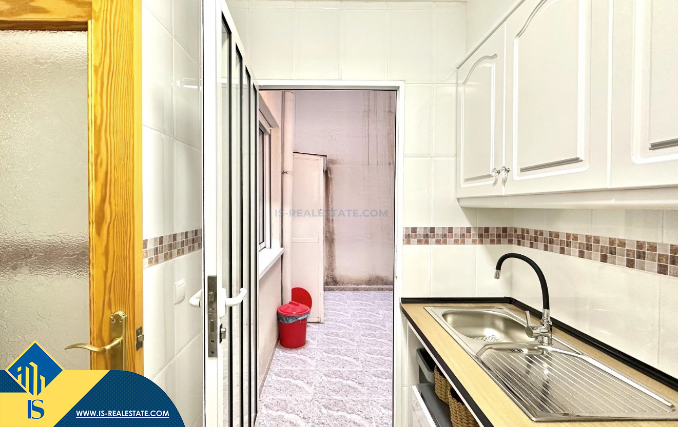 3-jų kambarių apartamentas su terasa, Ispanijoje, Alicante provincijoje, Torrevieja mieste, bendras plotas 74 m², 750 metrų iki jūros, 45 kilometrai iki Alicante oro uosto. Turtui priklauso terasa, liftas, kiemelis. Netoli turto yra parduotuvės, restoranai, vaistinės, autobusų stotelės, degalinės, žalios zonos, kavinės