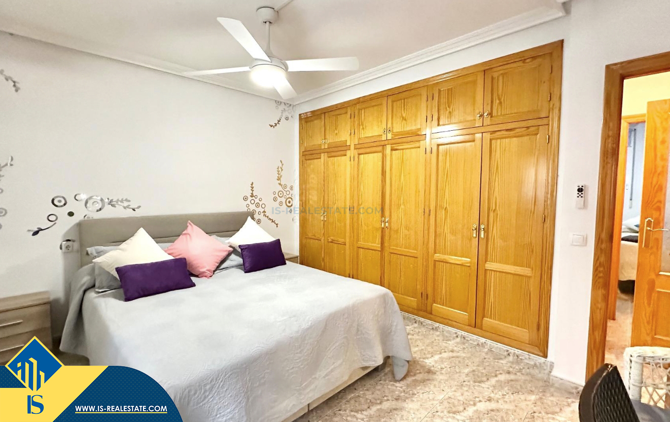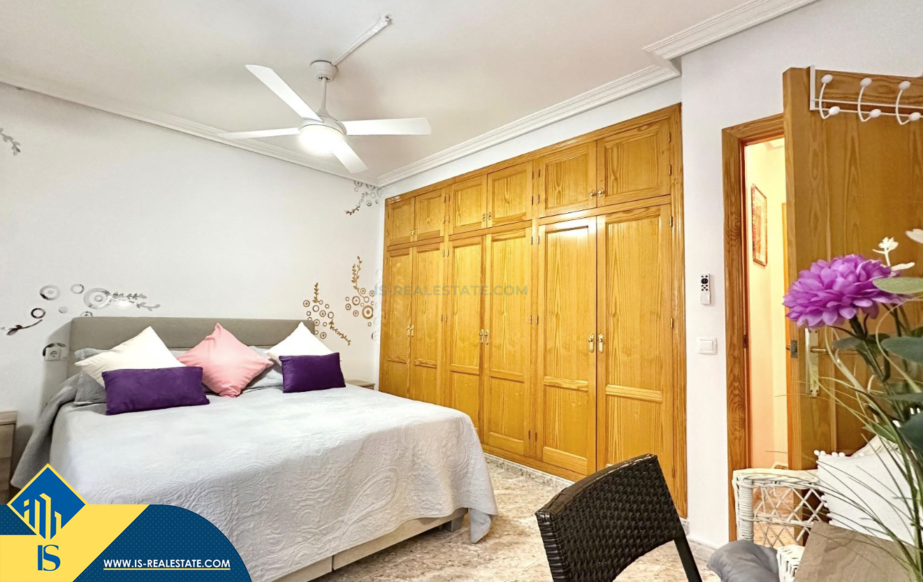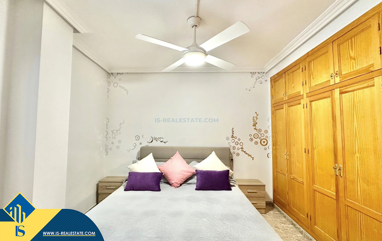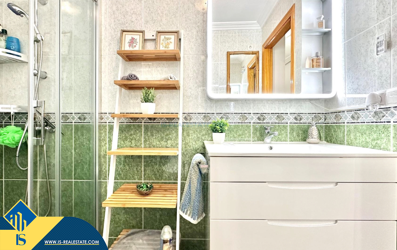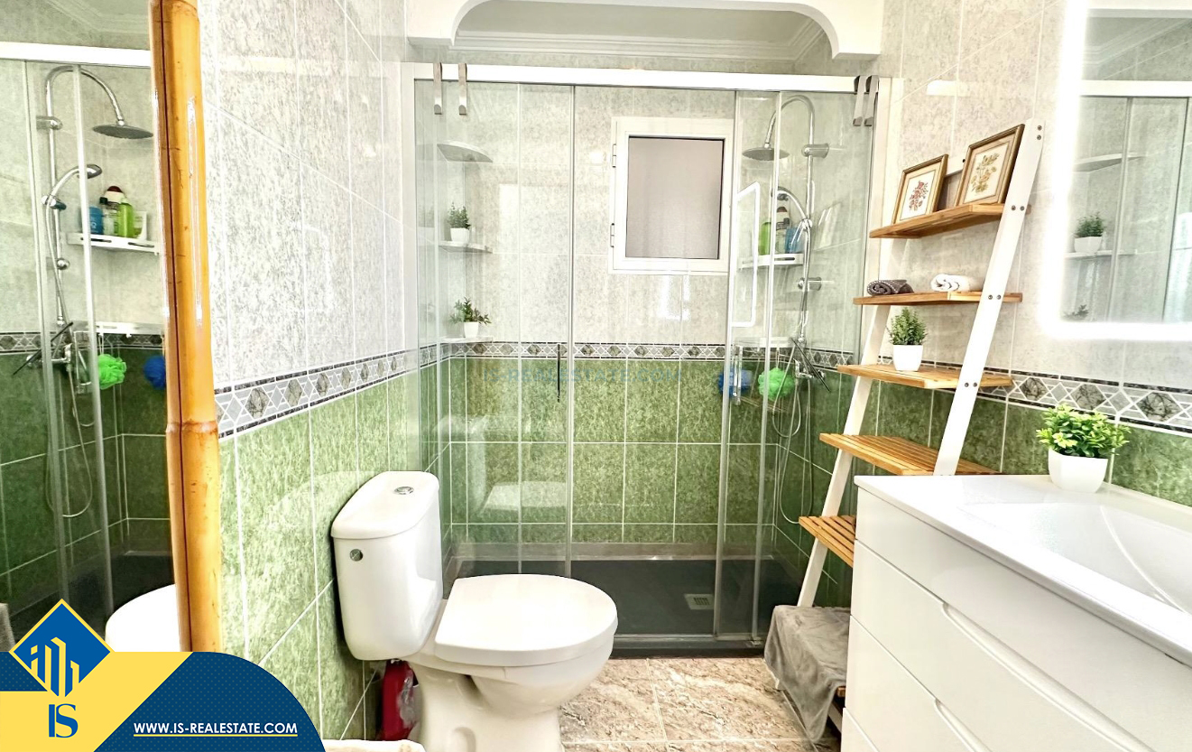 3-jų kambarių apartamentas su terasa, Ispanijoje, Alicante provincijoje, Torrevieja mieste, bendras plotas 74 m², 750 metrų iki jūros, 45 kilometrai iki Alicante oro uosto. Turtui priklauso terasa, liftas, kiemelis. Netoli turto yra parduotuvės, restoranai, vaistinės, autobusų stotelės, degalinės, žalios zonos, kavinės