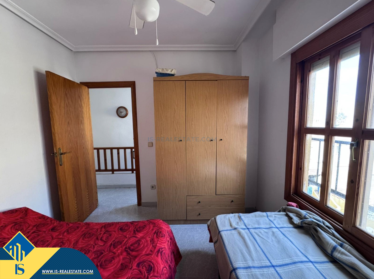 3-jų kambarių duplex penthouse apartamentas su bendru baseinu, Ispanijoje, Alicante provincijoje, Torrevieja mieste, bendras plotas 85 m², 1 kilometras iki jūros, 45 kilometrai iki Alicante oro uosto. Turtui priklauso bendras baseinas. Netoli turto yra parduotuvės, restoranai, autobusų stotelės, degalinės, žalios zonos, kavinės, vaistinės