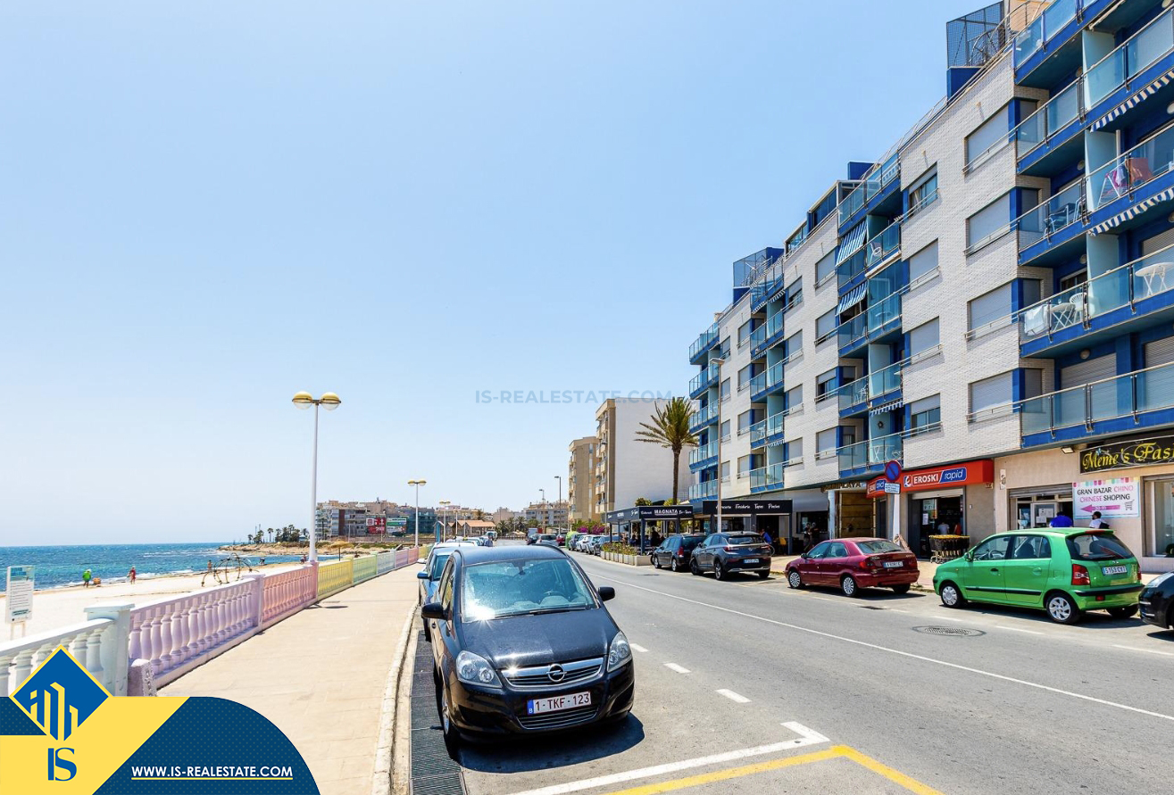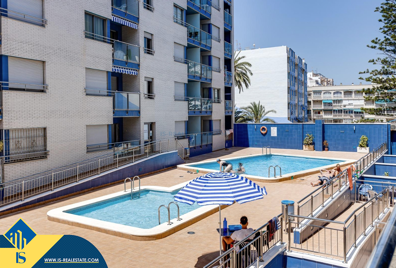 Studija su bendru baseinu, Ispanijoje, Alicante provincijoje, Torrevieja mieste, Playa de los Locos rajone, bendras plotas 49 m², 100 metrų iki jūros, 45 kilometrai iki Alicante oro uosto. Turtui priklauso bendras baseinas, terasa, liftas. Netoli turto yra parduotuvės, restoranai, vaistinės, autobusų stotelės, degalinės, žalios zonos, kavinės, Habaneras alėja