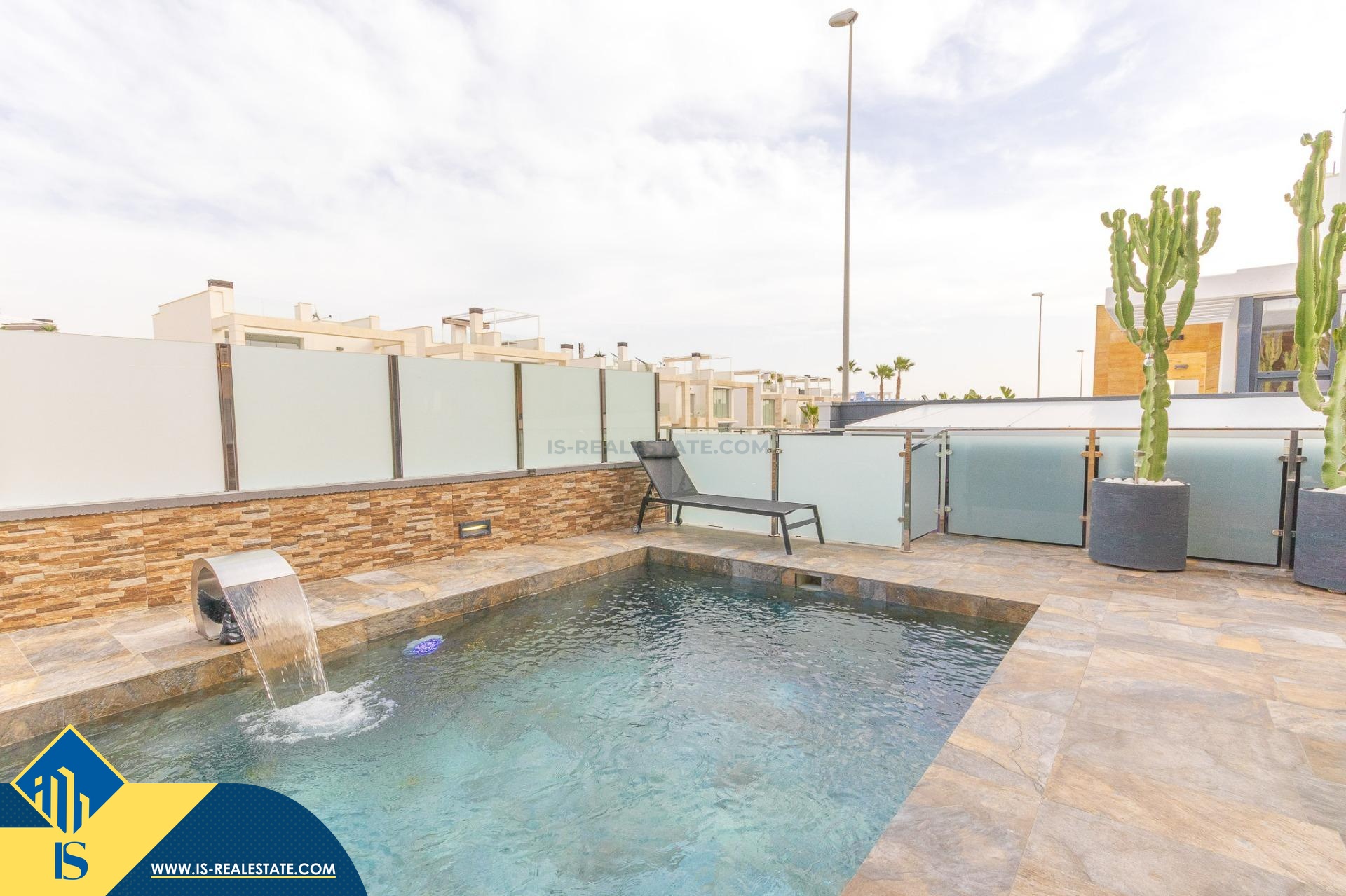4-ių kambarių vila su privačiu baseinu, Ispanijoje, Alicante provincijoje, Orihuela Costa mieste, bendras plotas 130 m², 1.5 kilometrai iki jūros, 57 kilometrai iki Alicante oro uosto. Turtui priklauso privatus baseinas, terasa, vieta automobiliui, privatus kiemas, soliariumas. Netoli turto yra parduotuvės, restoranai, autobusų stotelės, vaikų zonos, degalinės, žalios zonos, kavinės, ligoninė