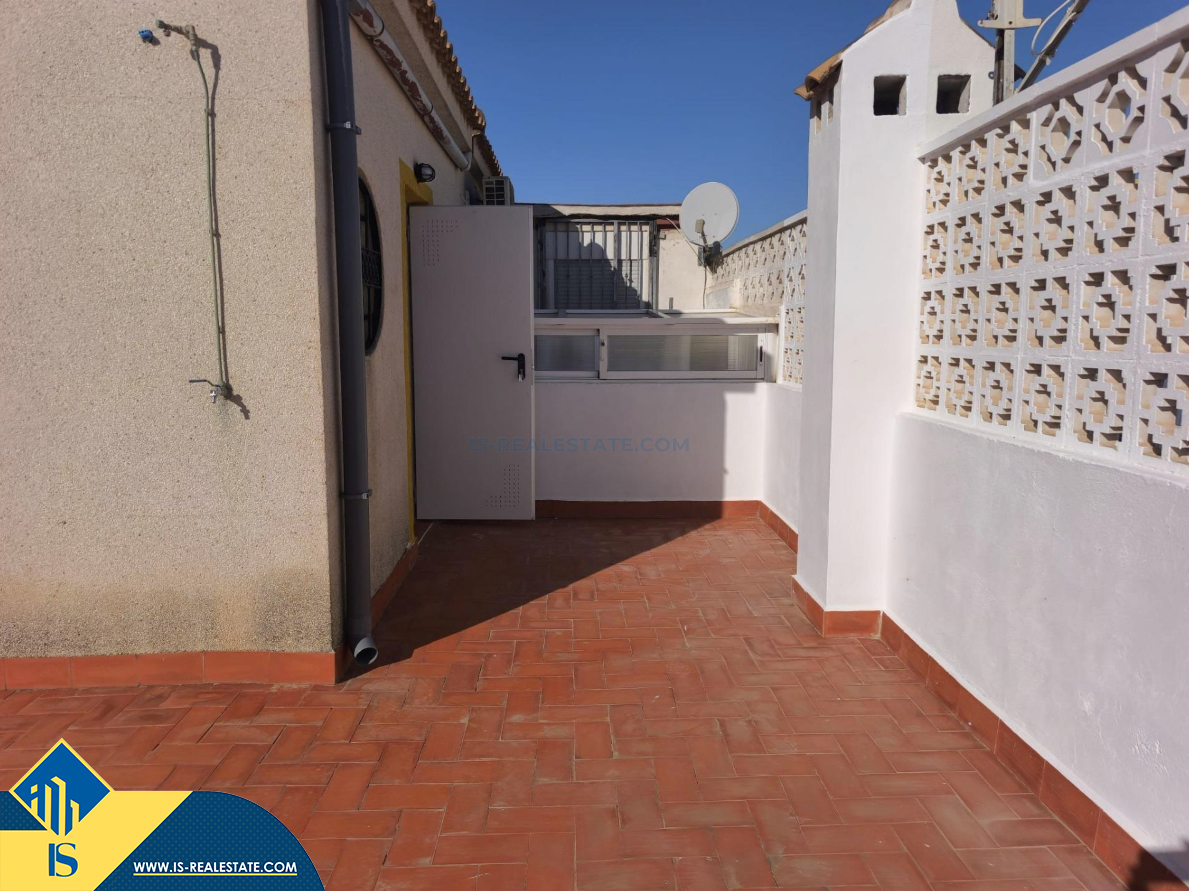 4-ių kambarių bungalas su bendru baseinu, Ispanijoje, Alicante provincijoje, Orihuela Costa mieste, bendras plotas 77 m², 1.5 kilometro iki jūros, 57 kilometrai iki Alicante oro uosto. Turtui priklauso bendras baseinas, terasa. Netoli turto yra parduotuvės, restoranai, autobusų stotelės, vaikų zonos, degalinės, žalios zonos, kavinės, ligoninė
