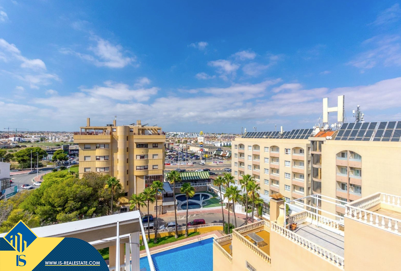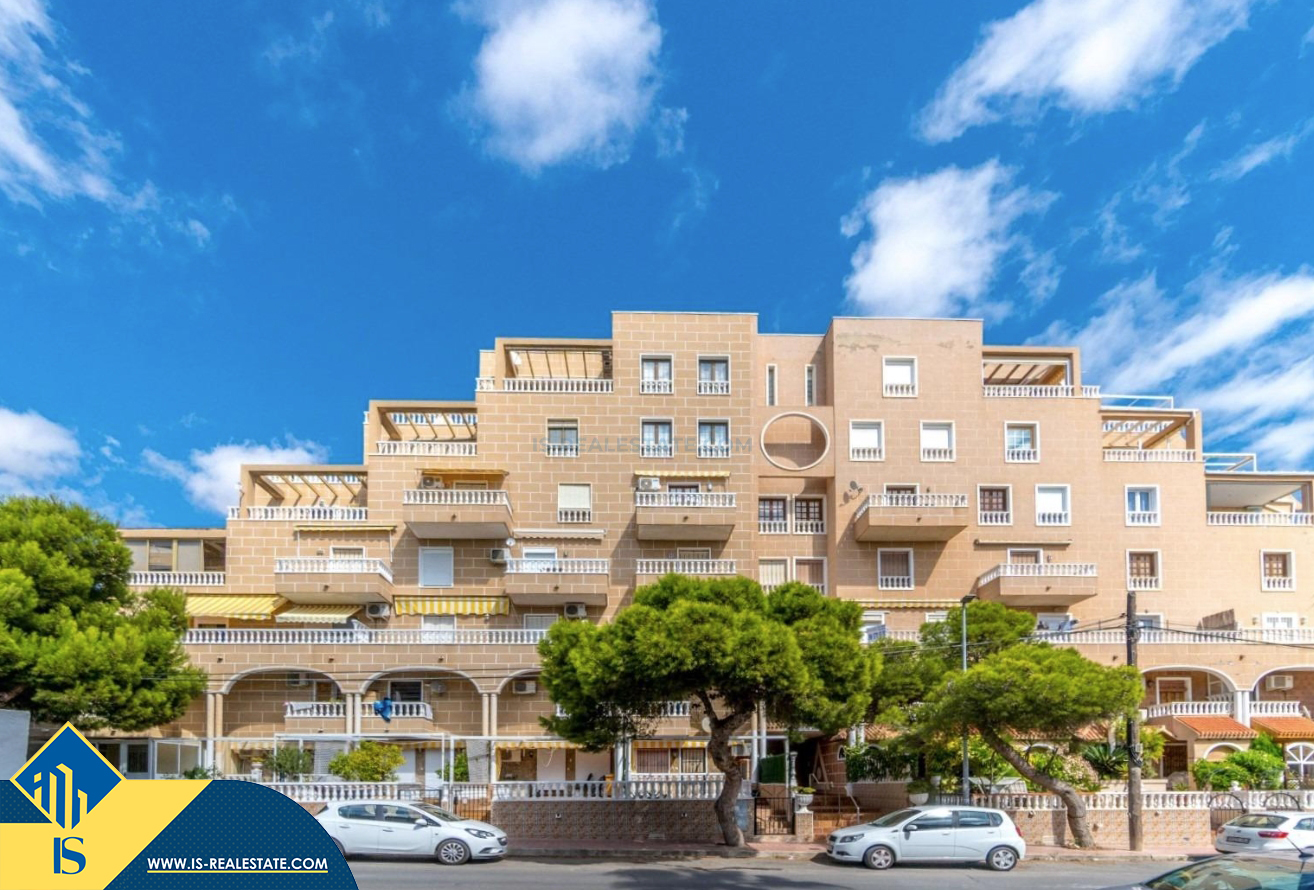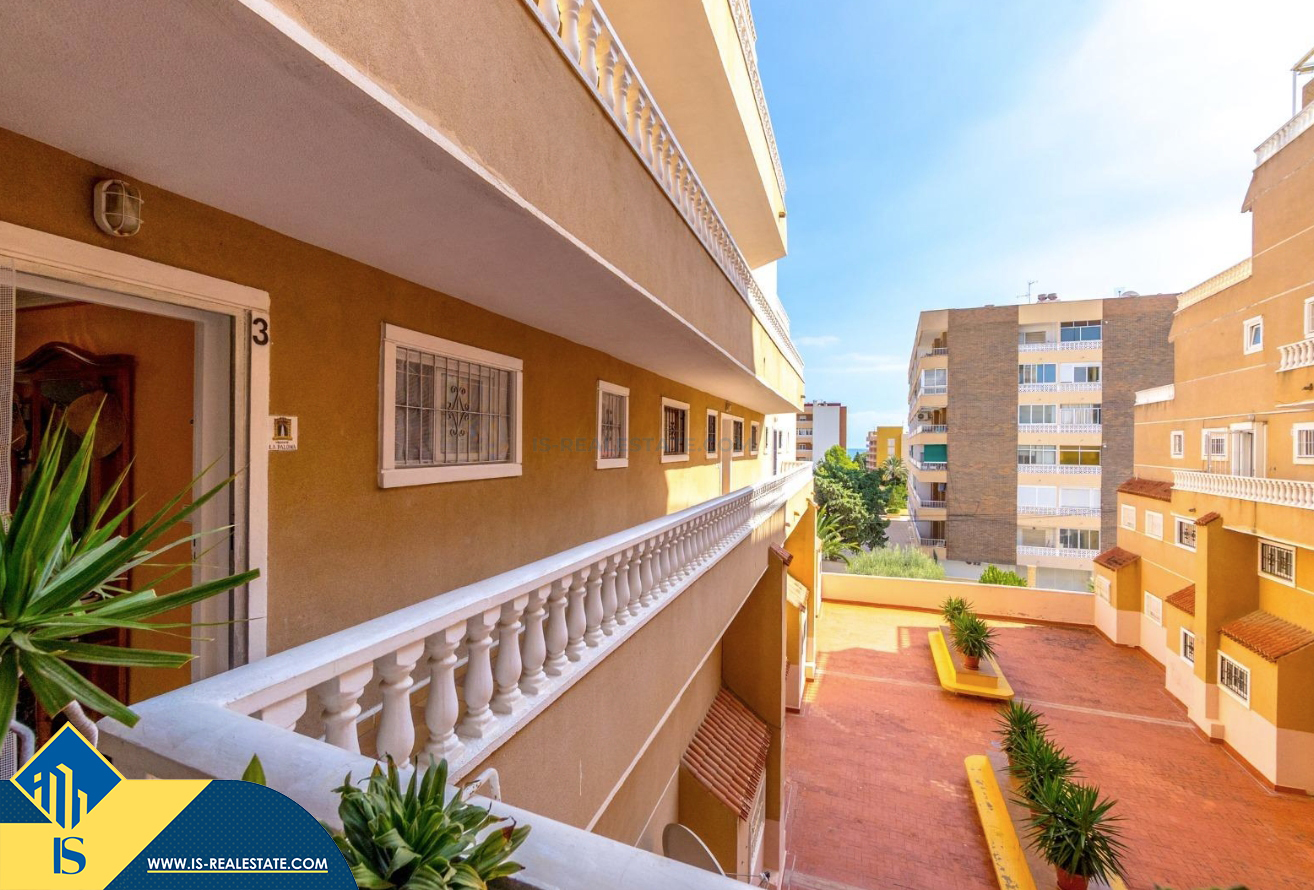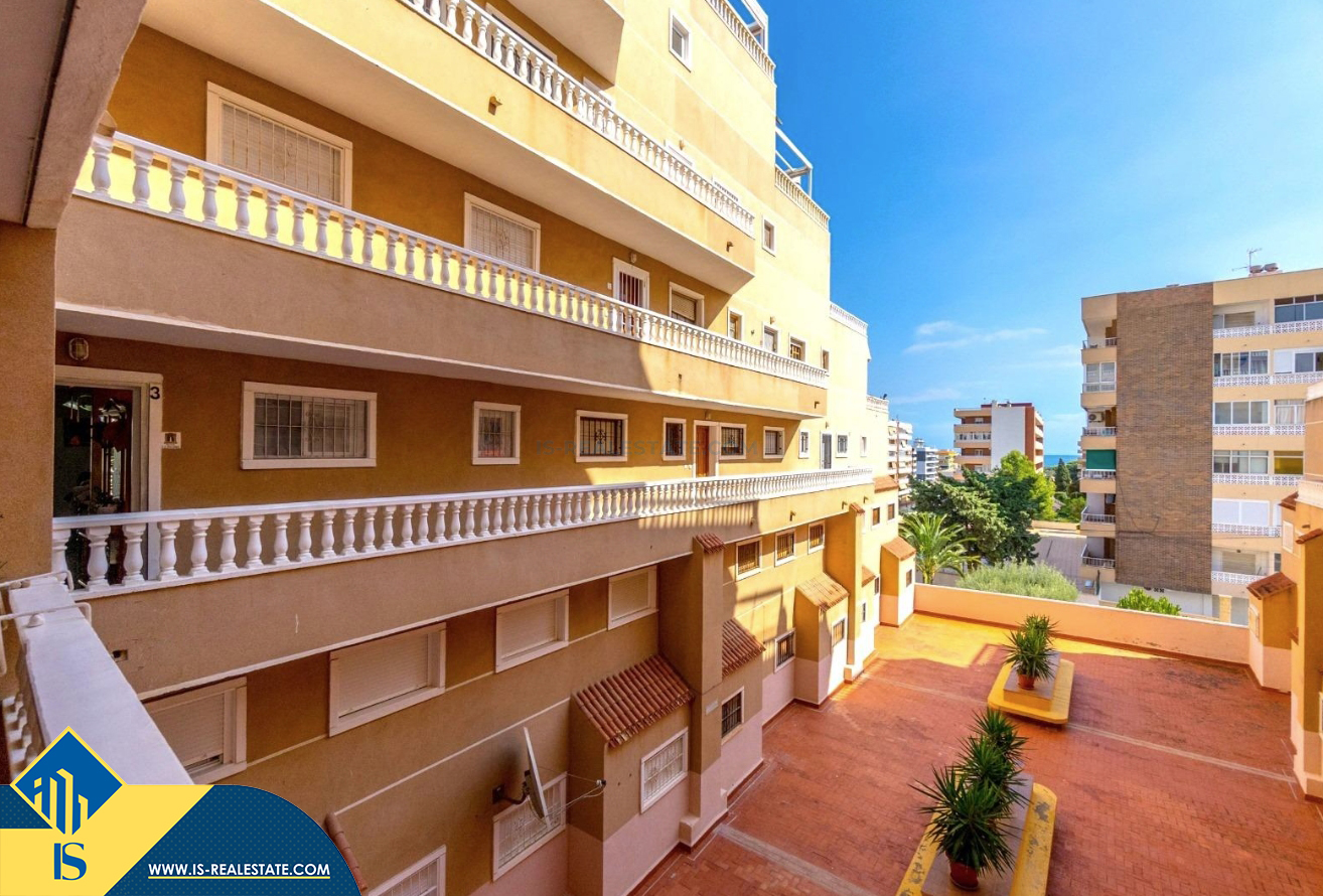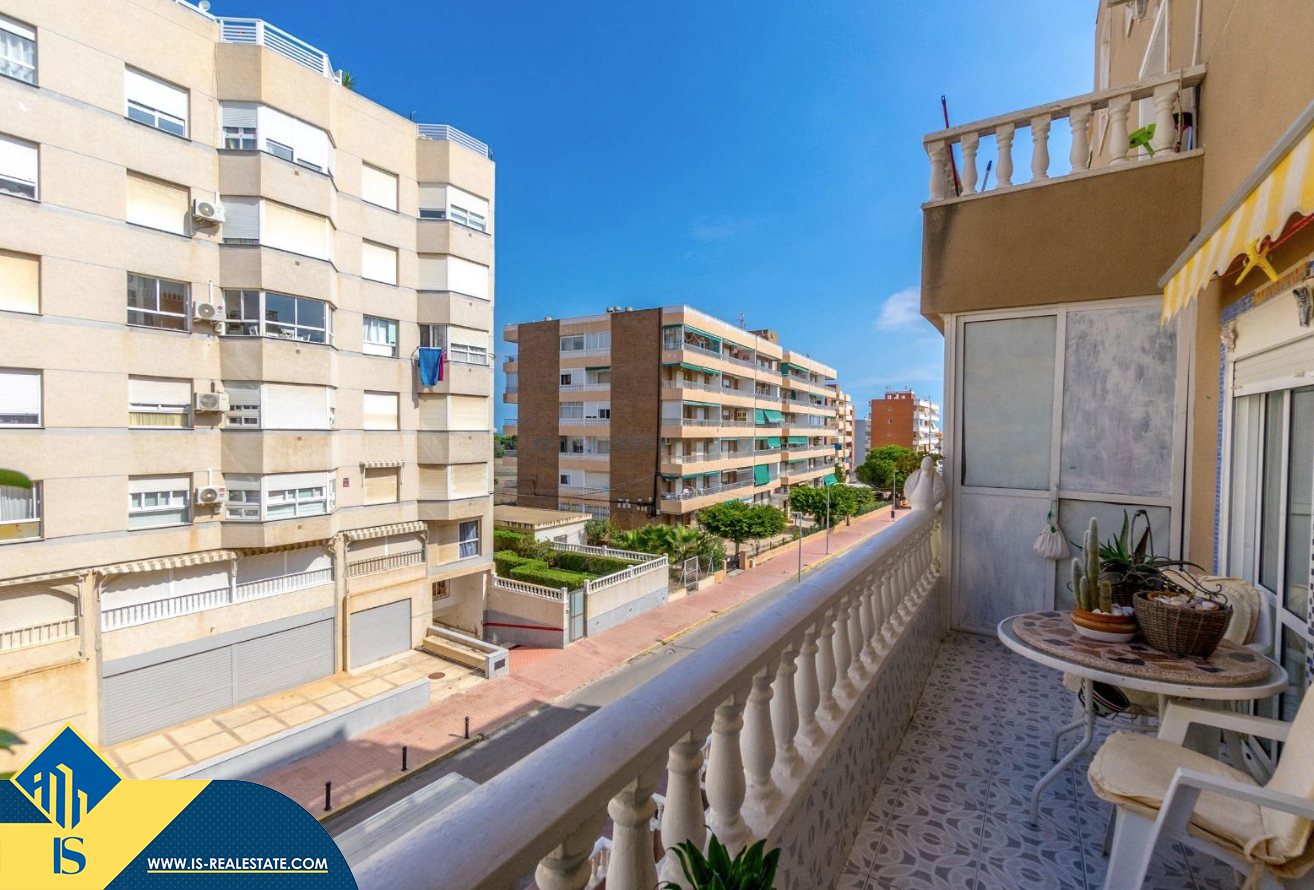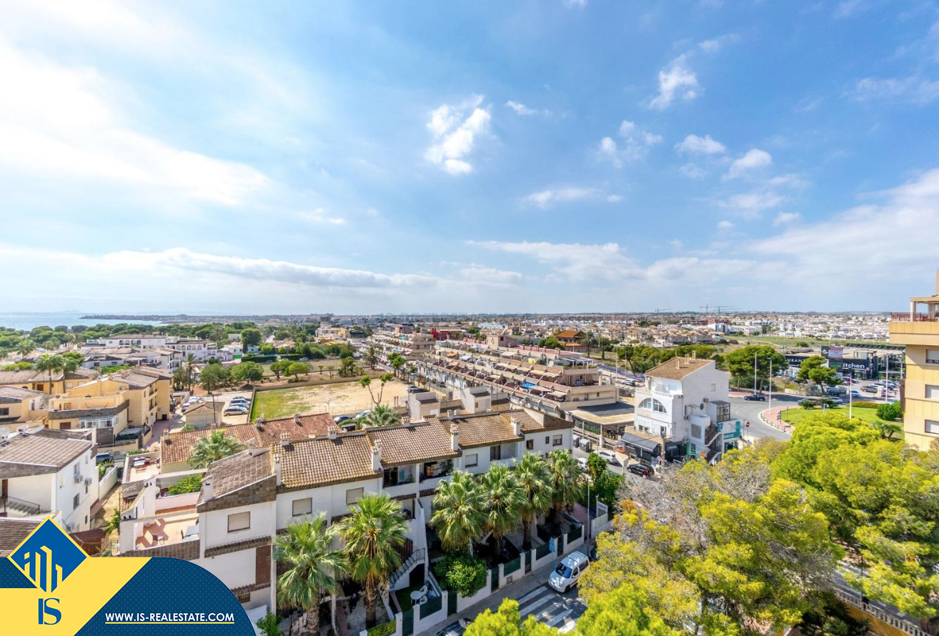 3-jų kambarių apartamentas su bendru baseinu, Ispanijoje, Alicante provincijoje, Torrevieja mieste, bendras plotas 64 m², 300 metrų iki jūros, 45 kilometrai iki Alicante oro uosto. Turtui priklauso bendras baseinas, terasa, liftas. Netoli turto yra parduotuvės, restoranai, vaistinės, autobusų stotelės, degalinės, žalios zonos, kavinės