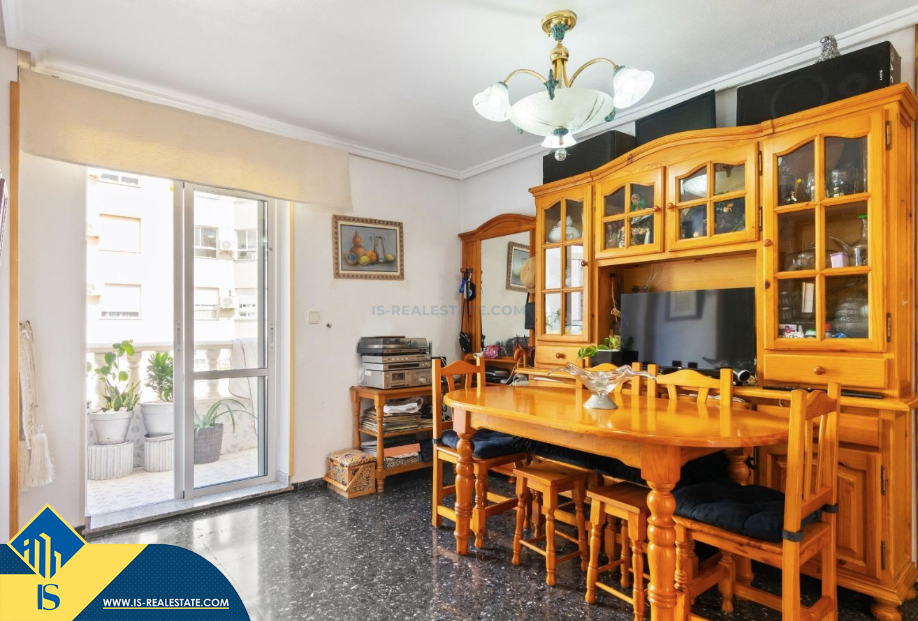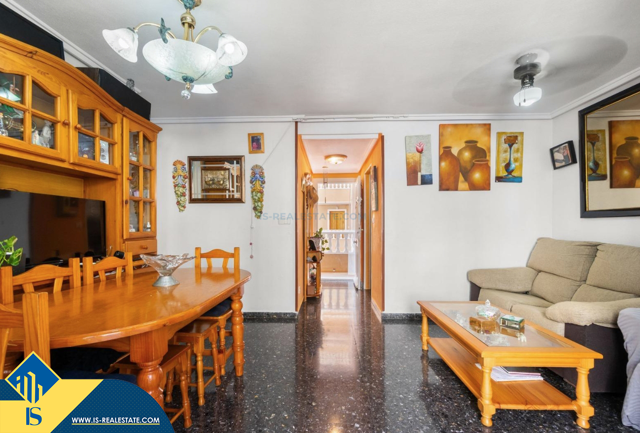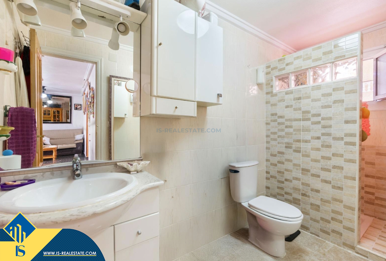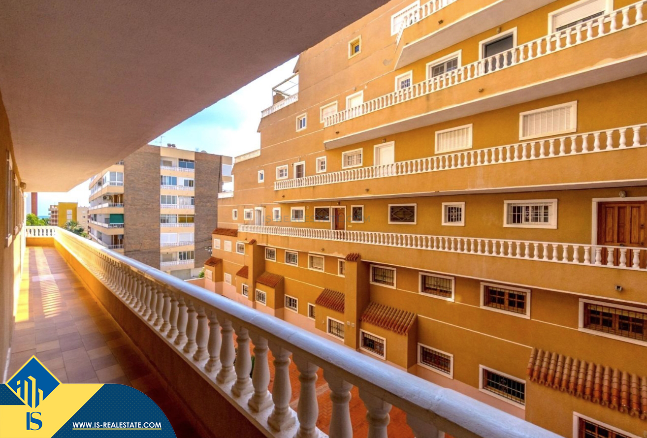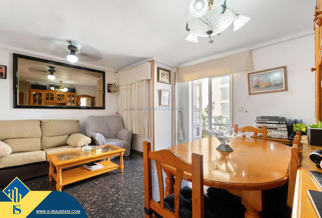 3-jų kambarių apartamentas su bendru baseinu, Ispanijoje, Alicante provincijoje, Torrevieja mieste, bendras plotas 64 m², 300 metrų iki jūros, 45 kilometrai iki Alicante oro uosto. Turtui priklauso bendras baseinas, terasa, liftas. Netoli turto yra parduotuvės, restoranai, vaistinės, autobusų stotelės, degalinės, žalios zonos, kavinės
