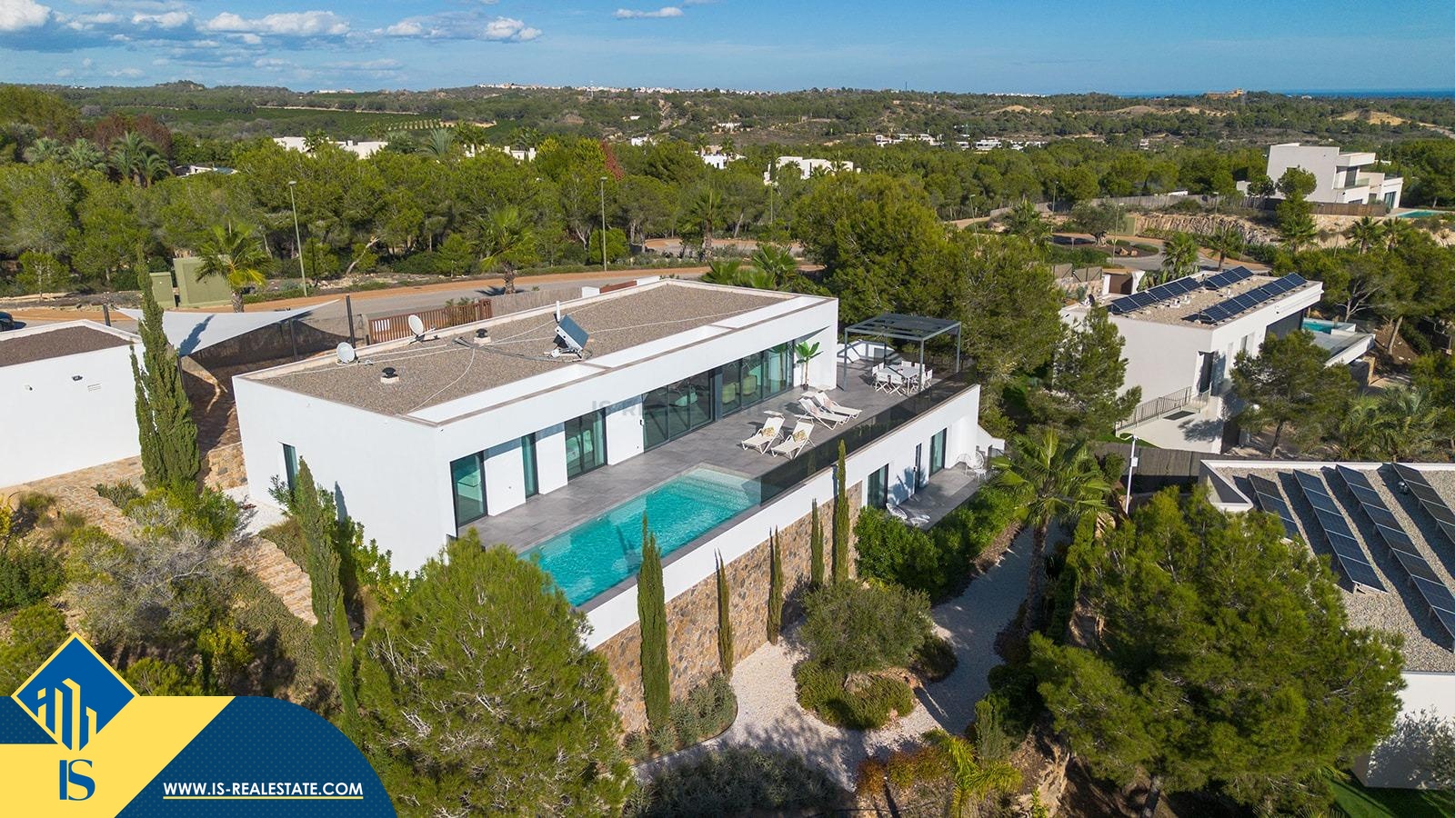 5-ių kambarių vila su privačiu baseinu, Ispanijoje, Alicante provincijoje, Orihuela Costa mieste, bendras plotas 278 m², 6.5 kilometrai iki jūros, 57 kilometrai iki Alicante oro uosto. Turtui priklauso privatus baseinas, terasa, vieta automobiliui, privatus kiemas. Netoli turto yra parduotuvės, restoranai, autobusų stotelės, vaikų zonos, degalinės, žalios zonos, kavinės, ligoninė