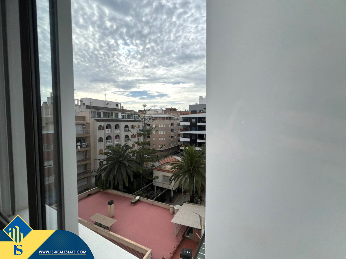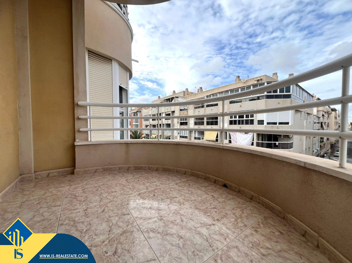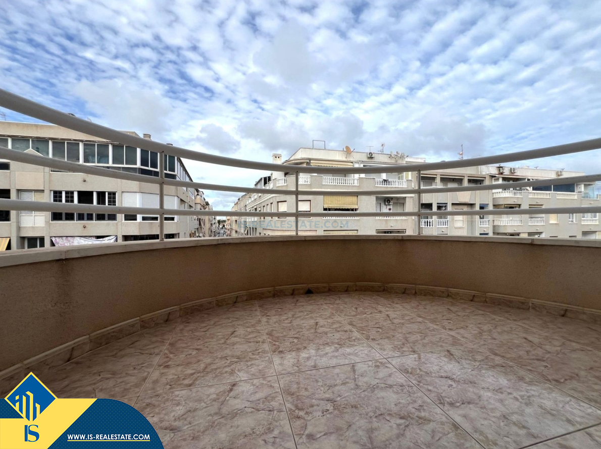 3-jų kambarių apartamentas su terasa, Ispanijoje, Alicante provincijoje, Torrevieja mieste, bendras plotas 79 m², 400 metrų iki jūros, 45 kilometrai iki Alicante oro uosto. Turtui priklauso terasa, liftas. Netoli turto yra parduotuvės, restoranai, vaistinės, autobusų stotelės, degalinės, žalios zonos, kavinės