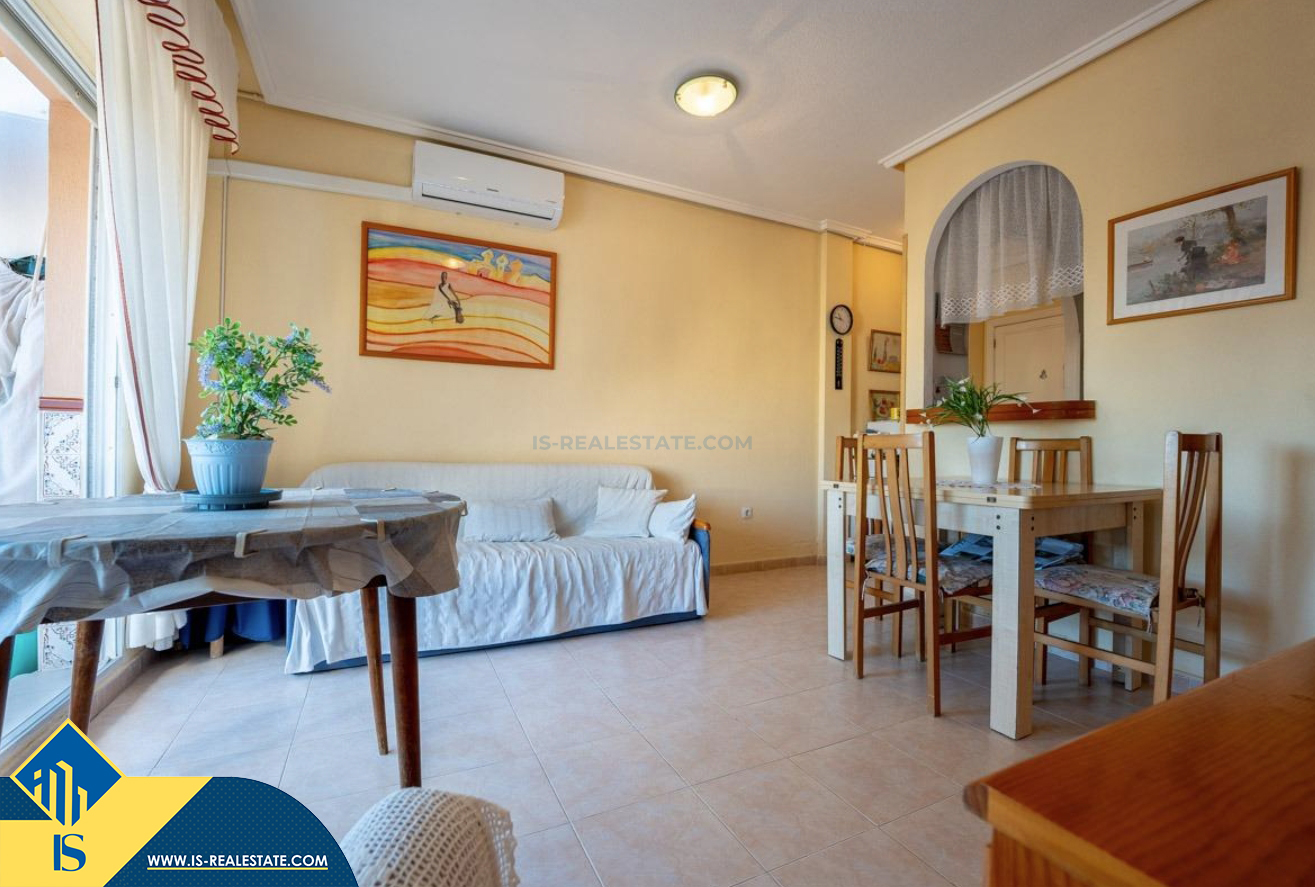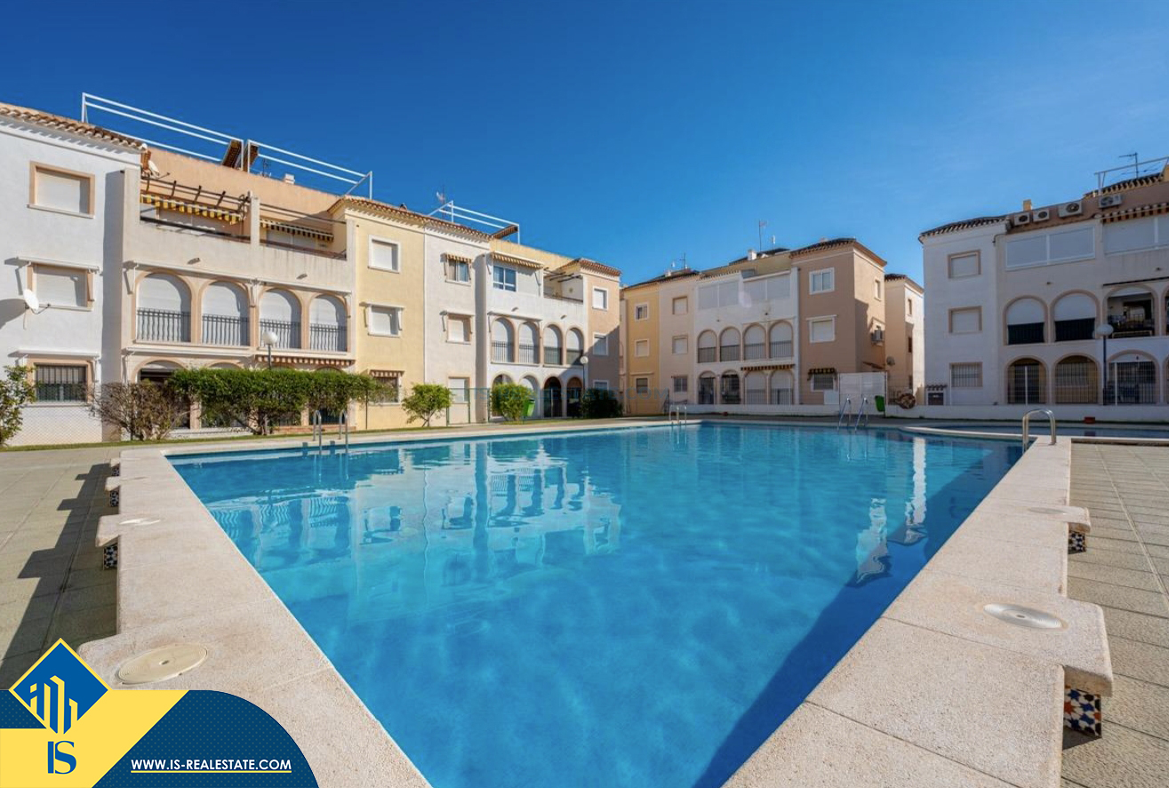 3-jų kambarių apartamentas su bendru baseinu, Ispanijoje, Alicante provincijoje, Torrevieja mieste, Playa de los Náufragos rajone, bendras plotas 59 m², 270 metrų iki jūros, 45 kilometrai iki Alicante oro uosto. Turtui priklauso bendras baseinas, terasa, soliariumas. Netoli turto yra parduotuvės, restoranai, vaistinės, autobusų stotelės, degalinės, žalios zonos, kavinės