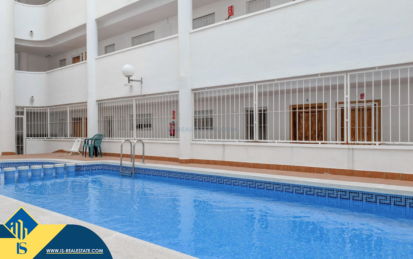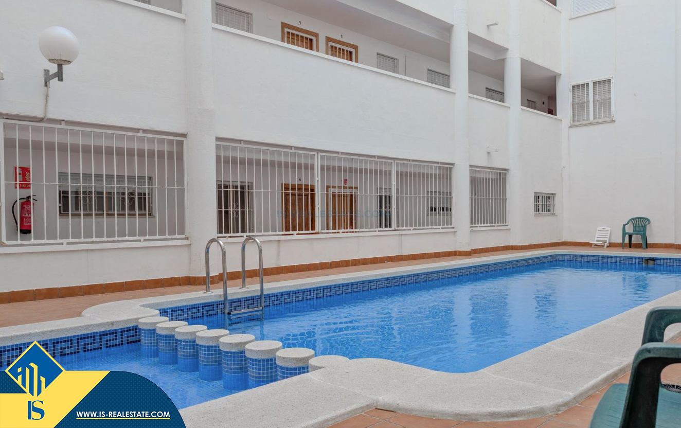 3-jų kambarių renovuotas apartamentas su bendru baseinu, Ispanijoje, Alicante provincijoje, Torrevieja mieste, bendras plotas 64 m², 500 metrų iki jūros, 45 kilometrai iki Alicante oro uosto. Turtui priklauso bendras baseinas, terasa, liftas. Netoli turto yra parduotuvės, restoranai, vaistinės, autobusų stotelės, degalinės, žalios zonos, kavinės