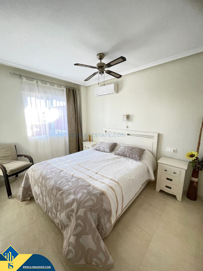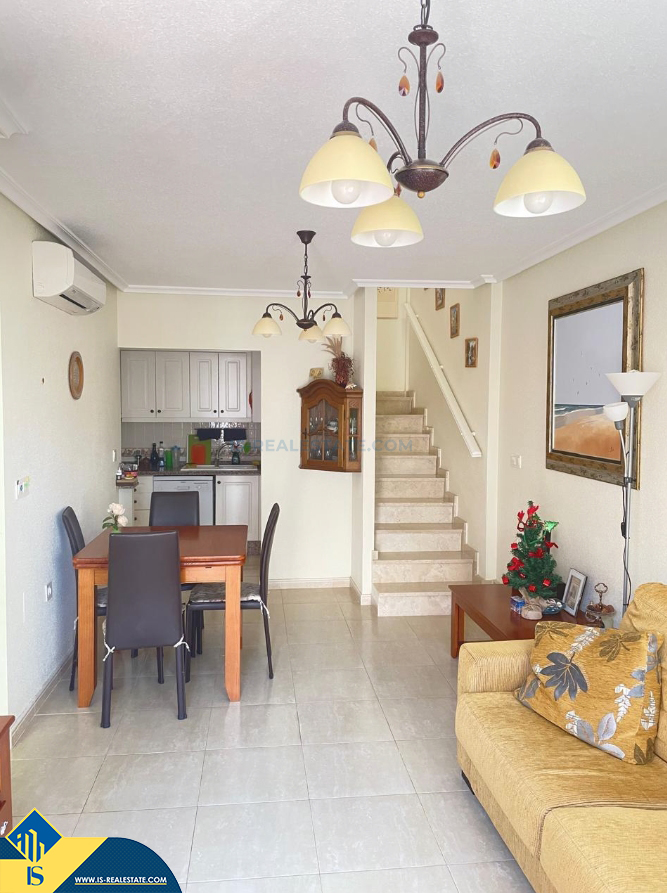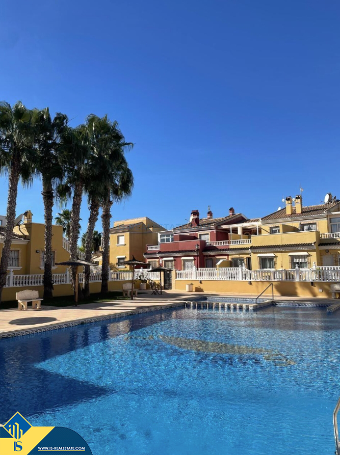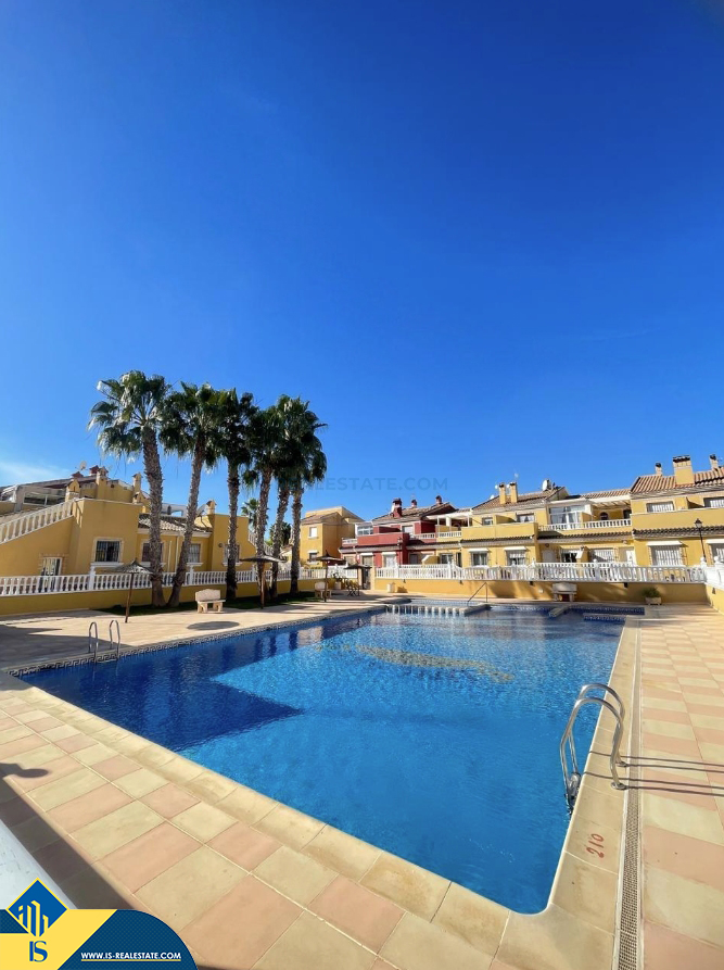 4-ių kambarių namas su bendru baseinu, Ispanijoje, Alicante provincijoje, Torrevieja mieste, Torreta rajone, bendras plotas 80 m², 3 kilometrai iki jūros, 45 kilometrai iki Alicante oro uosto. Turtui priklauso bendras baseinas, terasa, sandėliukas. Netoli turto yra parduotuvės, restoranai, autobusų stotelės, vaikų zonos, degalinės, žalios zonos, kavinės, vaistinės
