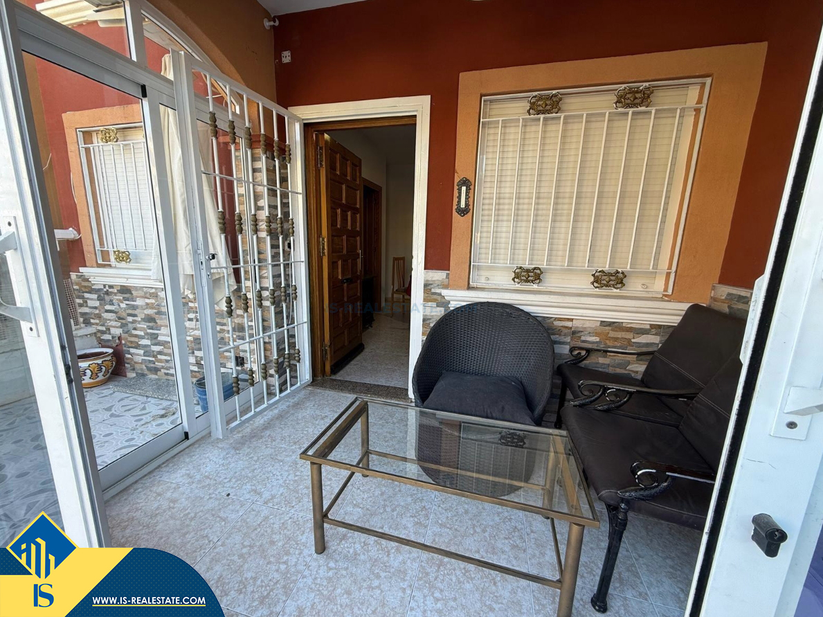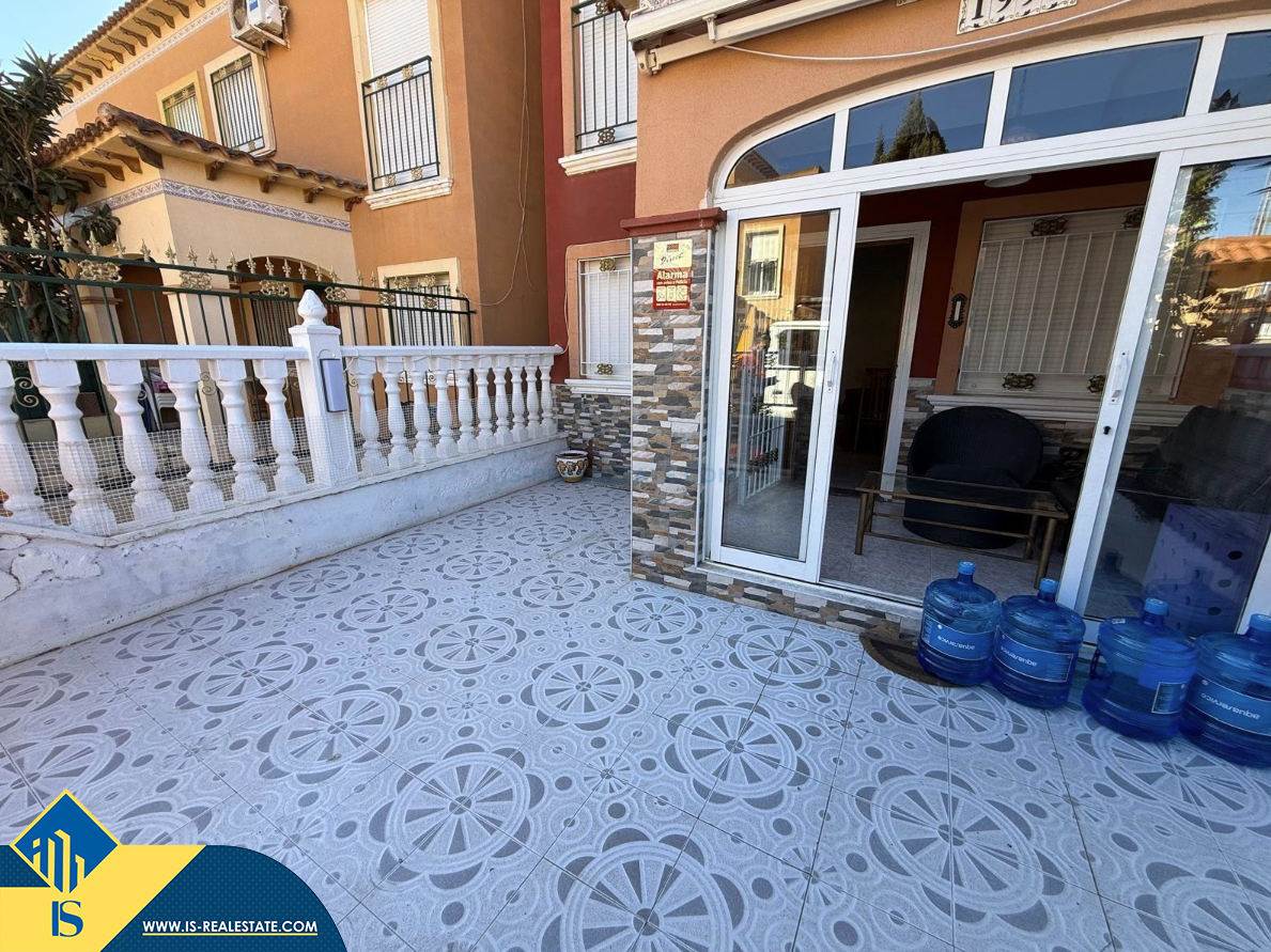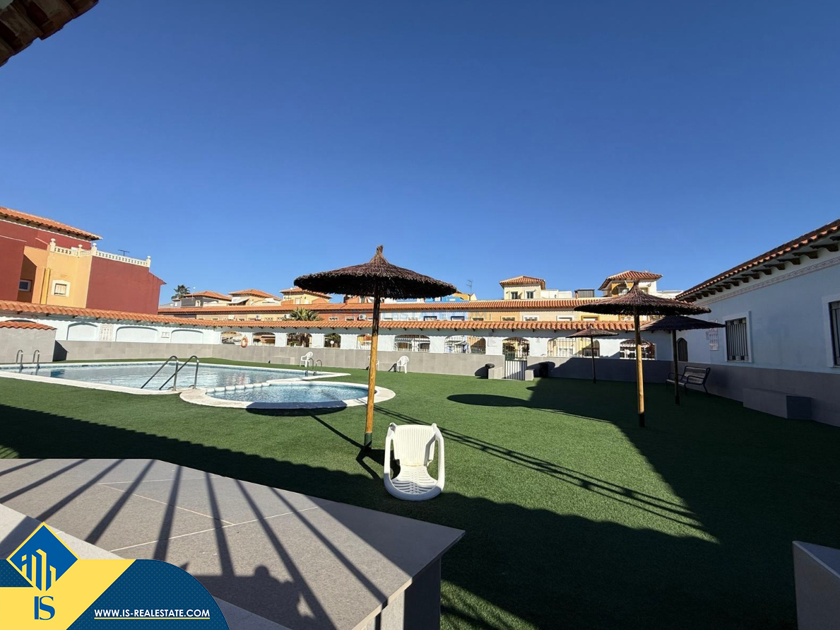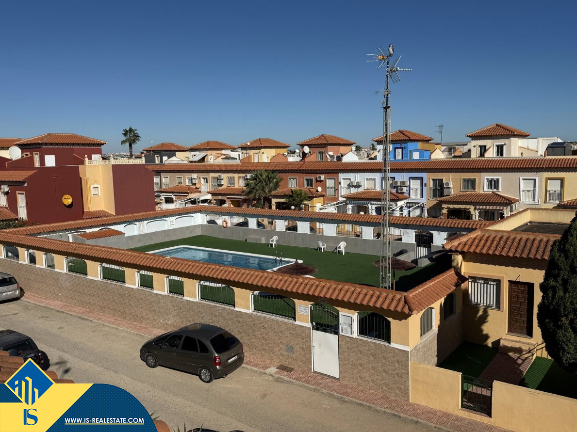4-ių kambarių namas su bendru baseinu, Ispanijoje, Alicante provincijoje, Torrevieja mieste, Torreta rajone, bendras plotas 72 m², 6 kilometrai iki jūros, 45 kilometrai iki Alicante oro uosto. Turtui priklauso bendras baseinas, terasa, privatus kiemas. Netoli turto yra parduotuvės, restoranai, autobusų stotelės, vaikų zonos, degalinės, žalios zonos, kavinės, vaistinės