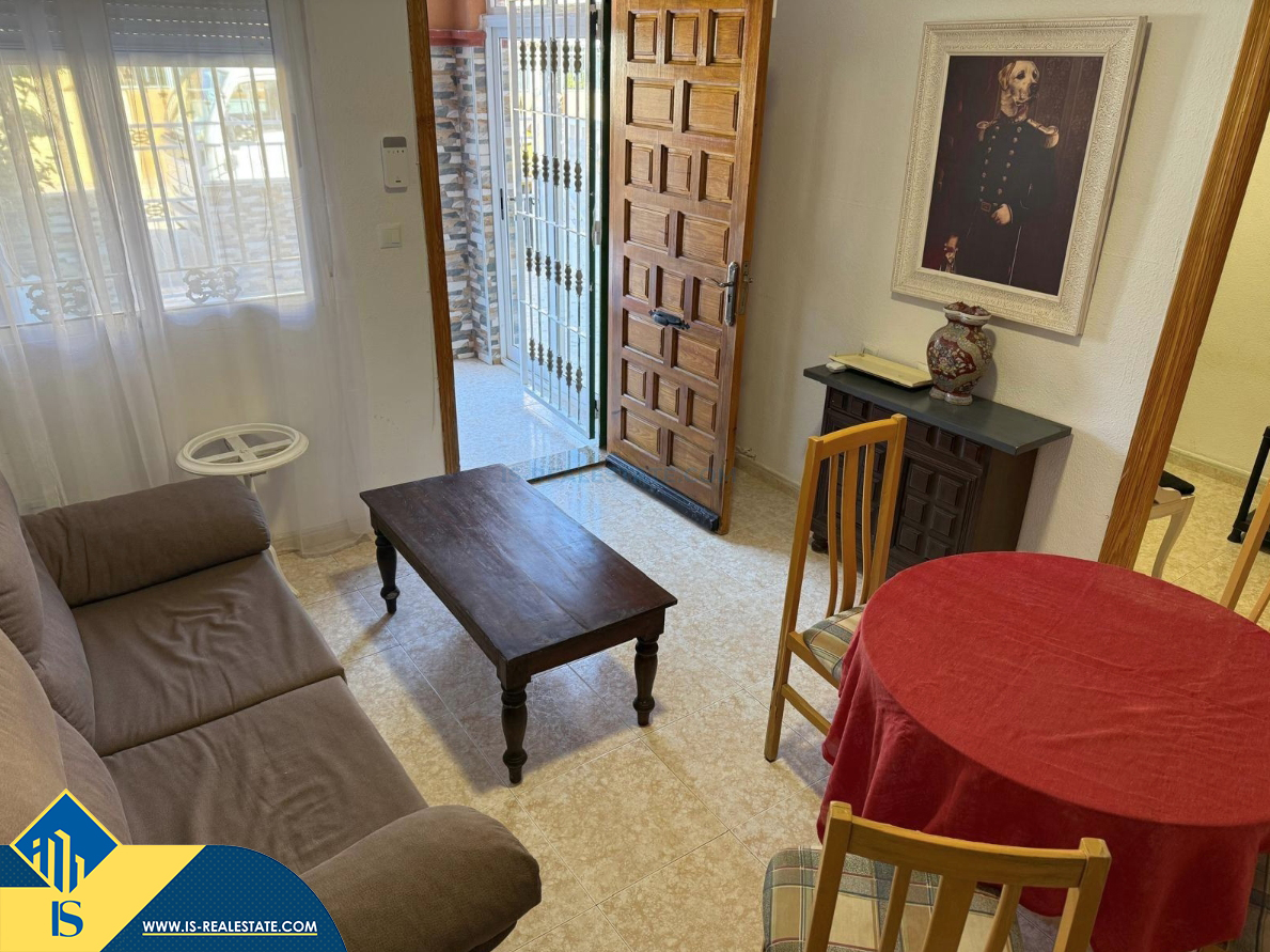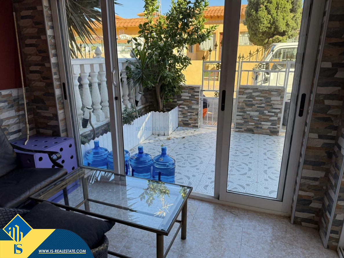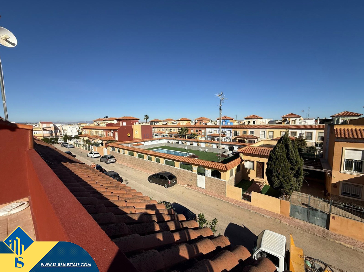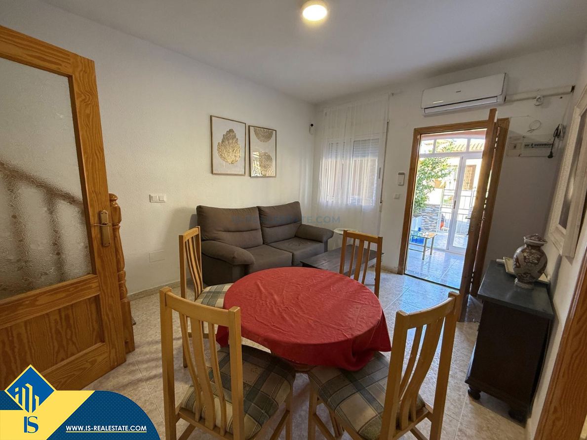 4-ių kambarių namas su bendru baseinu, Ispanijoje, Alicante provincijoje, Torrevieja mieste, Torreta rajone, bendras plotas 72 m², 6 kilometrai iki jūros, 45 kilometrai iki Alicante oro uosto. Turtui priklauso bendras baseinas, terasa, privatus kiemas. Netoli turto yra parduotuvės, restoranai, autobusų stotelės, vaikų zonos, degalinės, žalios zonos, kavinės, vaistinės