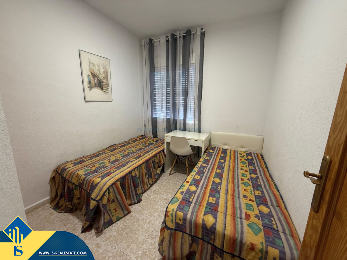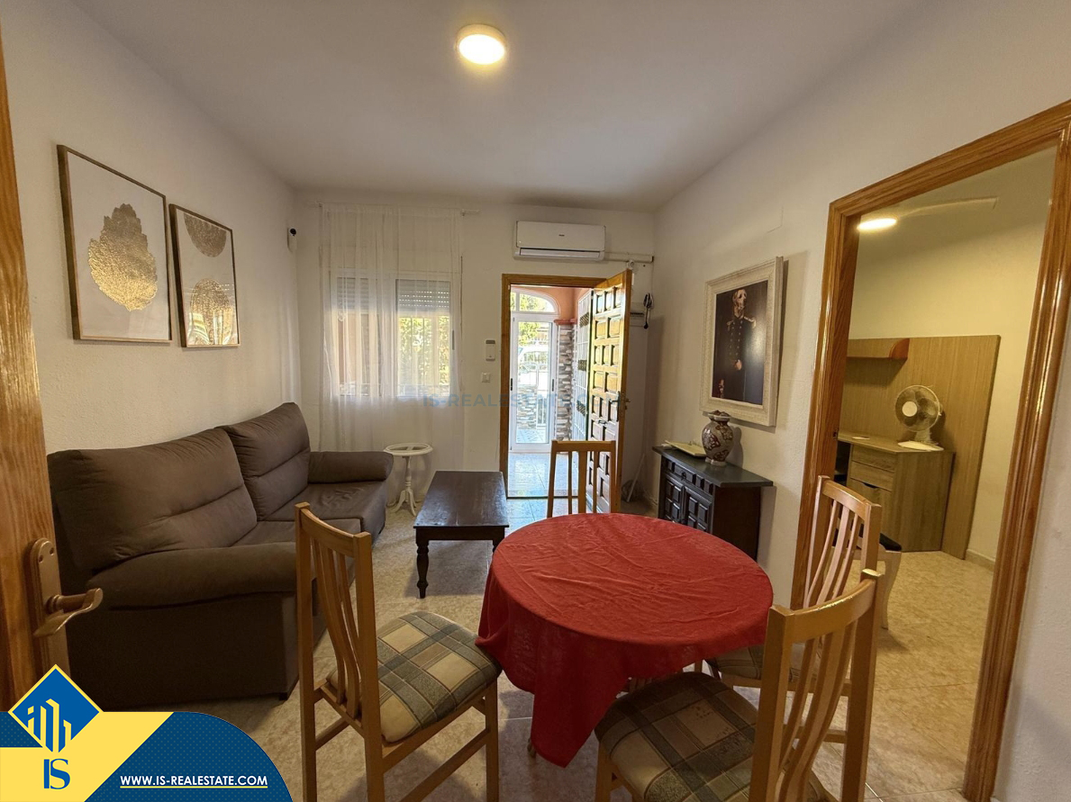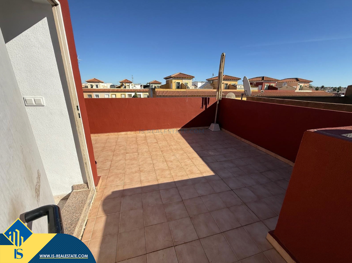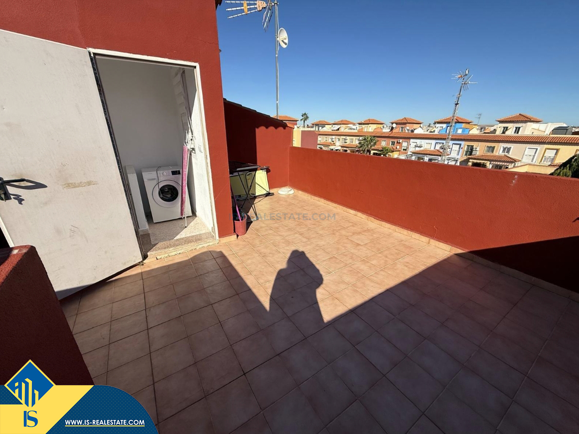 4-ių kambarių namas su bendru baseinu, Ispanijoje, Alicante provincijoje, Torrevieja mieste, Torreta rajone, bendras plotas 72 m², 6 kilometrai iki jūros, 45 kilometrai iki Alicante oro uosto. Turtui priklauso bendras baseinas, terasa, privatus kiemas. Netoli turto yra parduotuvės, restoranai, autobusų stotelės, vaikų zonos, degalinės, žalios zonos, kavinės, vaistinės